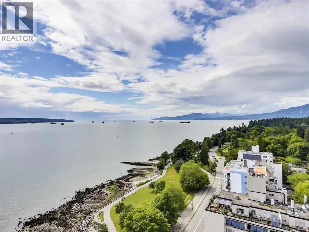 VIEW! VIEW! VIEW! Beach Ave. All views of ocean & two view balconies at prestigious Huntington West. Highest quality refinishing, 2 parking, urban sophistication at its best. West of Denman, ideal location steps to Stanley Park & Seawall. Amazing sunsets. Rock solid construction. In suite laundry & open kitchen. This concrete complex has a solid reputation for quality in the West End. The building has good management and has always taken care of all major issues. Features include: a stunning 360 degree oceanfront rooftop deck & supersized whirlpool & exercise area. Live the good life of English Bay & the coffee shops of Denman Street. Hurry! This one won't last. (id:27476)