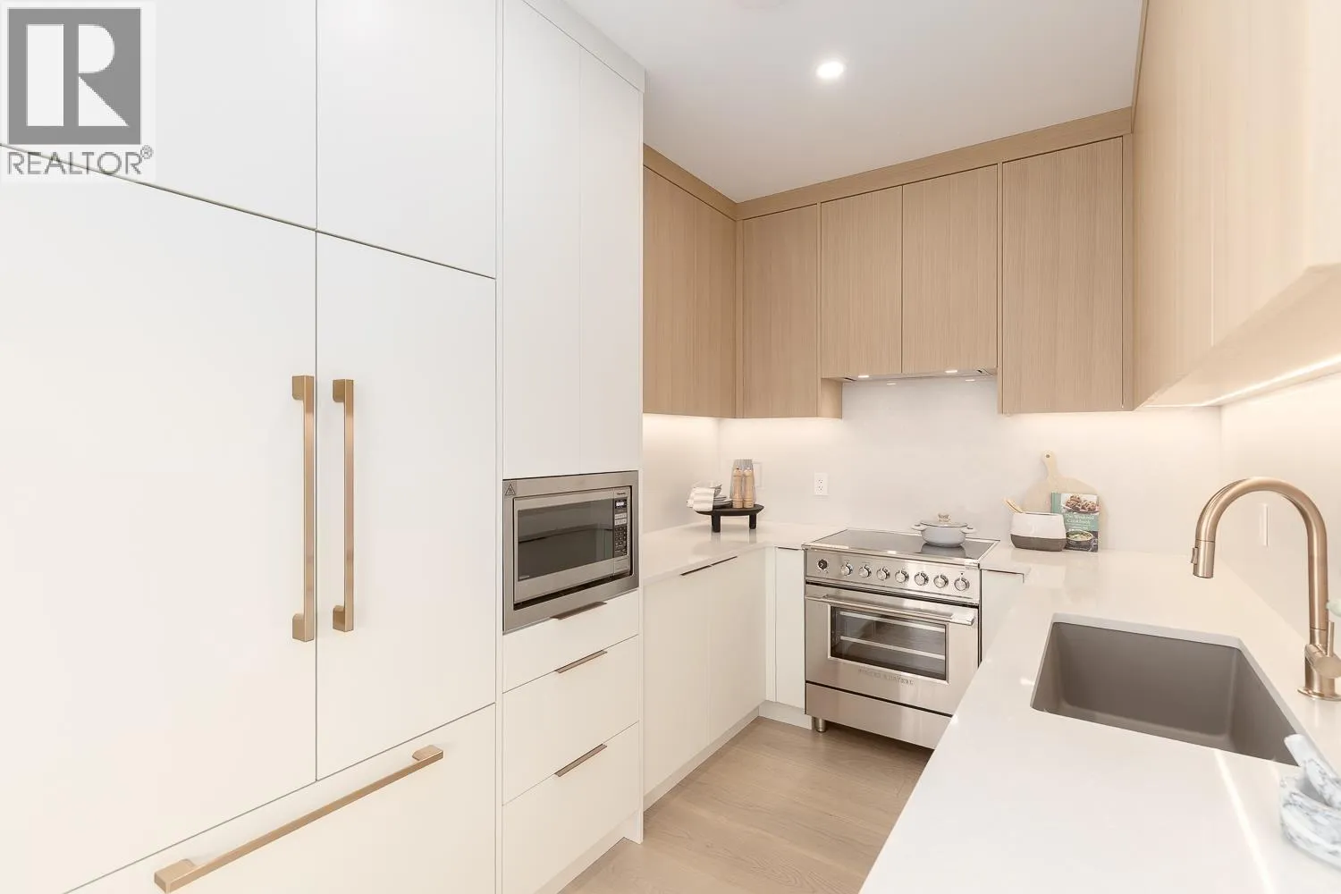 Welcome to Wales Park by VanMosa Properties-an exclusive collection of boutique park side homes offering exceptional quality and craftsmanship, designed by Architrix Studio & built by Glenmark Homes. This 2-bedroom home is thoughtfully designed with Caesarstone countertops, white oak cabinetry, Fisher & Paykel appliances, Brizo luxe gold fixtures, and Italian Falmec ventilation. Enjoy air conditioning, automated lighting, in-ceiling speakers, sensor-activated cabinet lighting, soundproofing, custom built-in closets, crawlspace storage, and dedicated parking. A stunning 157 square ft balcony invites indoor-outdoor living, with sweeping parkside and mountain views in one of East Vancouver´s most connected and vibrant communities. (id:27476)