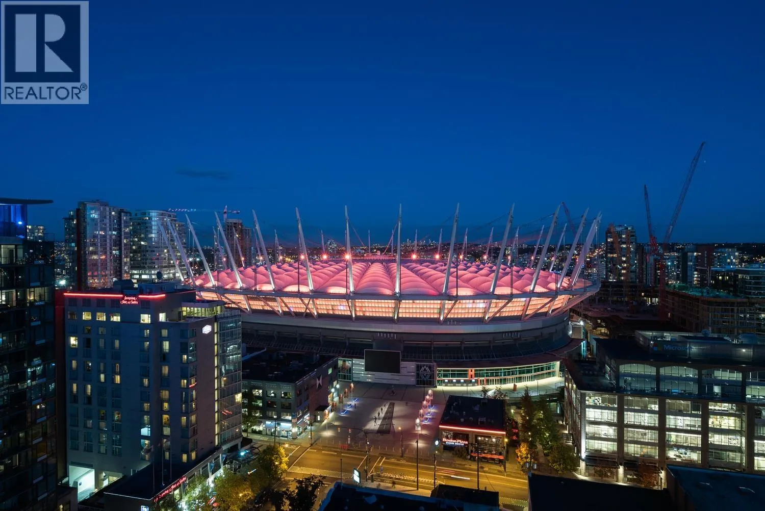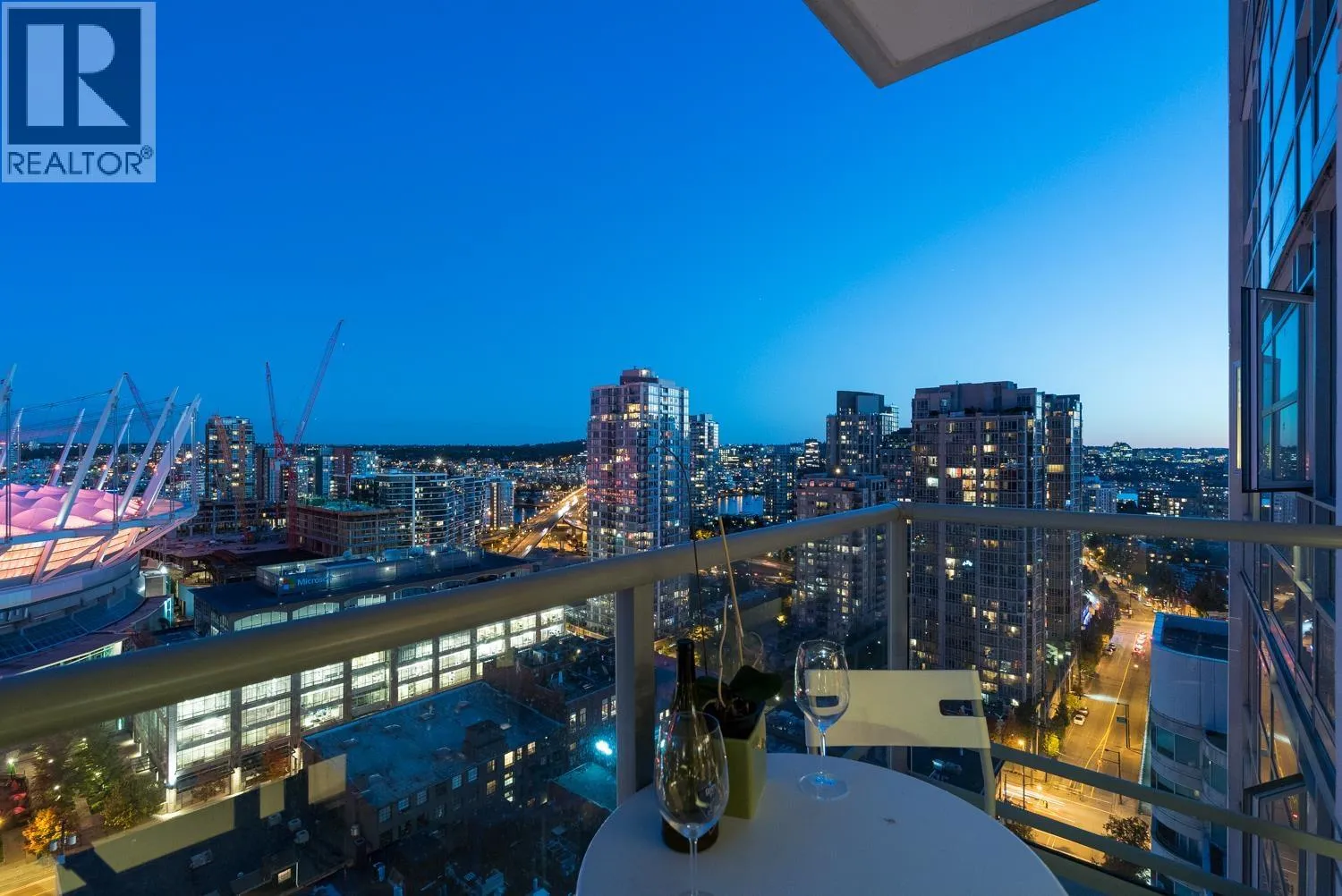 Experience beautiful False Creek & City views from this bright 1 bedroom & Den suite at Raffles on Robson. Enjoy expansive outlooks toward Mount Baker, BC Place and more, offering a more open and elevated perspective. Features include Miele appliances, granite countertops, Huge marble Bathroom boasting a separate soaker tub & shower with plenty of space for 2! Additional highlights include roller blinds, a well maintained concrete building with day concierge, gym, hot tub, outdoor courtyard, and 15 visitor parking stalls. Prime Yaletown location steps to Robson, Yaletown, the Seawall, Rogers Arena, BC Place, transit, and everyday conveniences. (id:27476)
