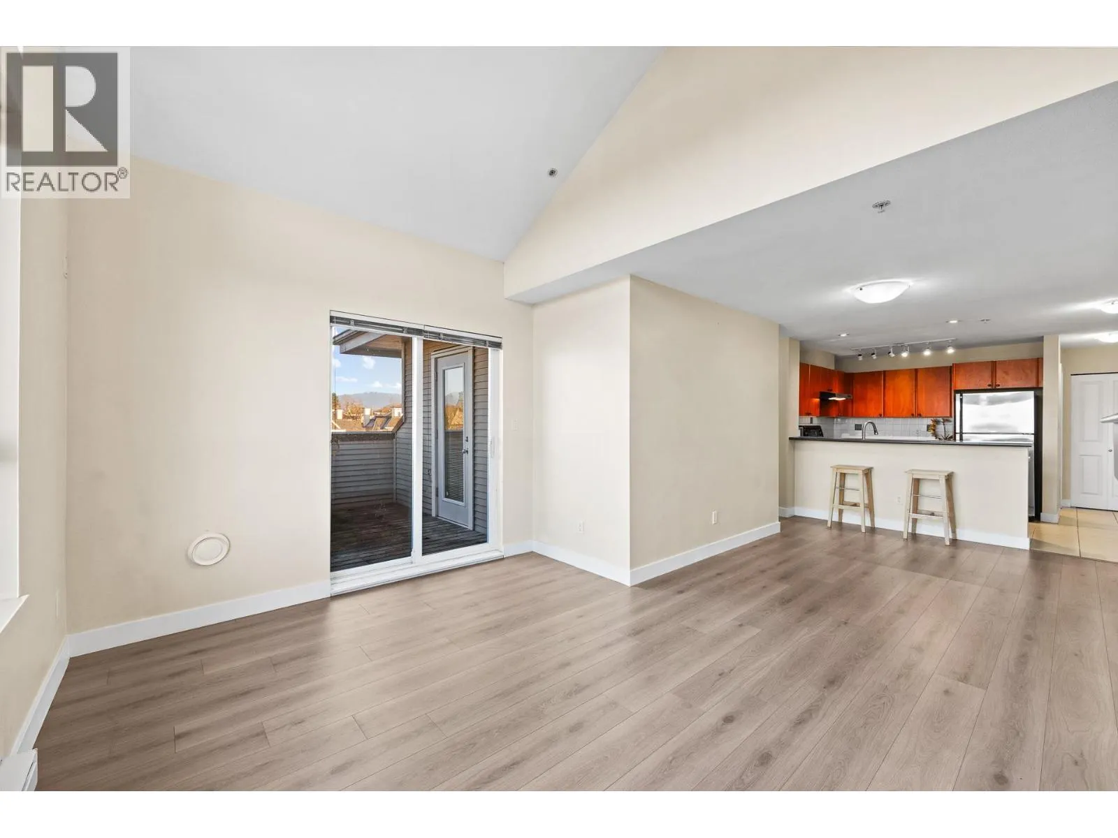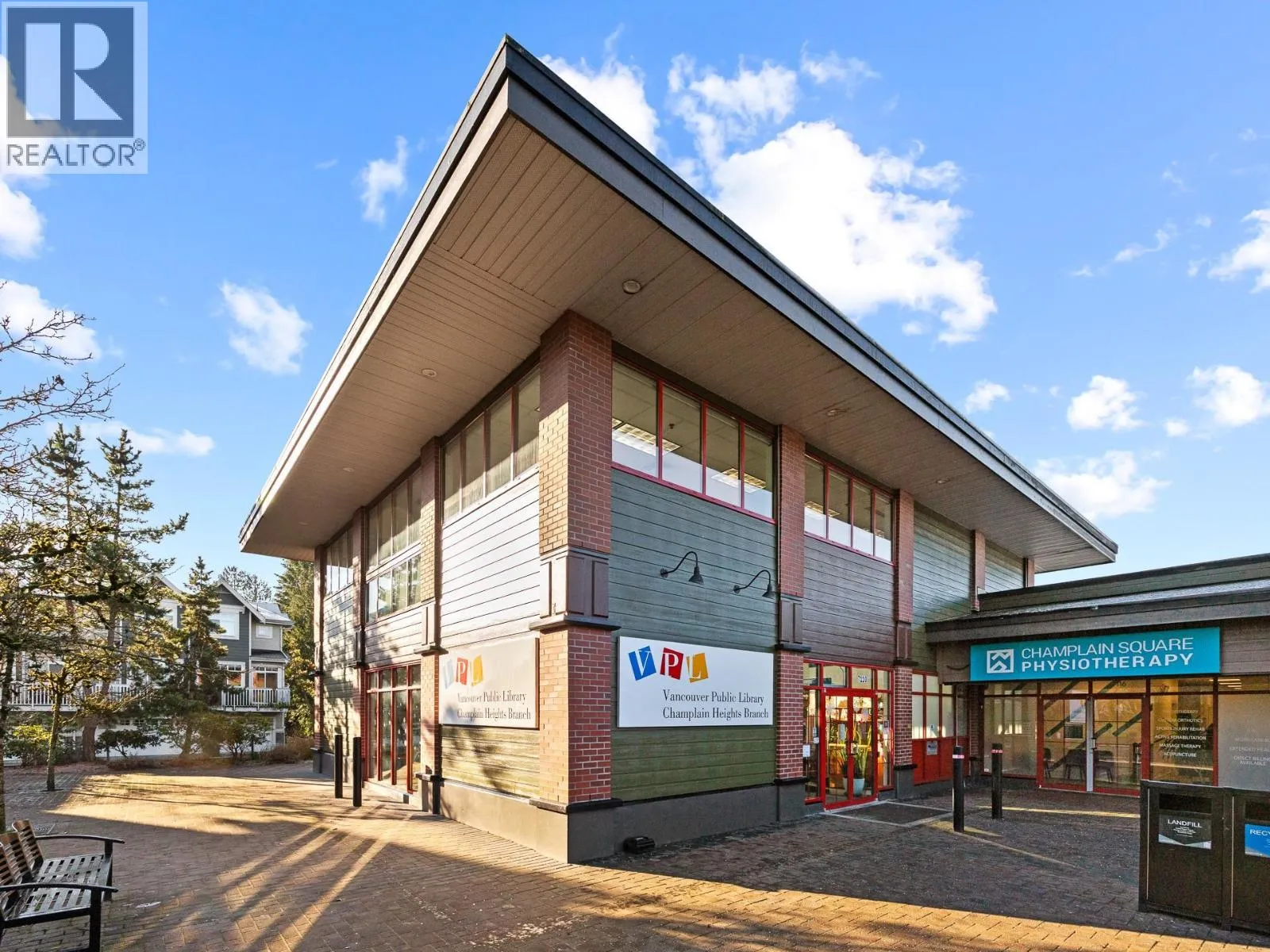 Rare opportunity to own a top-floor 2-bedroom + den, 2-bathroom corner home offering 928 square ft of beautifully designed living space in the heart of Champlain Heights. This northeast-facing residence features a bright open-concept layout, impressive 12´5" ceilings in the living room, a gas fireplace, and expansive living and dining areas that open to private balconies with stunning mountain views.The primary suite includes two closets and an ensuite complete with a soaker tub. Comes with 1 parking stall. Enjoy an unbeatable location just steps from Champlain Square Shopping Centre, Killarney Community Centre, parks, schools, library, and public transit. An ideal home for families, professionals, or downsizers seeking space, comfort, and convenience. (id:27476)