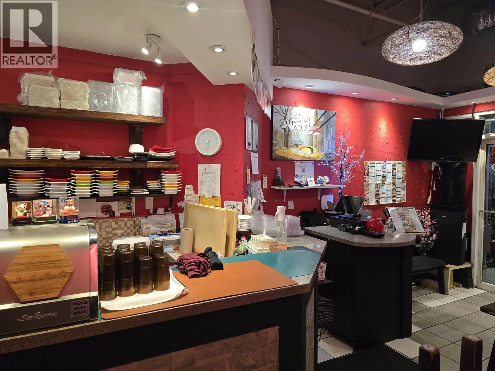 Well-established sushi restaurant Sushi Howe located in the heart of Vancouver's vibrant Davie Village, known for strong foot traffic and a diverse customer base. Prime West End location surrounded by many high-rise office buildings and residential, nightlife, and year-round tourism, supporting consistent dine-in, take-out, and delivery demand. Lots of "to go & eat-in customers", patio with very efficient kitchen structure, 1 free parking included. Clean and efficient kitchen equipped with Type 2 commercial exhaust hood, ideal for sushi and light food concepts. Attractive and affordable rent with a long secure lease term (4.5 + 5 years). No demolition clause, providing excellent long-term stability and peace of mind for owner-operators. Turnkey opportunity to step into a proven business with strong visibility and growth potential. (id:27476)
