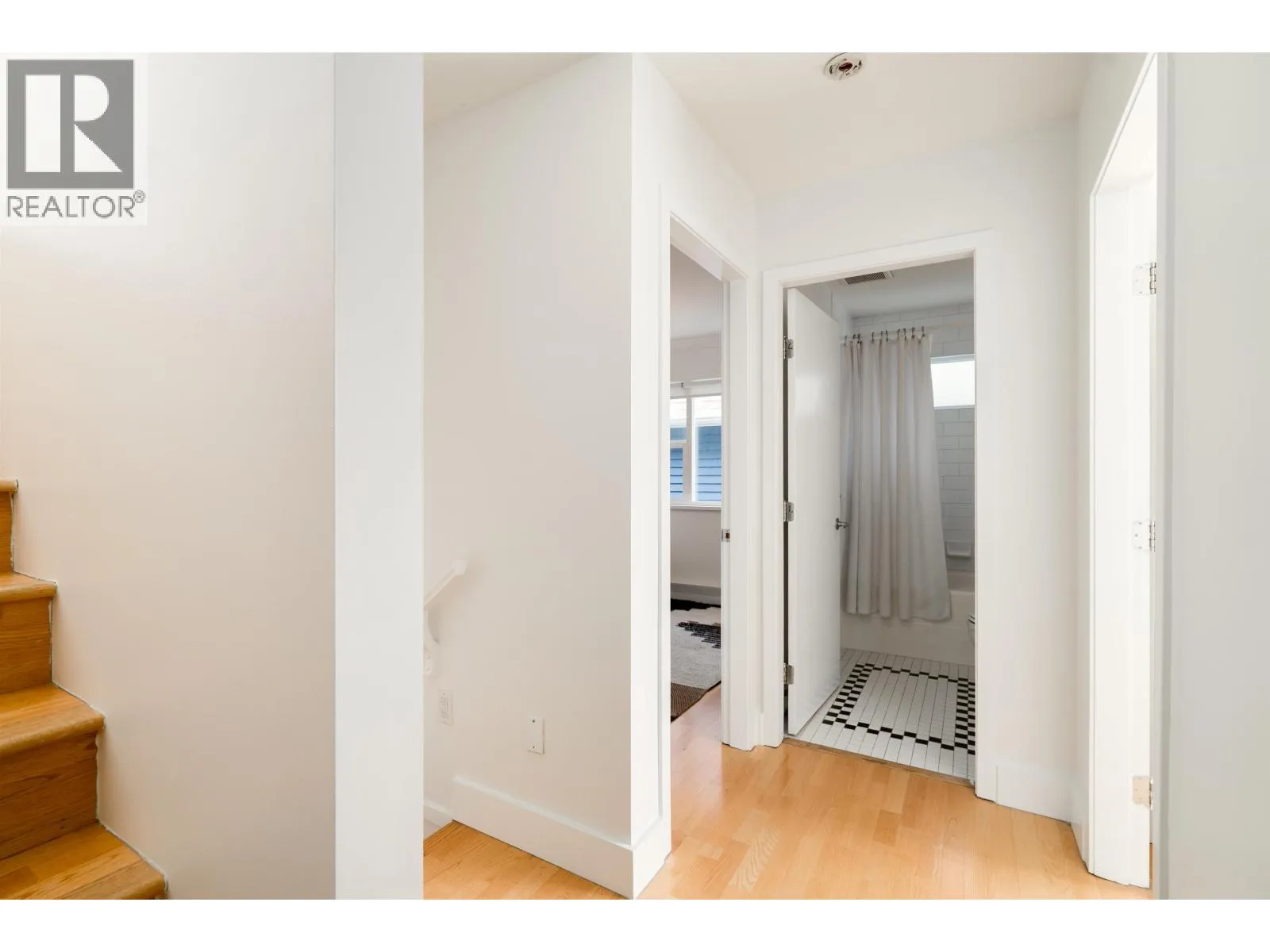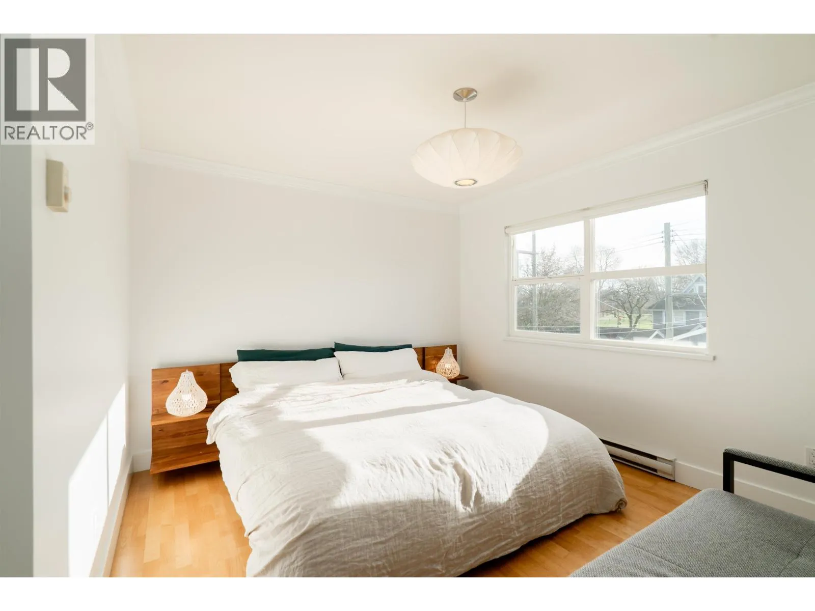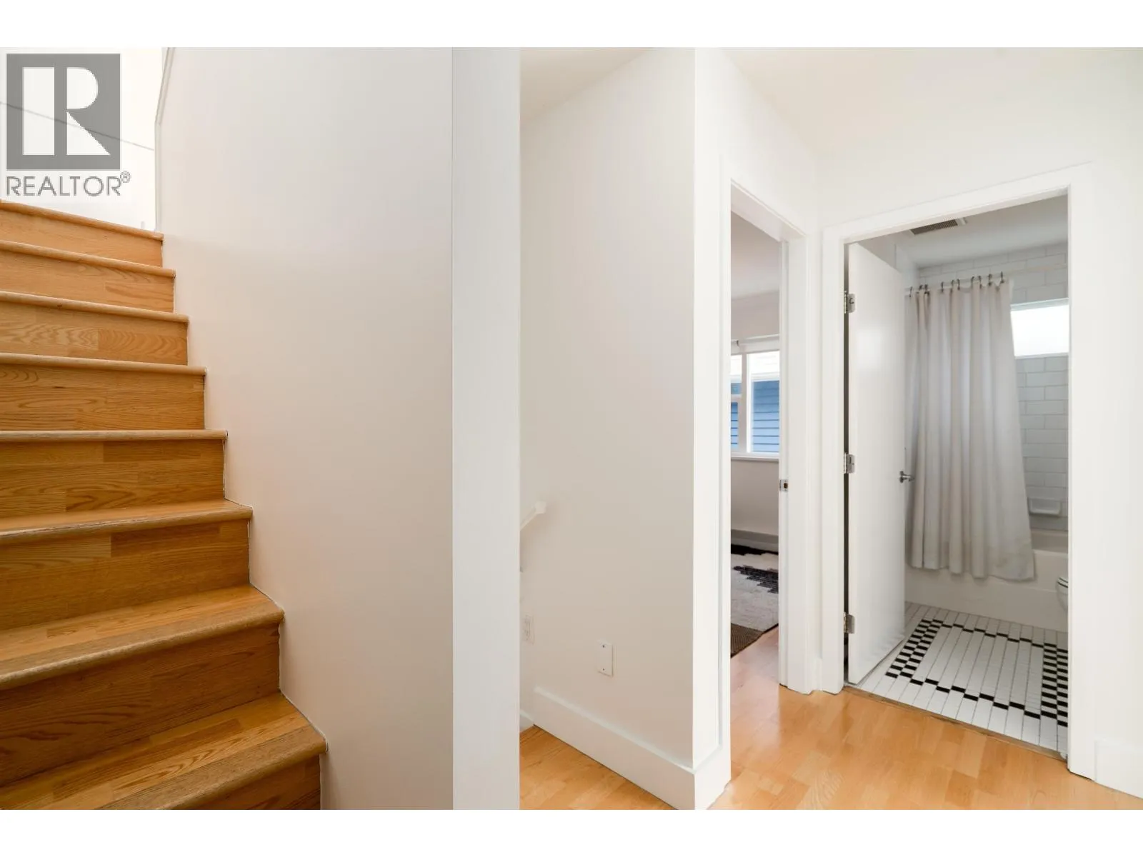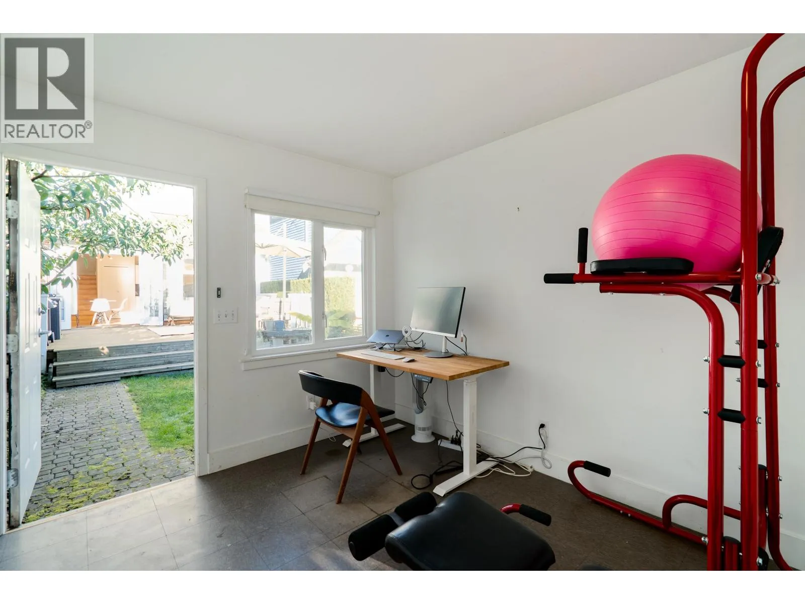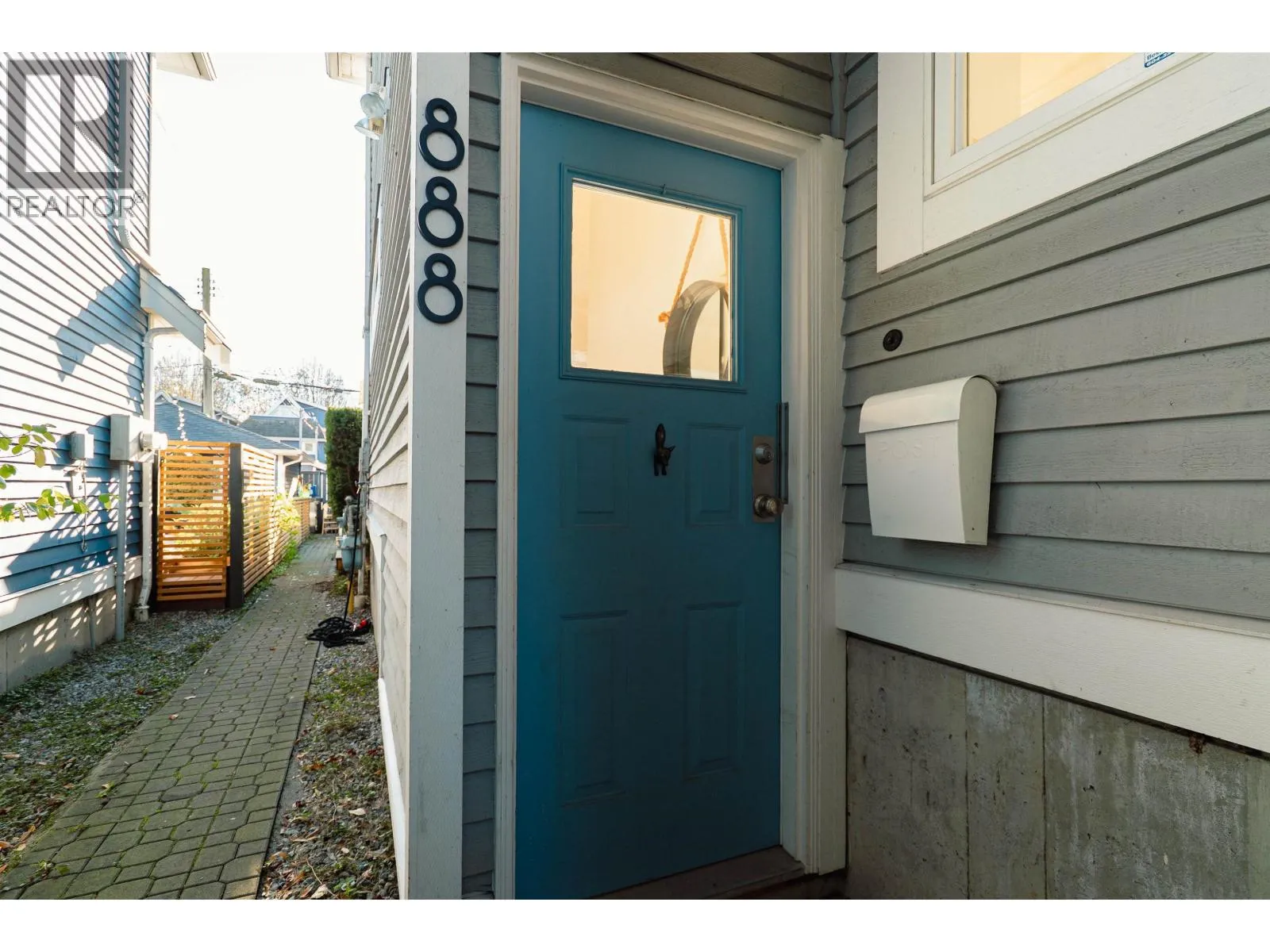 Lucky 8s! Sun-drenched back half duplex offers a peaceful oasis in the heart of the city. The main level is thoughtfully designed for effortless entertaining, with an open kitchen, dining, living flowing to a sunny south-facing deck & fenced yard. Upstairs a primary with ensuite & walk-in closet plus a second bedroom & bath. Top floor offers flexible space for a 3rd bedroom or office complete with a large patio. Detached garage serves as a finished office/gym & can easily revert to parking. Upgrades include new roof, fence, retaining wall, hot water tank, 2 decks, & indoor-outdoor sound system. On a quiet bike path, walk or ride to the seawall, DT, East Van shops & dining in minutes. Surrounded by parks, cozy cafe on the corner & French immersion elementary school. (id:27476)