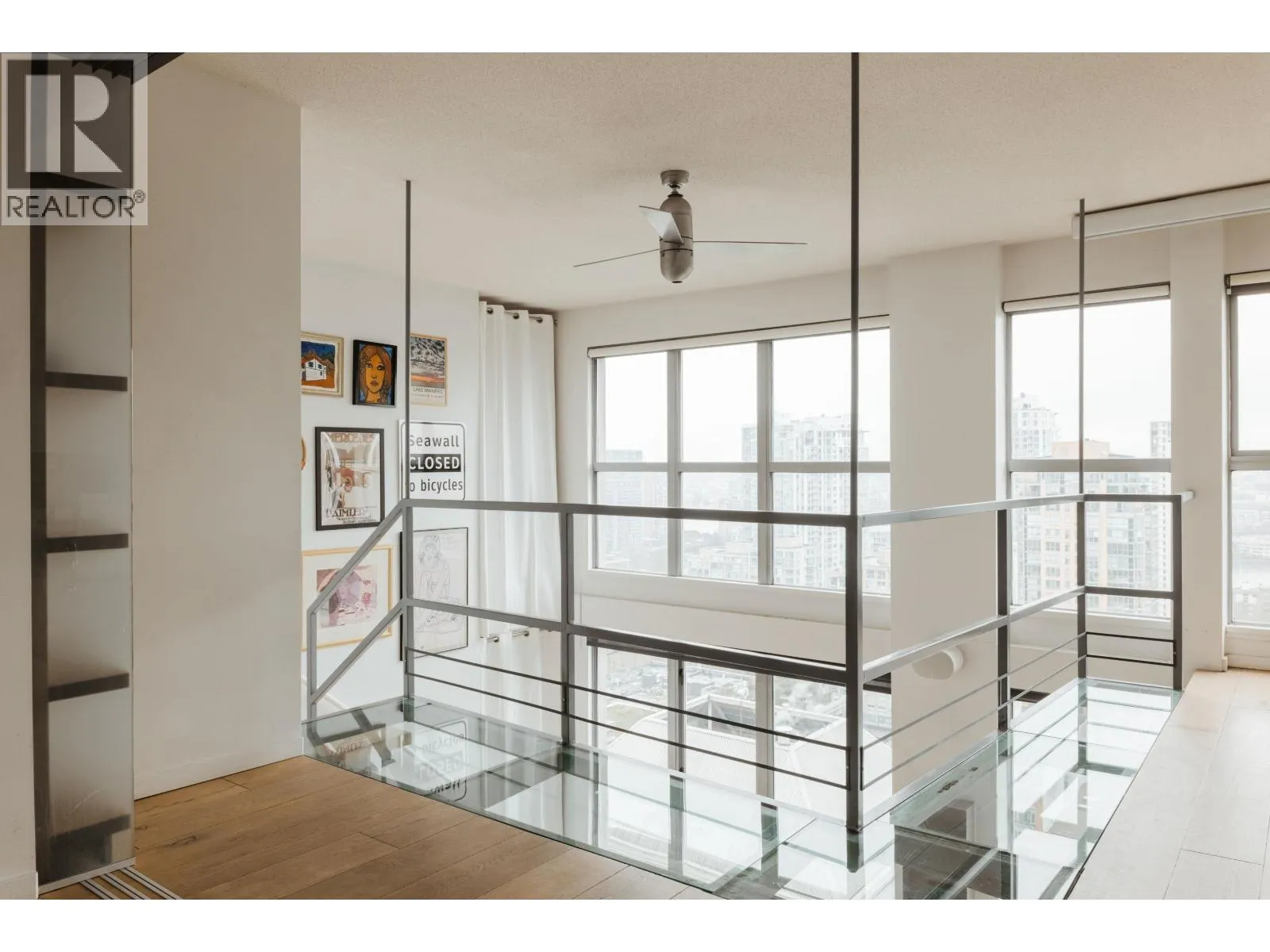 A true showpiece loft with undeniable cool factor. This rare south-facing residence offers panoramic views of False Creek, the city skyline, and Mount Baker-one of Metropolis' most iconic lofts. The 952 sq ft. two-level, 1 bedroom+ flex, 2 bath home has been fully reimagined with a sophisticated renovation that blends design and function. Soaring 16 ft. ceilings and wall-to-wall windows flood the space with light. A custom cantilevered staircase with glass-floor extension anchors the home, alongside Remplus glass doors, lighting by Louis Poulsen and Bocci, premium appliances, and Blu Bathworks fixtures. Set along a treelined stretch of Richards Street, this boutique building offers direct access to a grocery store, fitness centre, and salon. Open house Sat & Sun, Feb 14 & 15, 12-2PM (id:27476)