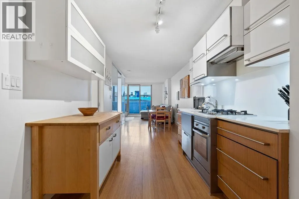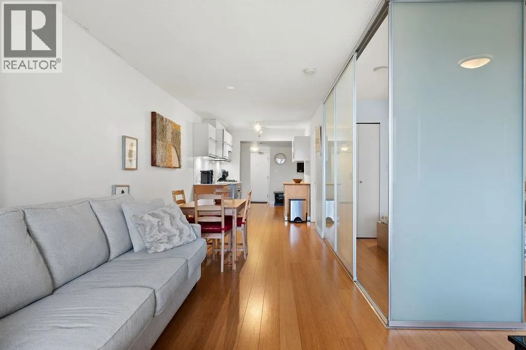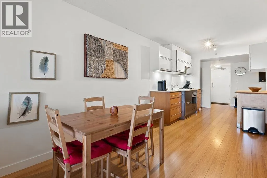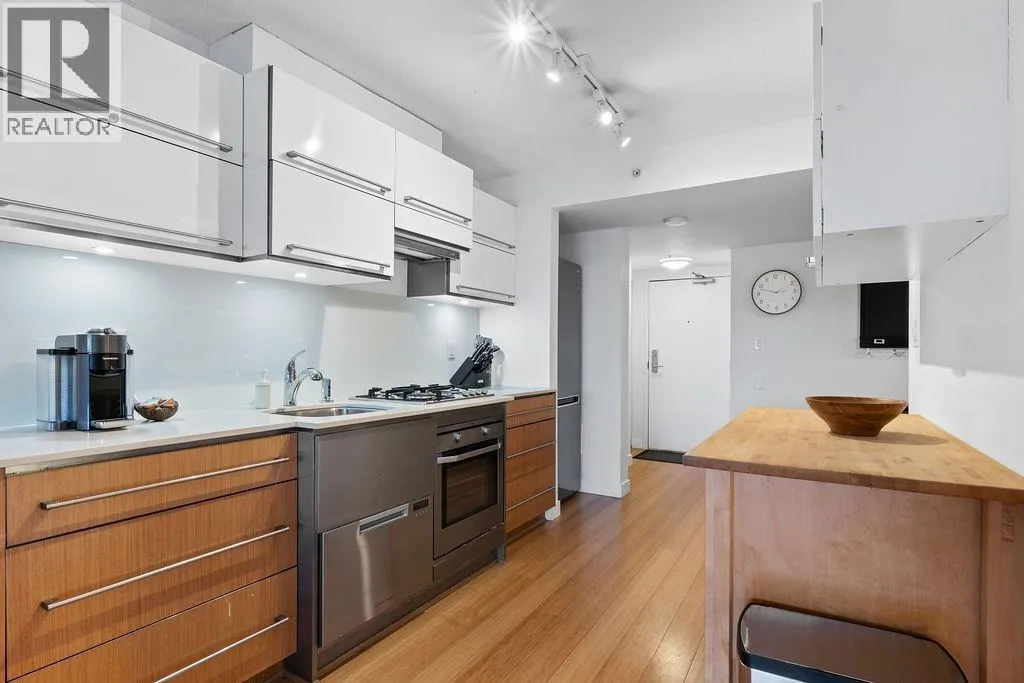 Welcome to this BEAUTIFUL corner Unit at Ginger. This RARE oversized 1 Bedroom & Den, 1 Bath apartment comes with A/C, and sits on the quiet side of the building! The Den could EASILY be a second bedroom and is huge! Exceptionally well maintained at 780 SqFt, this unit boasts a wide open floorplan, perfect for functional living and entertainment. Many upgrades throughout including the washer/dryer, dishwasher, oven, stove top, blackout blinds and more. Large Primary Bedroom fits a king size bed with space left over. The building is AIR BNB ALLOWED, comes with 1 parking & 1 Storage in the heart of Downtown Vancouver. Close to Transit/Skytrain, coffee shops, plenty of restaurants, speak easy bars, recreation, grocery stores. (id:27476)