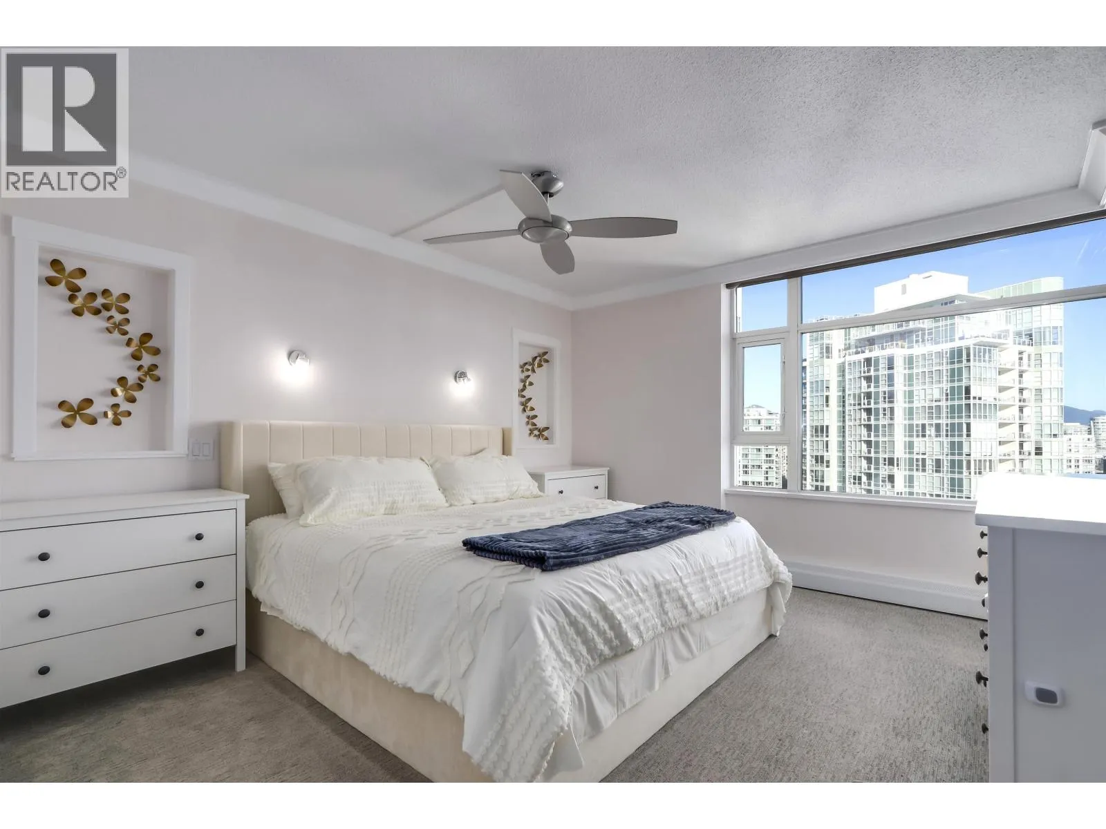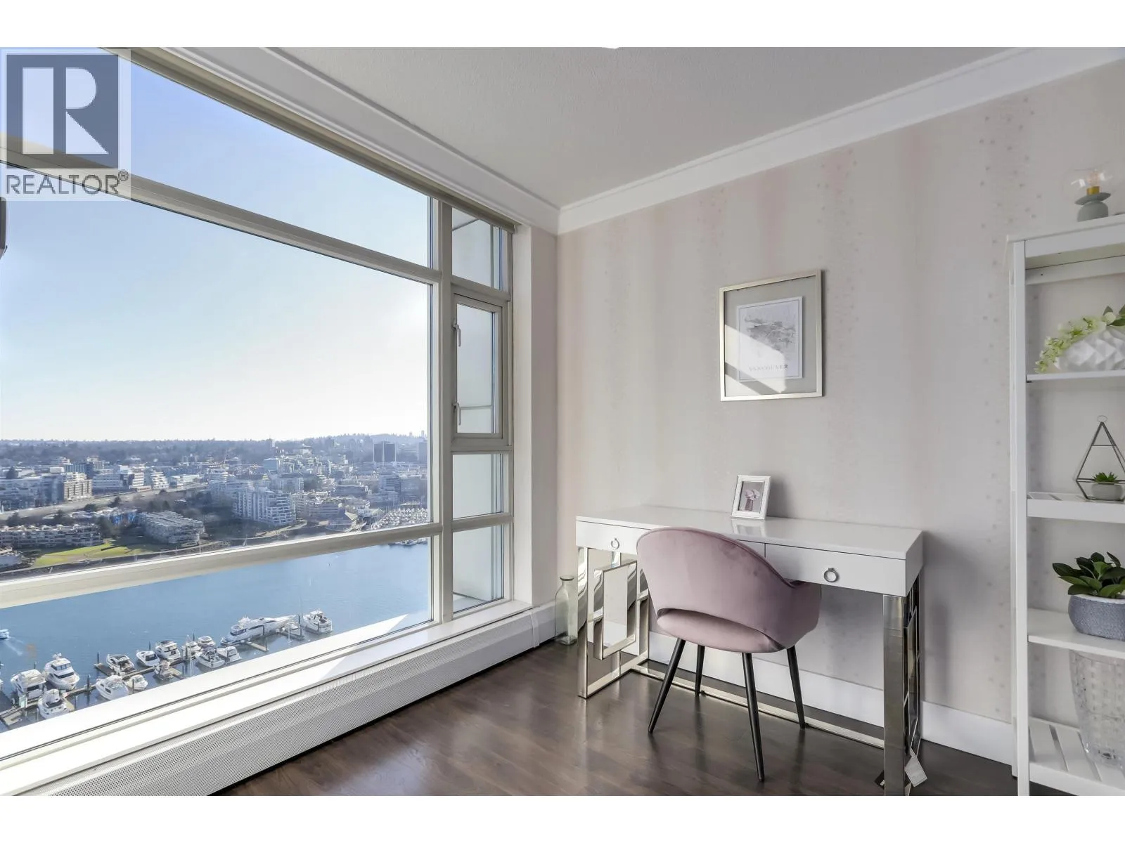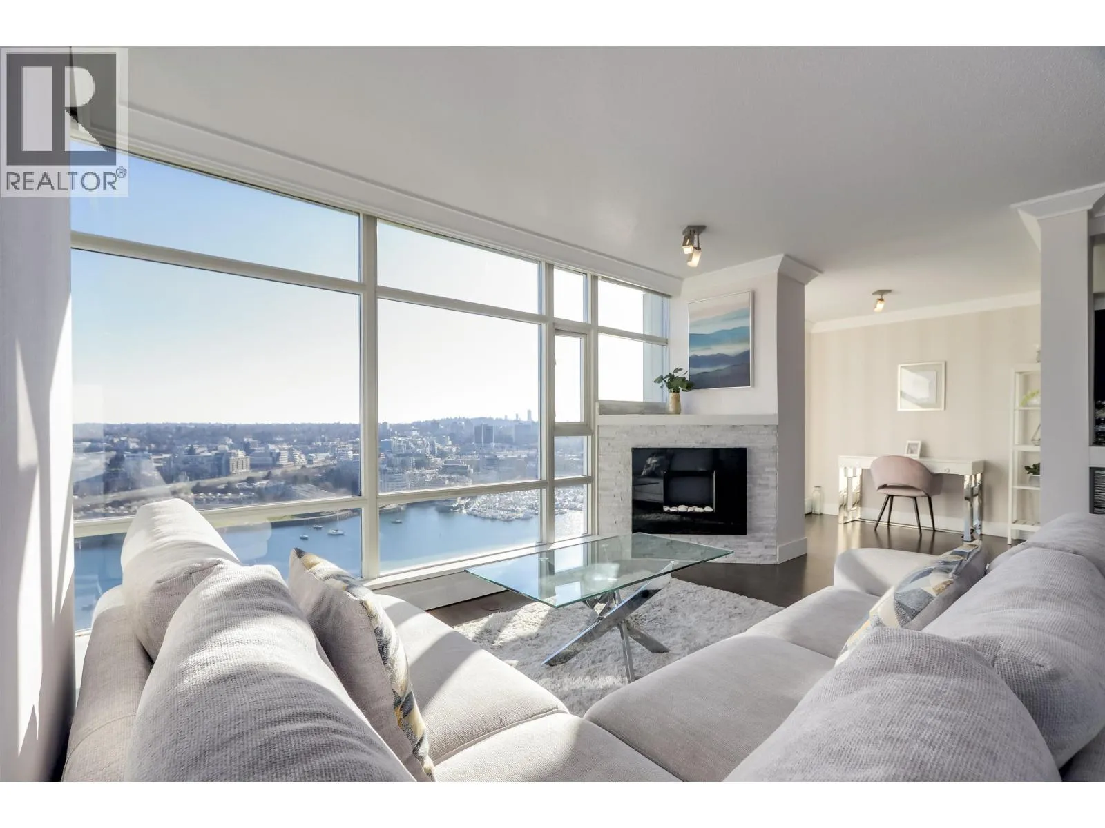 This stunning high-floor corner suite showcases breathtaking 180 degree + southeast waterfront views of False Creek, the marina, and the Seawall. Beautifully renovated 2-bedrooms + den, 2-bathroom home features a custom kitchen with quartz countertops, glass backsplash, and premium appliances. Cozy up by the granite-surround fireplace and unwind in spa-inspired bathrooms with heated floors and custom fixtures. Enjoy remote-controlled electric blinds and corner patio perfect for soaking in the views. Amenities include 24-hour concierge, gym, pool, hot tub, and Amazon parcel lockers. Ideally located above Urban Fare, steps to Yaletown's dining, shopping and the Canada Line - Marinaside living at its best. (id:27476)