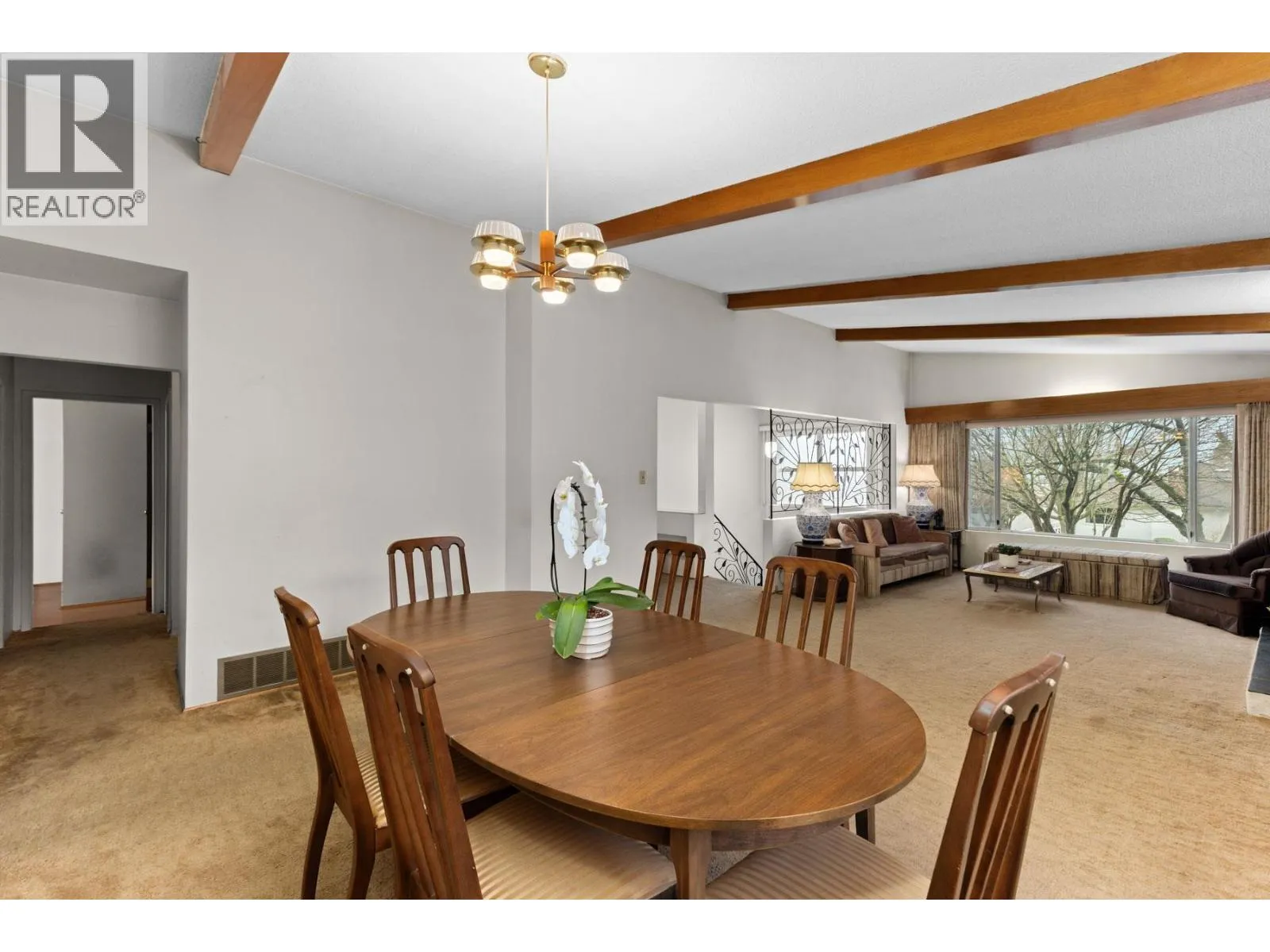 Well-maintained 6-bedroom, 3-bathroom family home on a prime corner lot in a family-friendly neighbourhood, just steps from J.W. Sexsmith Elementary. With over 2,700 square ft of living space, this 2-storey residence offers incredible potential to live in, renovate, or redevelop. The main living room showcases vaulted ceilings, rich wood panelling, exposed beams, and a substantial stone fireplace. Large picture windows invite natural light and frame views of mature greenery. Ideal for a young family ready to modernize or a builder seeking a superb lot with great frontage. A unique opportunity with charm, location, and future upside. OPEN HOUSE: SAT Feb 14th from 2-3 PM. (id:27476)