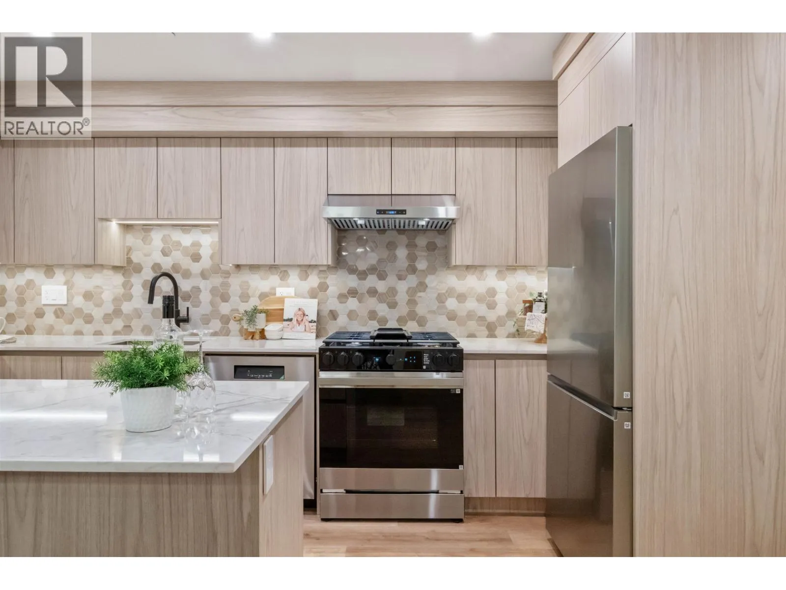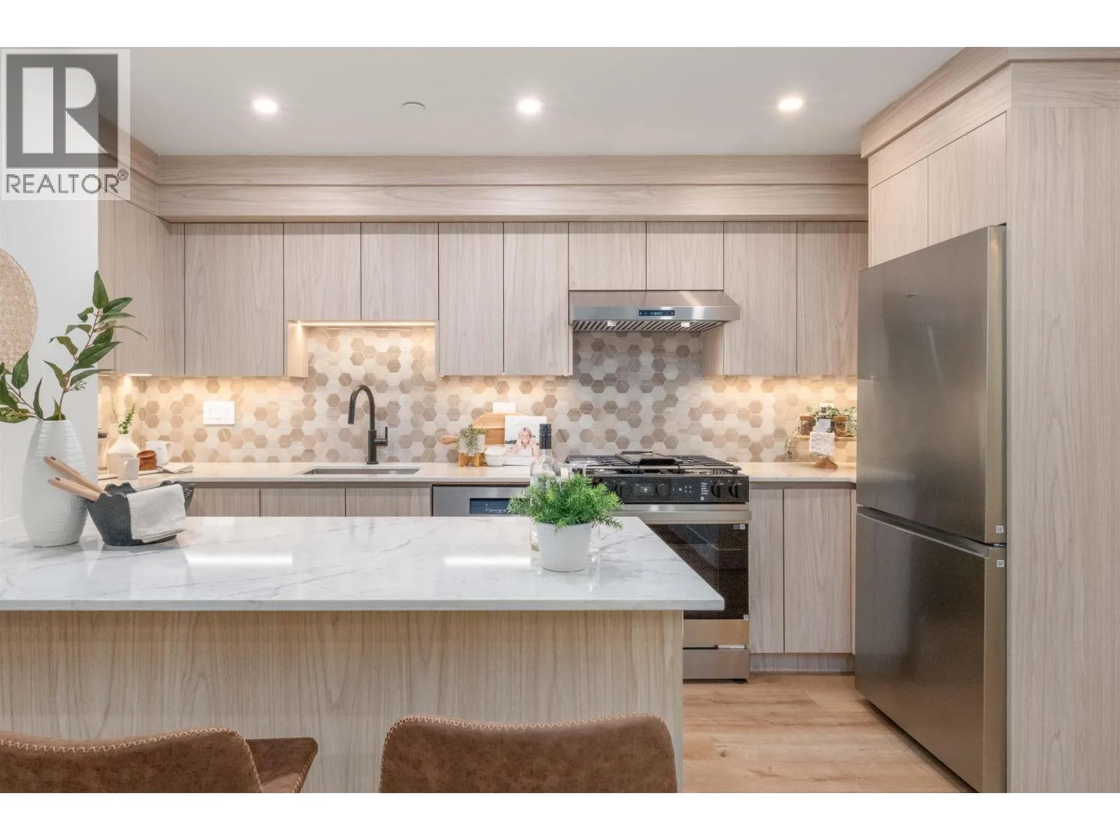 An affordable opportunity to own a brand new 2-bedroom home at Pender Mews, ideal for first-time buyers seeking convenience and long-term value in East Vancouver. This thoughtfully designed residence features luxury vinyl flooring, LED lighting, and a built-in TV stand with custom storage. The kitchen offers two-tone cabinetry, quartz countertops, tiled backsplash, oversized sink with garburator, and a full Samsung appliance package. Bedrooms include custom closet built-ins, while the primary ensuite features a tiled shower with custom glass enclosure. Additional highlights include a heat pump with A/C, EV-ready parking, and a private south-facing outdoor space with gas and electrical connections. Potential GST exemption for qualifying first-time buyers. OPEN HOUSE FEB 14/15 2-4PM. (id:27476)
