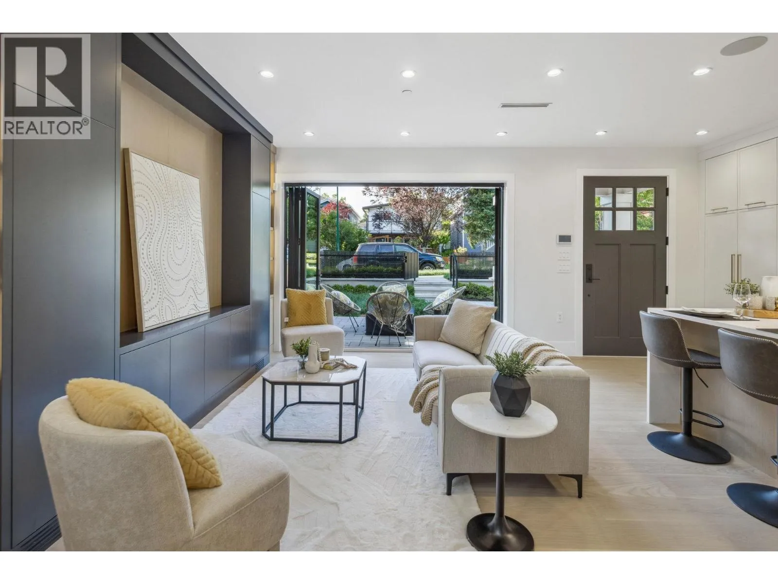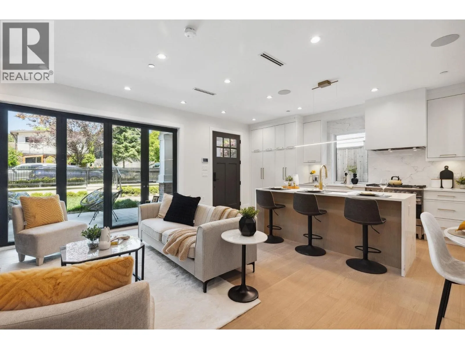 Experience elevated East Vancouver living in this brand-new front duplex, designed for the Trout Lake lifestyle and nestled in the heart of Grandview-Woodland. Built by Encore Collection with a focus on quality and comfort, this 3-bedroom, 3.5-bathroom home offers 1,691 SQFT of thoughtfully crafted space. The open-concept main floor seamlessly connects to the outdoors through accordion-style doors that lead to a private patio-ideal for entertaining or everyday enjoyment. Premium features include high-end Fisher & Paykel appliances, built-in speakers, air conditioning, and modern designer finishes throughout. Live just moments from the vibrant energy of Commercial Drive, the serenity of Trout Lake, and the convenience of transit and top-rated schools. This is a home that truly blends lifestyle, location, and luxury-perfect for families and professionals alike. Open House Sun (Feb 15) 2:30 - 4:30 PM. (id:27476)
