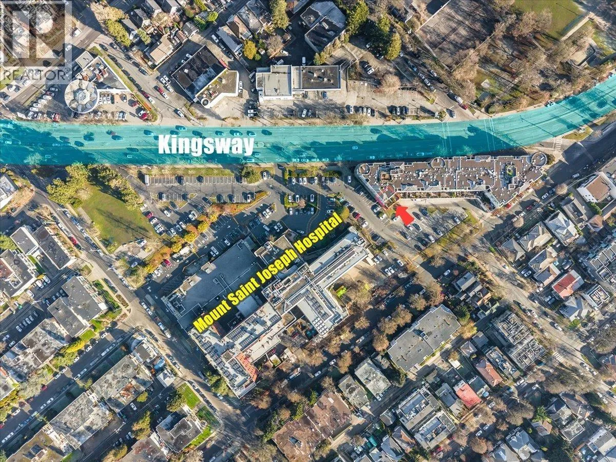 Must-see, newly updated 916 SF ground-floor office space at Harvard Place, ideally located next to Mount Saint Joseph Hospital in the heart of Mount Pleasant. This bright corner unit features abundant natural light, front and rear entrances, and a functional layout comprising seven private offices, a kitchenette, and two dedicated parking stalls. Additional customer parking is available at the rear, paid parking at the hospital, and 2-hour free street parking along Kingsway. Situated in a four-storey mixed-use building and zoned C-2/C-2C1, the space offers excellent flexibility and is well-suited for medical, dental, laboratory, or ancillary hospital support uses, among other professional office applications. (id:27476)