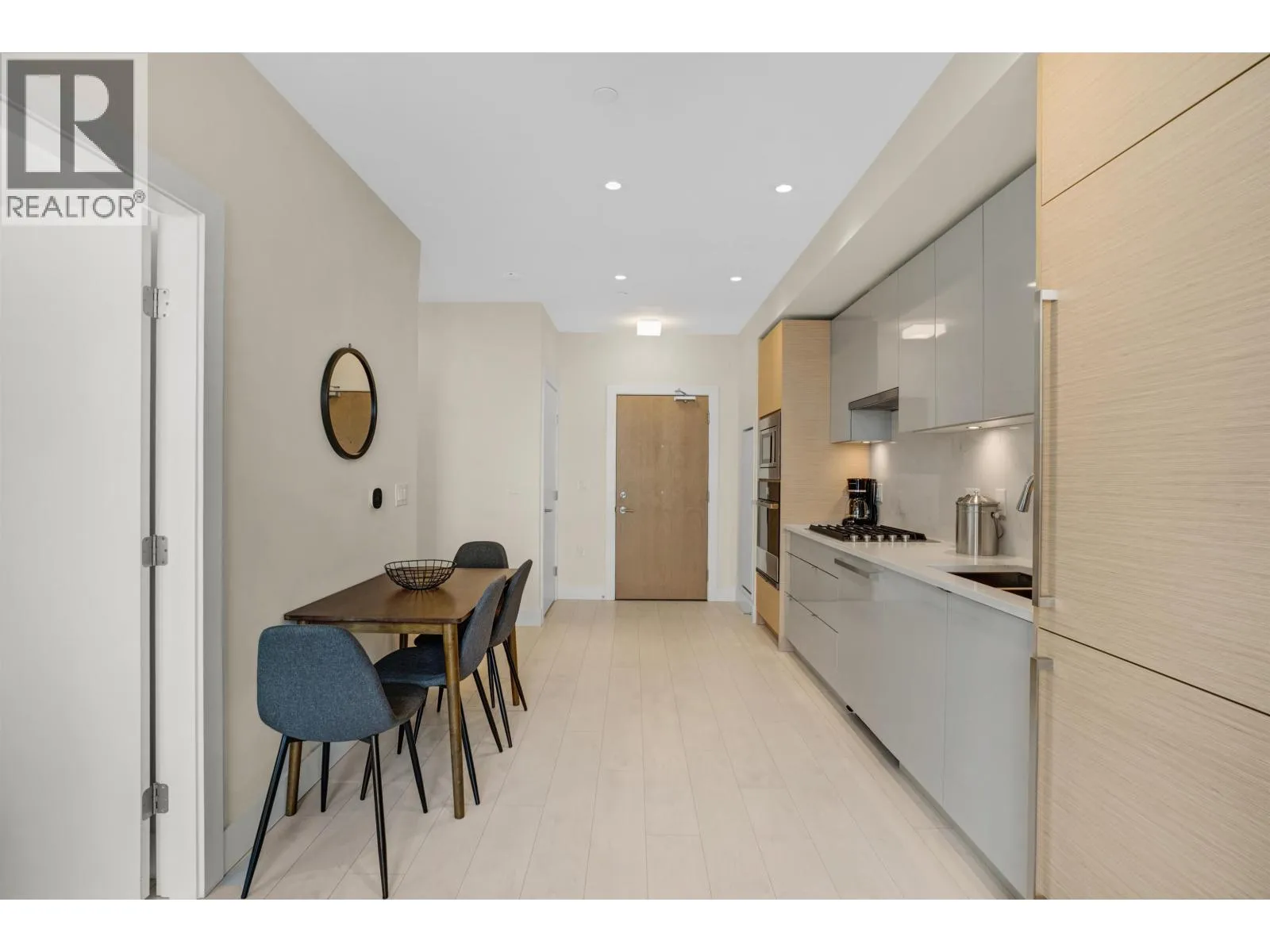Welcome to MODE in Vancouver´s vibrant River District. This well-designed 1 bedroom plus den home offers a functional open-concept layout with quality finishes throughout. The modern kitchen features integrated appliances, sleek cabinetry, and thoughtful storage. East facing windows allow for great natural light, creating a bright and comfortable living space. Residents enjoy an impressive lineup of amenities including a fully equipped fitness centre, co-working space, indoor/outdoor lounge, rooftop terrace, hot tub, dog wash, guest suites, and daytime concierge. Steps to shops, dining, groceries, cafés, parks, riverfront trails, and transit, with easy access to Metrotown and Downtown. Includes parking and storage. Open House Saturday & Sunday 2-4 (id:27476)