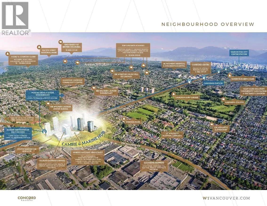Best deal $/sqft Cambie & Marine! W1 by Concord Pacific! Large 2 level 2 bedroom and den. Sleek design, functional, A/C, wide plank hardwood flooring, gourmet kitchen with Miele appliances, deluxe bathrooms with marble tiles. Flex room den/office on main! Street entry & in building access. Fast access to parking. Amenities: 24/7 concierge, gym, yoga/ping pong room, theatre room, meeting room, banquet hall & more! Daycare next door. Walk across the street to Marine Gateway: T&T, Winners, Shoppers, Starbucks, Canada Line Skytrain! Listed $228K under 2026 BC Assessment! (id:27476)