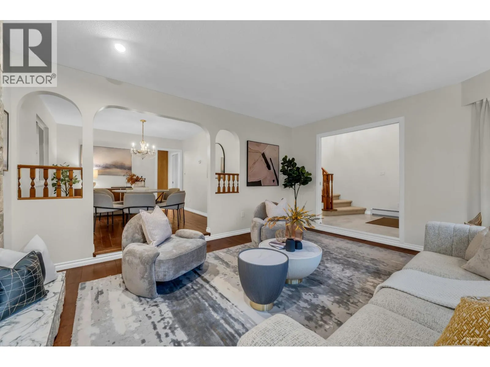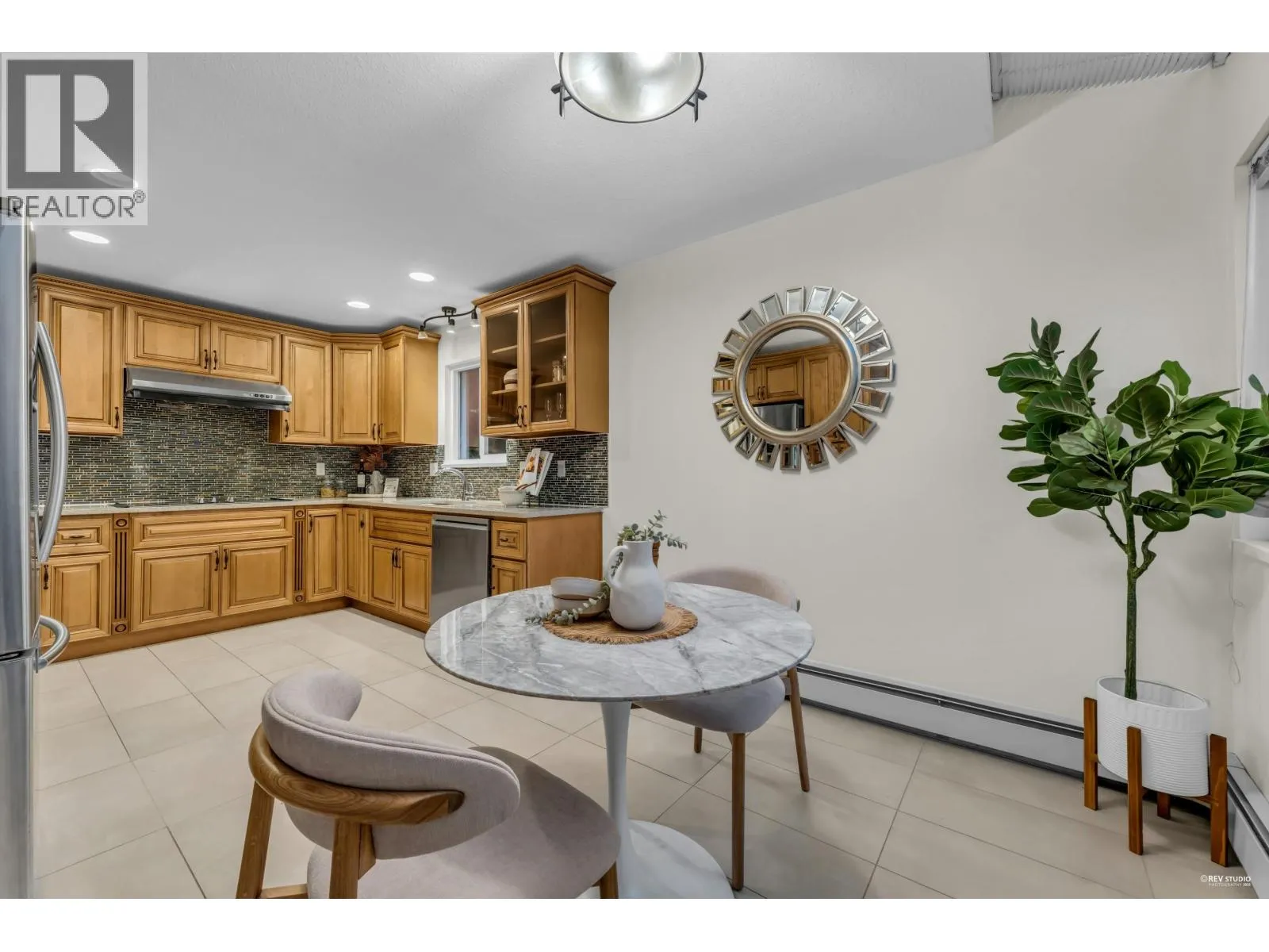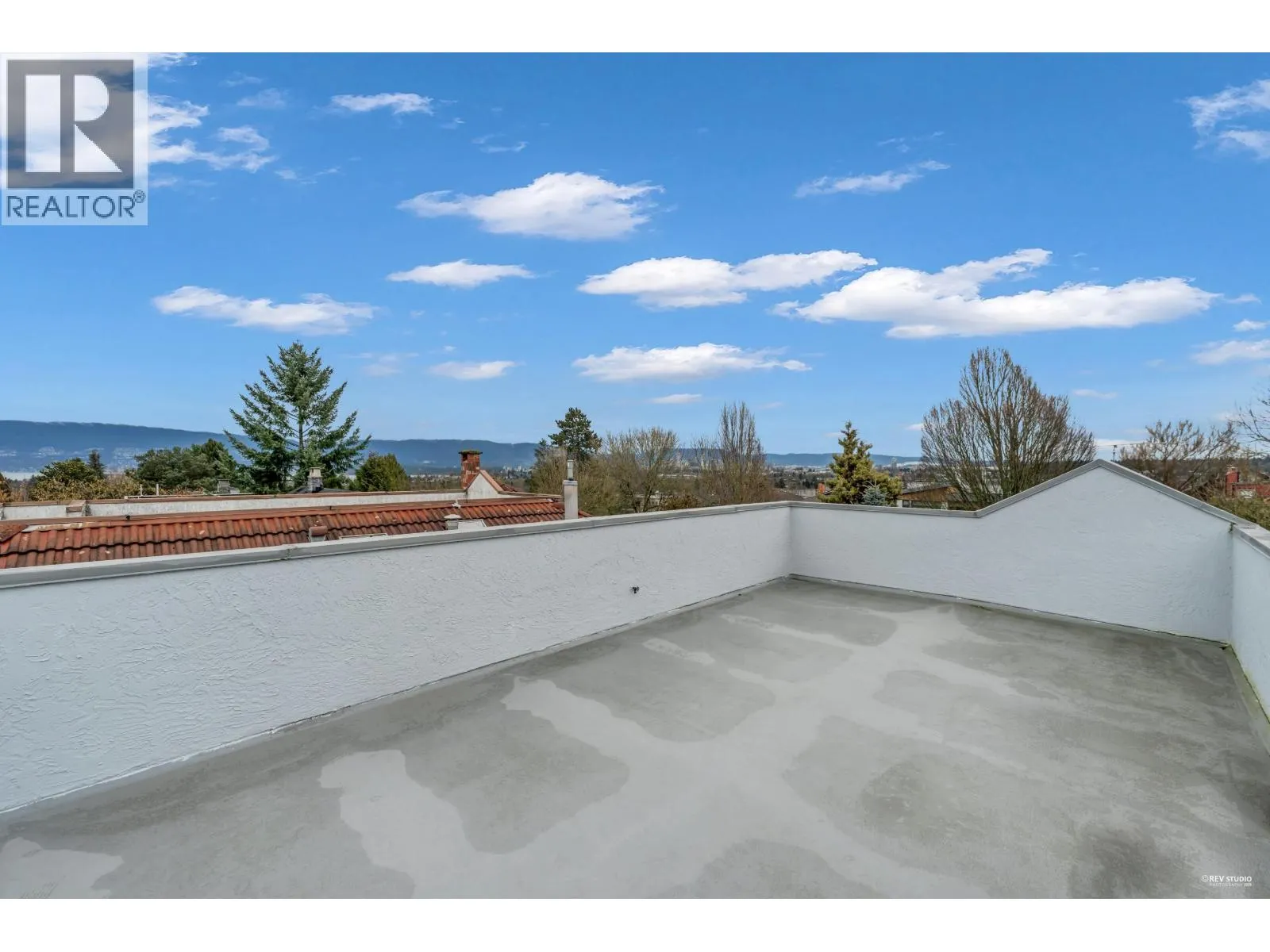 Sweeping view from the rooftop. This well-kept four-bdrm family home on two levels offers a practical layout. The main floor features a welcoming living area with a curved staircase and elegant chandelier, a dedicated dining space, and a spacious kitchen with an eating area. A cozy family room with fireplace completes the level. One bedroom on the main floor, together with a full bathroom, provides excellent flexibility, or use as a home office. Upstairs, the primary bedroom includes a walk-in closet and ensuite, complemented by two additional bedrooms and a full bathroom. Multiple outdoor decks add valuable outdoor living space, including a rooftop deck for relaxation and entertaining.Located within a BC Top School catchment, including Kitchener Elementary and Lord Byng Secondary. (id:27476)