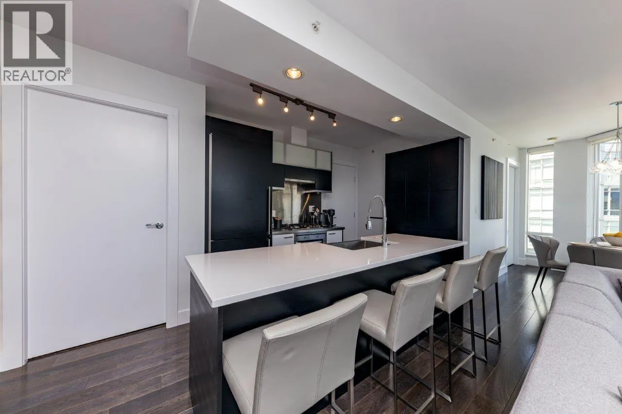 Welcome to this beautiful 2 bedroom, 2 full bathroom 28th floor-unit at the sought-after Dolce at Symphony Place. This spacious 1,030 square foot open-concept unit offers views from every room. While living here you'll enjoy granite/stone/quartz countertops, gleaming hardwood floors throughout the main living area as well designer Fornasetti wallpaper from Milan, Italy. This unit also features a living room with a gas fireplace, a kitchen with an eating bar, and a flex space off of the kitchen that can be used as a pantry/office or any storage needs you have. There's also a balcony, a dining room, a large master bedroom with a walk-in closet, plus an additional closet and a huge 4-piece master bath. The second bedroom has a 4-piece semi-ensuite. (id:27476)