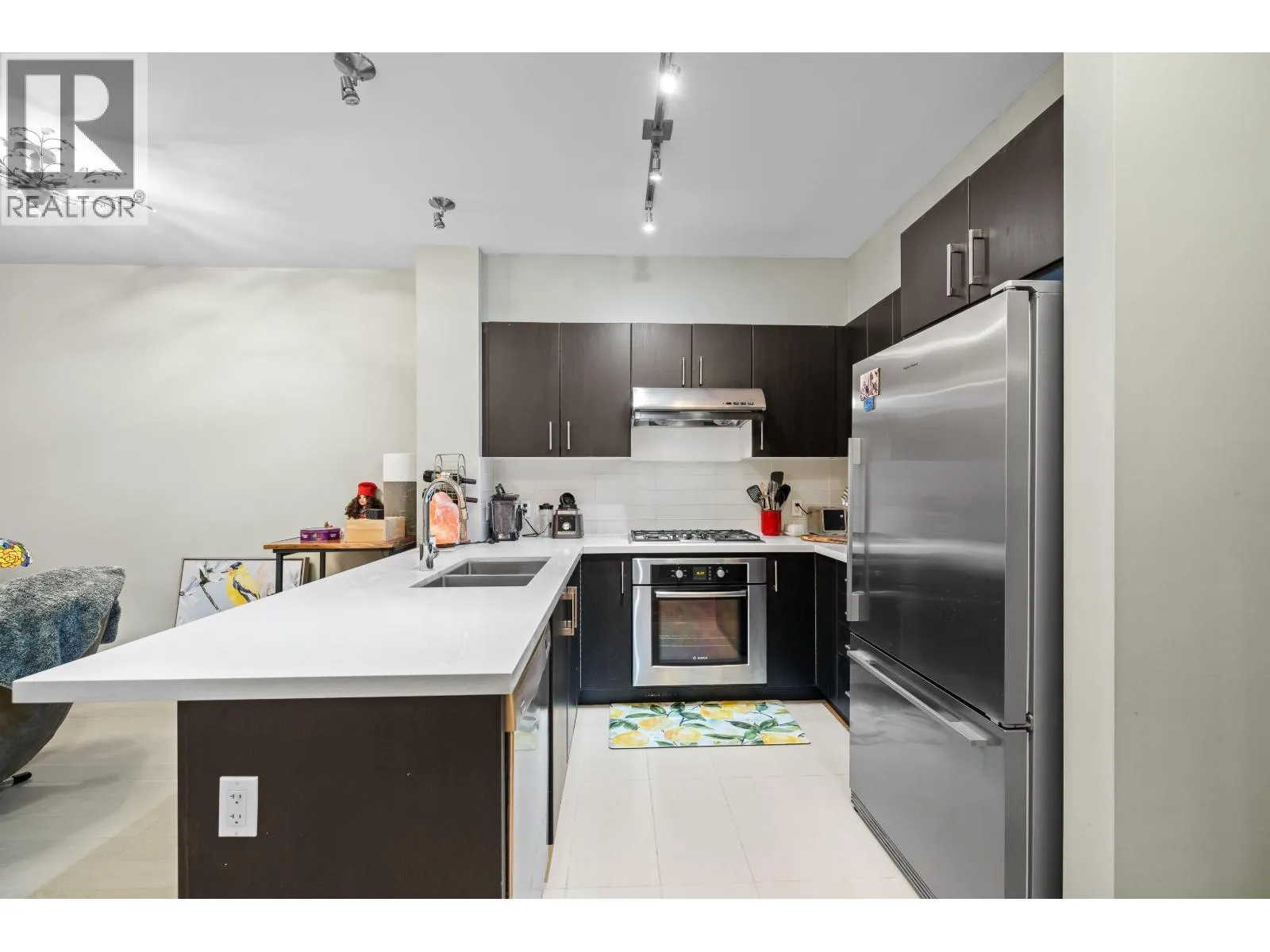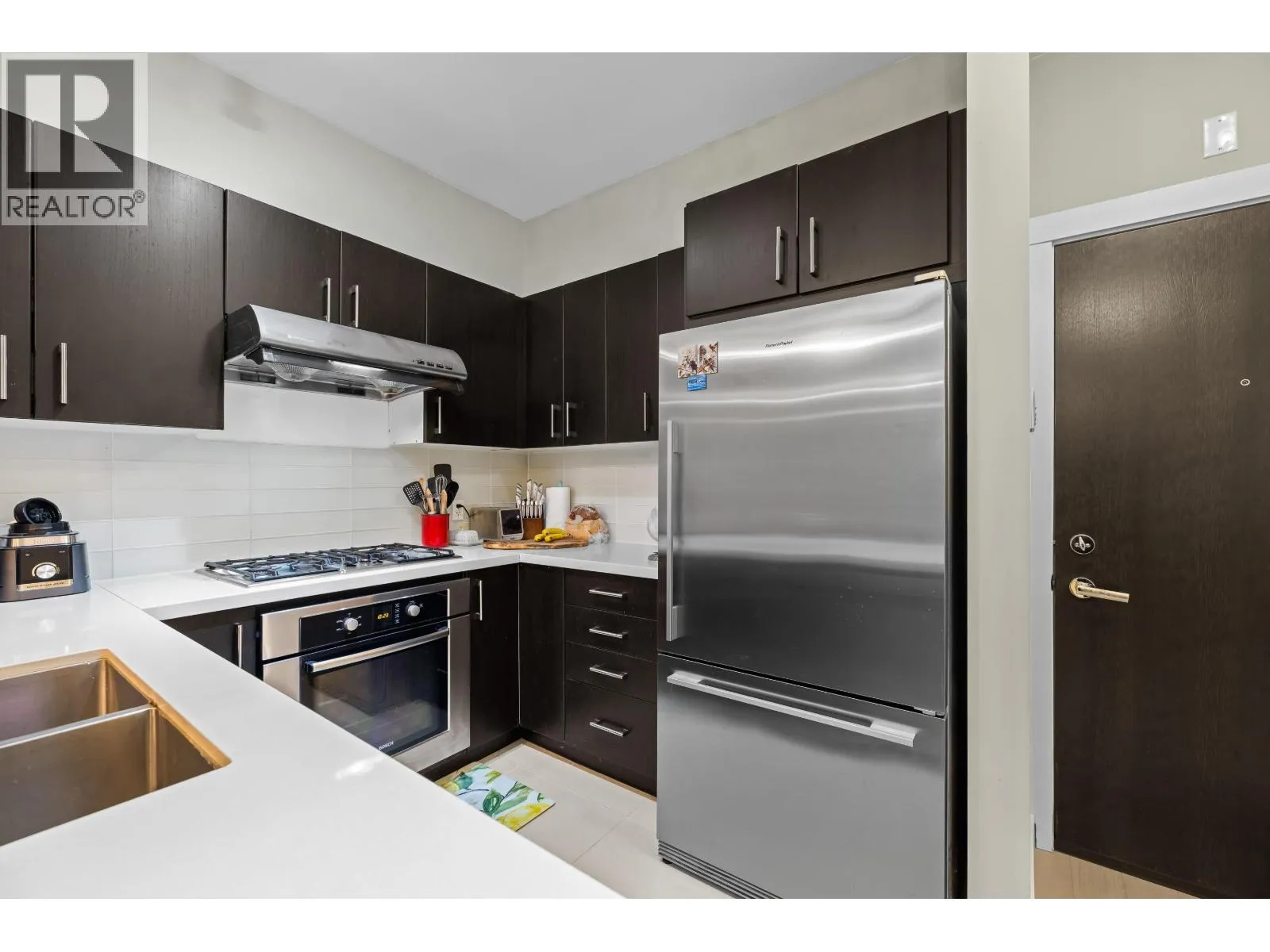 Welcome to New Water by Polygon, located in the highly desirable River District waterfront community. This 2 bedroom + flex home stands out with a rare and valuable feature-private street-level access directly from your front door. Enjoy the convenience of a townhome-style entry with the comfort and security of condo living. Perfect for pet owners, cyclists, strollers, and anyone who appreciates effortless access. Inside, the layout offers excellent bedroom separation, a flexible room ideal for an office or storage, and a spacious living area that opens onto a generous outdoor patio. New flooring was installed in 2024. The primary bedroom features a walk-through closet and a spa-inspired ensuite with double sinks, a deep soaker tub, and a separate glass shower. New Water is a well-maintained, West Coast-inspired community with an exercise studio and meeting room. Just steps to the River District´s trails, parks, shops, restaurants, and everyday amenities. (id:27476)