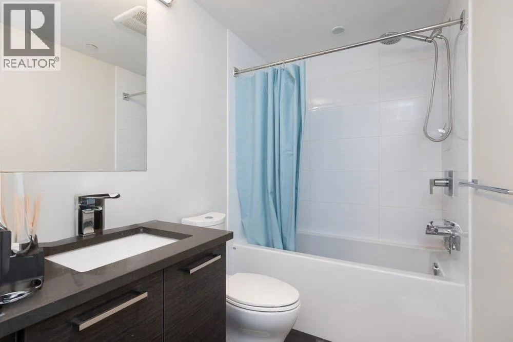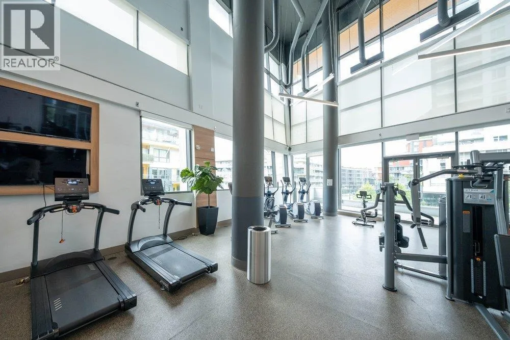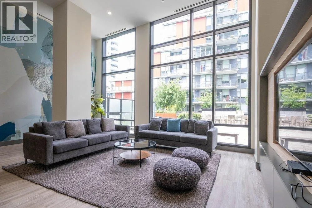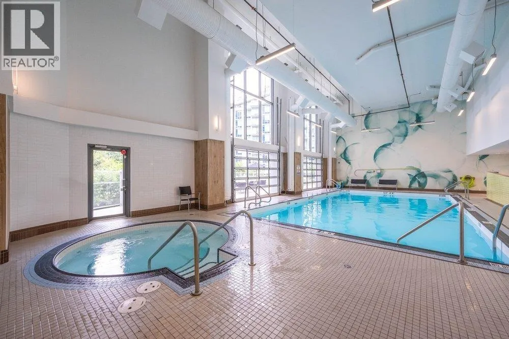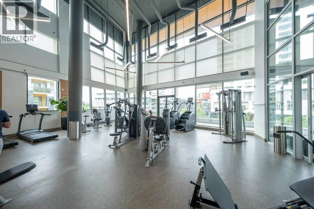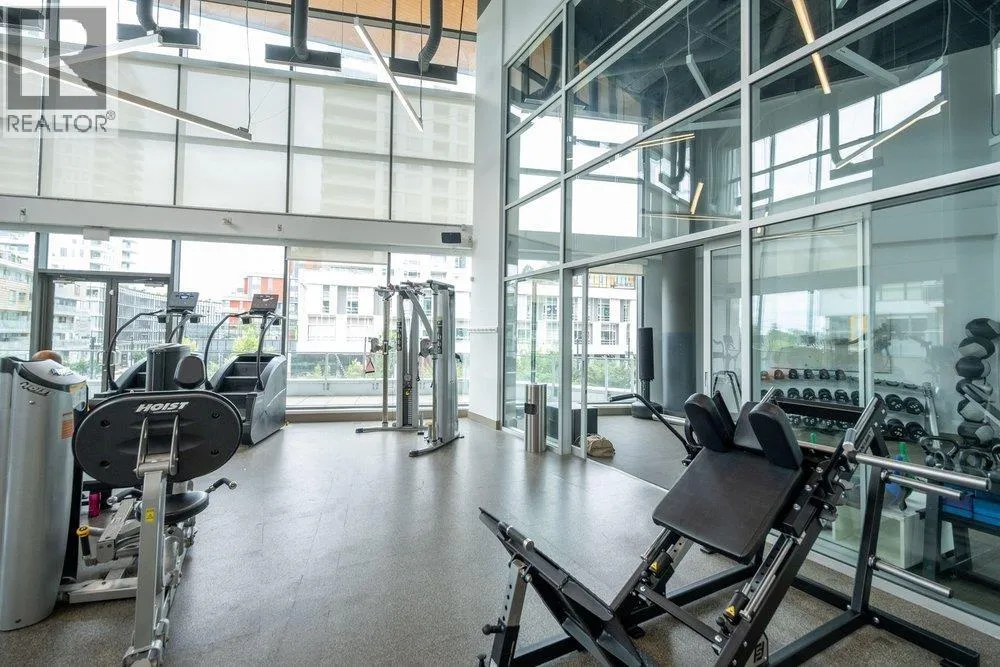 Seldom available inside CORNER SUITE at the vibrant River District Village. This AIR-CONDTIONED spacious 2-bedroom + den, 2 bath home features 8'-5" ceilings for the bright & airy feeling with a direct view to the quiet inner courtyard, laminated floorings, large covered balcony. The chef inspired kitchen boasts quartz countertops & tiled backsplash, high-end Jenn-Air stainless steel appliances with gas cooktop. Primary bedroom features a large walk-in-closet and a 3 piece ensuite with in-floor radiant heating. The second bedroom is non-adjoining for maximum privacy. Enjoy exclusive access to Club Central, a 14,000sf amenity center with indoor pool, hot tub, sauna, steam room, a fully equipped gym, indoor basketball & squash courts plus multiple social lounges, kids' playroom and more. (id:27476)