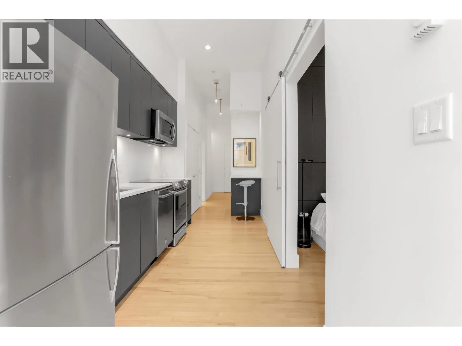 Loft lovers, this one´s for you! Located in the iconic Greenshields Building, this one-bedroom home pairs Gastown´s historic charm with modern style. Soaring over-height ceilings, exposed brick, heritage windows, and reclaimed hardwood floors create a light-filled, character-rich space. Extensively updated with a sleek kitchen, custom bedroom storage, blackout roller shades, and a spa-inspired bathroom. Step out to Gastown´s best cafes, restaurants, boutiques, and waterfront walks-plus just five minutes to Waterfront Station. Ideal for first-time buyers or a chic, low-maintenance city escape on the best block of Gastown. (id:27476)