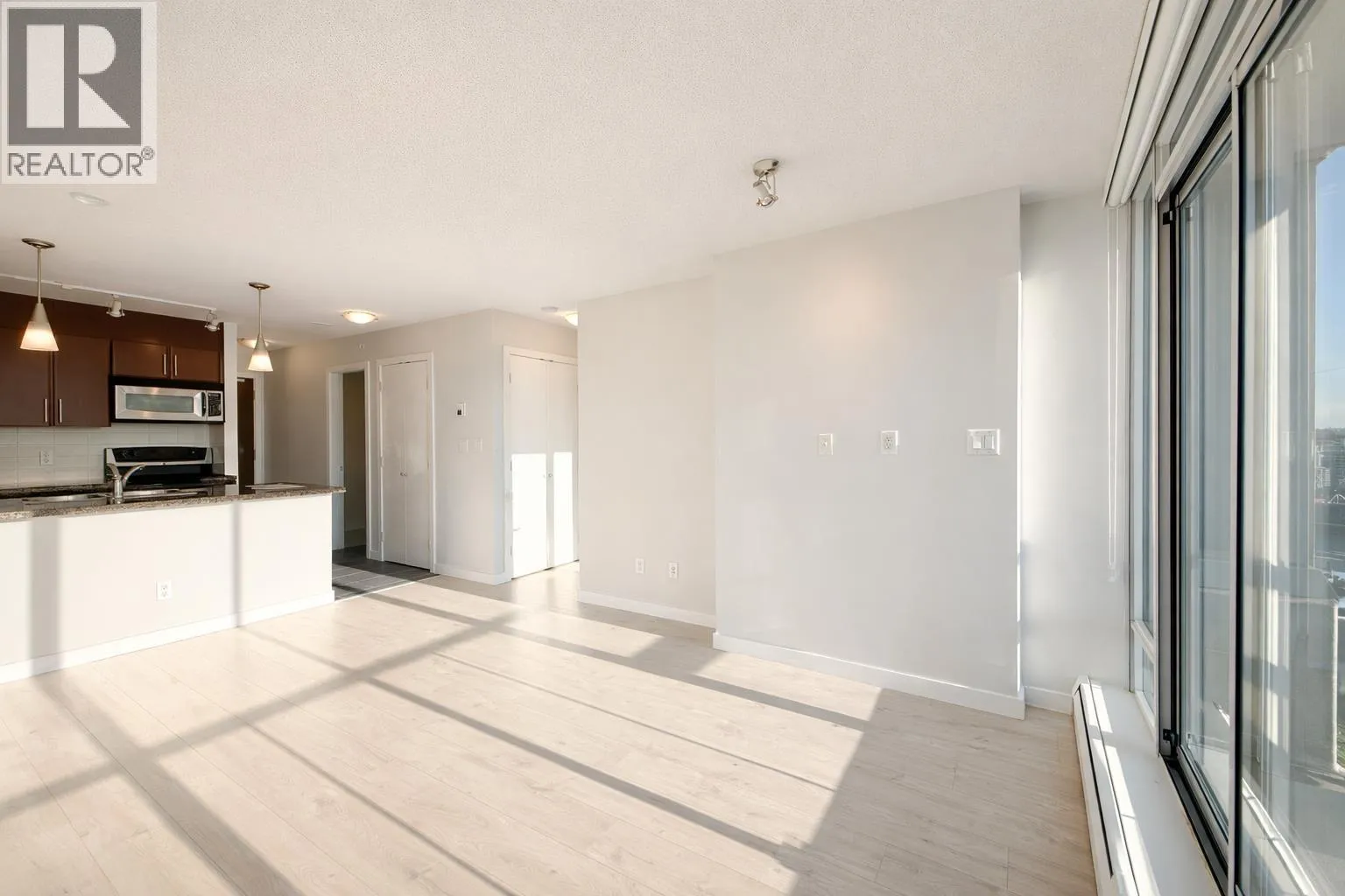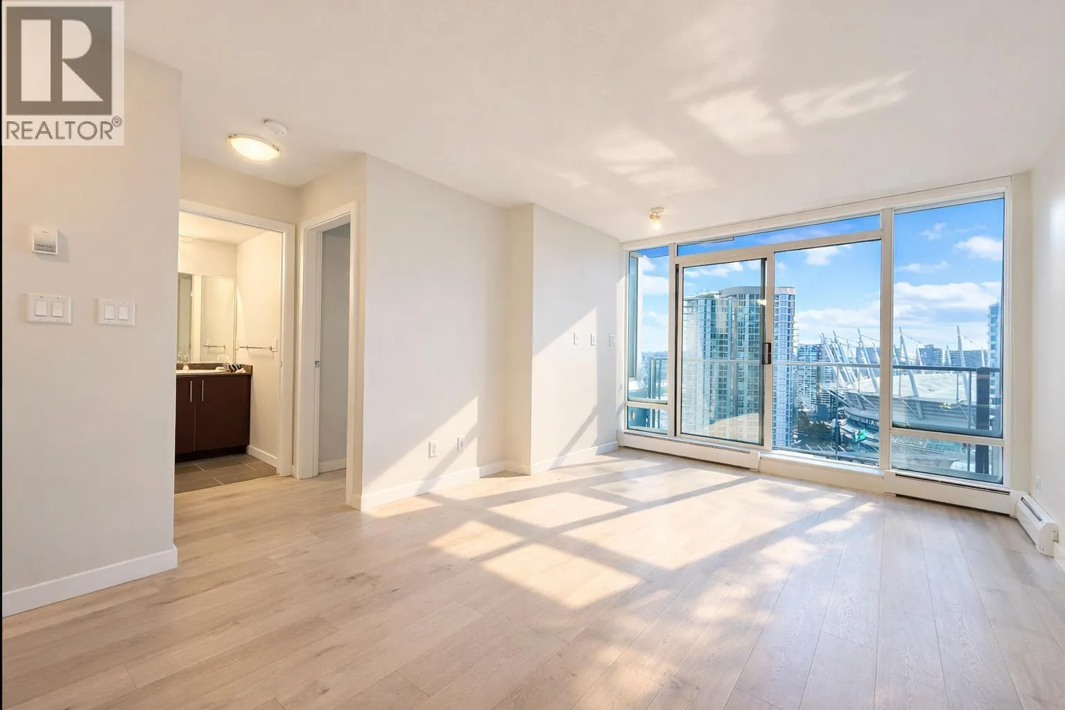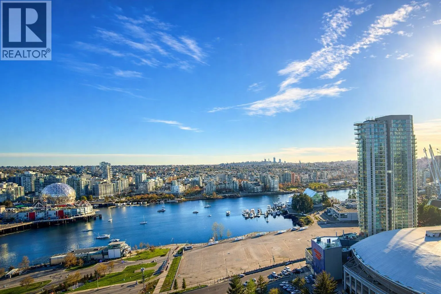 Stunning SW-facing suite in Firenze Tower II with breathtaking 180° views of False Creek, city skyline, Rogers Arena, & BC Place. This bright, open-concept home offers 1 bedroom + den, 1 full bath, in-suite laundry, and an efficient layout with quality finishes and stainless steel appliances. Spacious living area opens to a private balcony-perfect for relaxing or entertaining. New flooring and fresh paint in 2025, move-in ready. Airbnb/short-term rentals allowed, ideal for investors or end-users. Resort-style amenities include indoor lap pool, hot tub, sauna, gym, media room & outdoor terrace. Unbeatable location steps to SkyTrain, Costco, T&T, Yaletown, Crosstown Elementary & the future St. Paul´s Hospital. Parking and storage locker included. (id:27476)