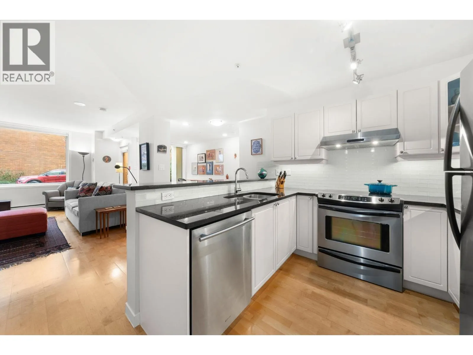 A rare, street-level, private-entry townhome in the heart of Kits. This 950sf 1 bed + 2 bath TH delivers big - the office, dining space, open kitchen, comfortable living room and generous in-suite storage are perfect for the first timer, the down-sizer, or the long-termer. Originally planned as a 2-bed, it would be a simple conversion. Hunter Douglas blinds, roller screens on every door, quality finishings, a cozy fireplace and direct access to outdoors (pet owners rejoice!), elevate your living experience. North Yorkville's building envelope has been completely re-done in the past three years - roof, siding, windows, doors, patios/balconies. With a 97 Walk Score, the beach 2 blocks away, and countless bike paths in all directions, health and wellness is easy, and daily essentials are a snap. Around the corner is your pick of food, drink and entertainment - Oddfish and AnnaLena are steps away. Parking. 2 cats or 1 dog up to 50lbs. This is turn-key living in a truly timeless hood. OPEN SUNDAY Feb 15, 2-4pm (id:27476)