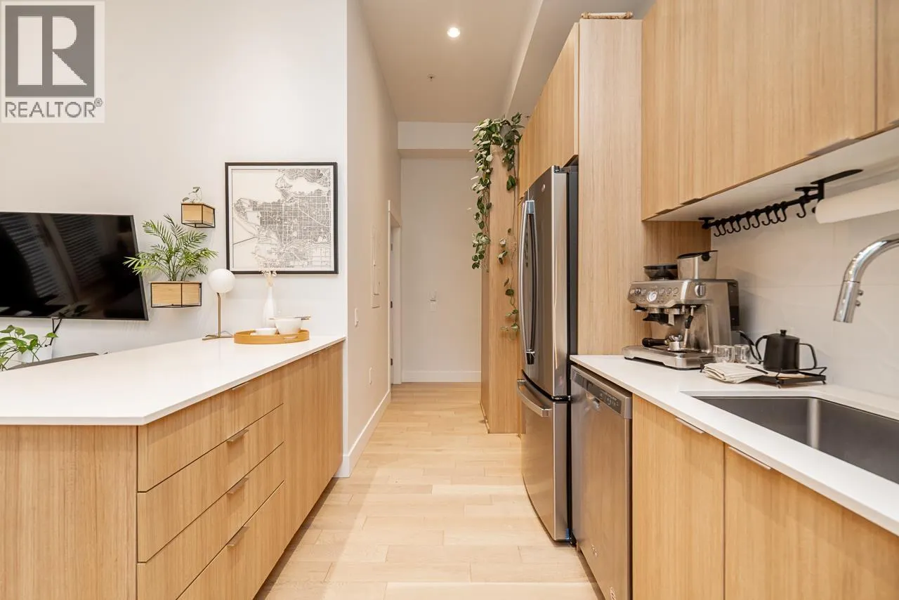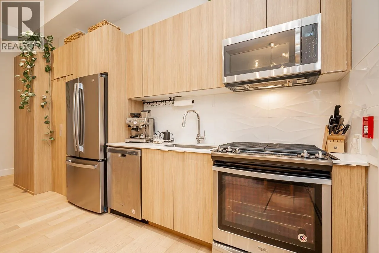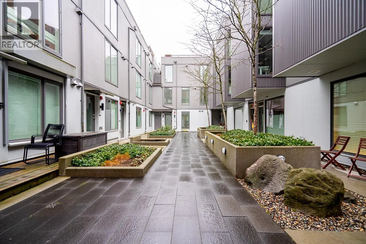 Welcome to this spacious 1-bed 1-bath townhouse at the Hanna. It is perfectly situated in the heart of Vancouver. This thoughtfully designed home features 11 ft ceilings, hardwood flooring throughout, creating a warm and cohesive living space. The modern kitchen is equipped with stainless steel appliances and flows seamlessly into the open-concept living and dining area, ideal for everyday living and entertaining. The unit has in-suite laundry and comes with 1 parking stall. Step outside to your private 172 sqft patio, perfect for morning coffee or relaxing evenings. Located close to transit, parks, shops& restaurants, this home offers exceptional urban living in a vibrant, walkable neighbourhood. An excellent opportunity for first-time buyers. Open House Sat Feb 14 & Sun Feb 15 from 2-4pm (id:27476)