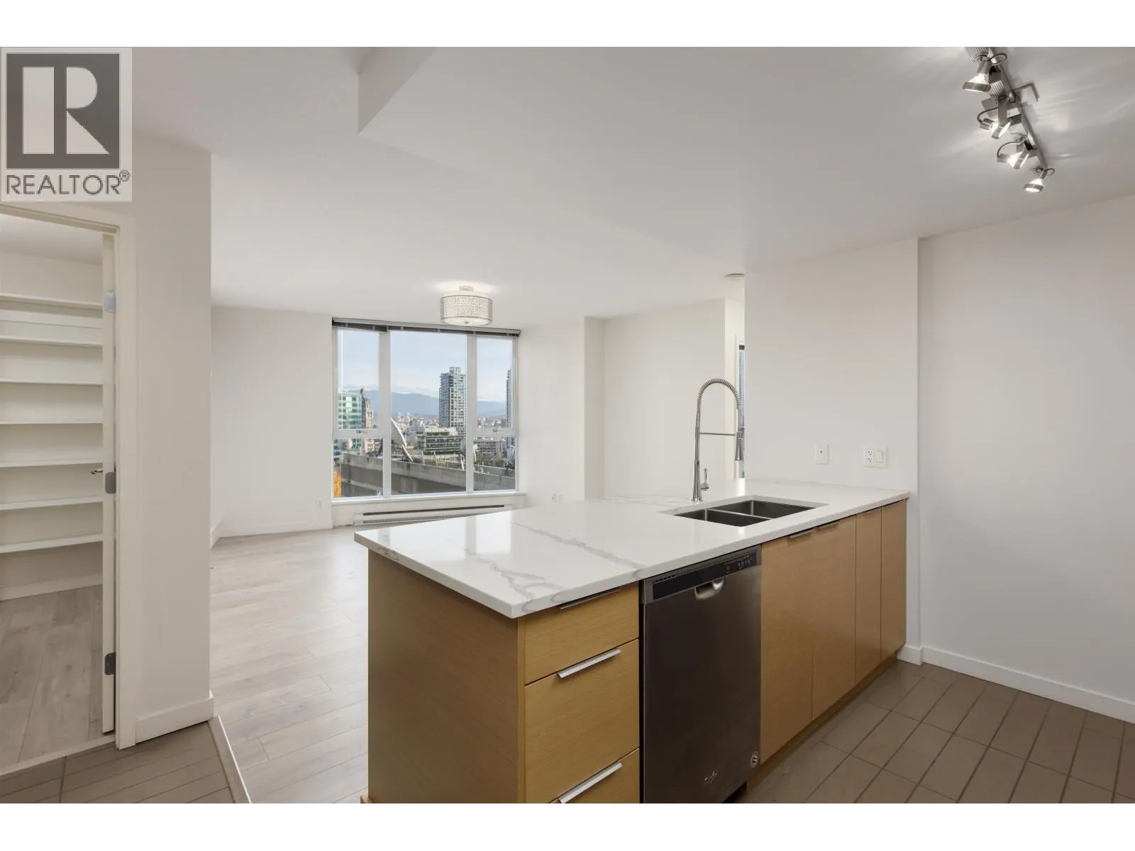 Exceptionally superb corner unit. Spacious residence with outstanding floor plan. Sweeping cityscape outlook with mountain background. Renovated floors, counters, with lux kitchen and bathroom. Expansive covered balcony, plenty of room for your bistro table and chairs. Centrally located home ... walking distance to shopping, restaurants, banks, library, sport facilities and more. Canada Line minutes away. Just move in ... kick back ... relax and enjoy. You're going to love this place. Don't miss this opportunity! Be there. (id:27476)