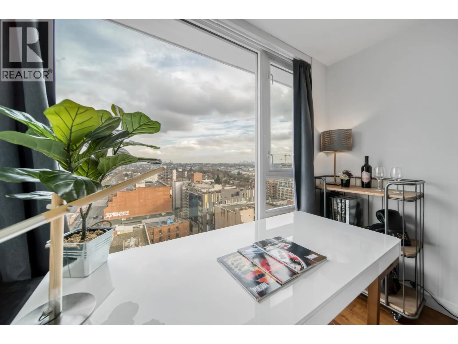 Welcome to 188 Keefer by W.T. Leung Architect in the heart of Chinatown. This exclusive 2-levels Penthouse Unit includes 2 Ensuites on the upper level and a Large Den. The unit has Floor-to-ceiling windows with an unobstructed East-facing view to Mountains, Burrard Inlet, and Vancouver/Burnaby City Skyline. The Interior features white lacquered European Kitchen Cabinets, Miele & Bloomberg Appliances Package, Custom Art Glass Backsplash, Corian Countertops, Walnut Hardwood Flooring, Glass staircase, contemporary private home office, and Duravit Bathroom Fixtures. Enjoy modern building amenities such as fitness room, BBQ terrace, and fireplace, designer-furnished lounge, garden, and kids play area. In addition, the Unit comes with 2 EV parking stalls & Storage Locker. Move-in Ready. (id:27476)