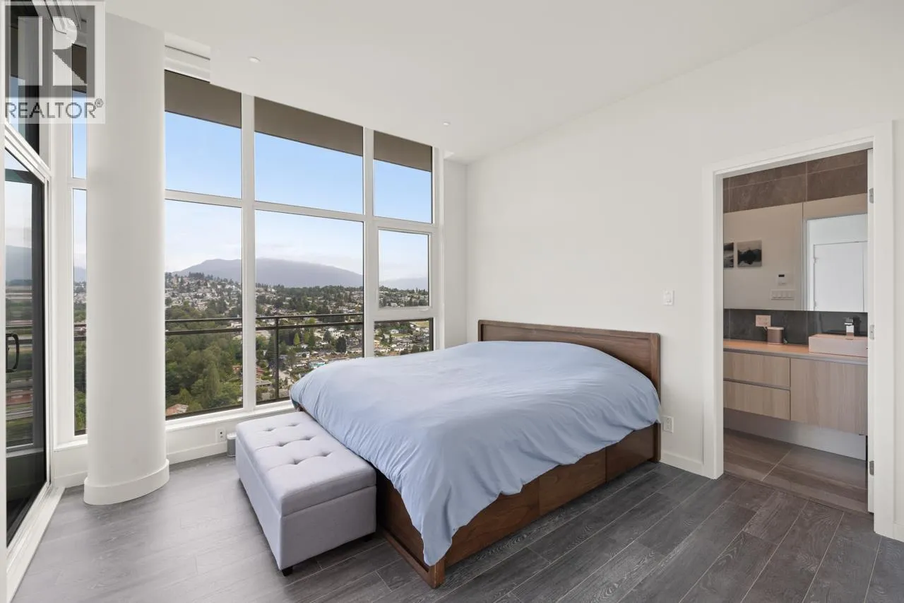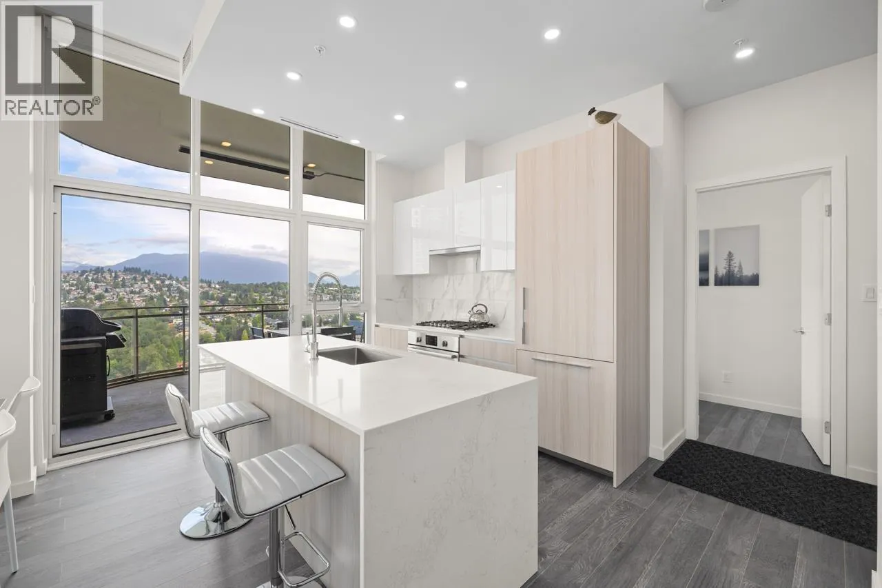 Stunning 2 Bed + Den, 2 Bath Sub-Penthouse in the heart of Brentwood! Bright corner unit with 10´5" ceilings, floor-to-ceiling windows, and panoramic NW city & mountain views. Chef´s kitchen with gas stove & high-end appliances. Luxurious primary bathroom with soaker tub & glass shower. Comfort year-round with heat pump heating & A/C. 2 balconies totally 375 square feet, access from primary bedroom, kitchen and the living room. Includes 2 EV parking stalls & storage locker. Resort-style amenities: outdoor pool, hot tub, full gym. Steps to transit, Amazing Brentwood, and quick access to Hwy 1. Urban living at its finest! (id:27476)