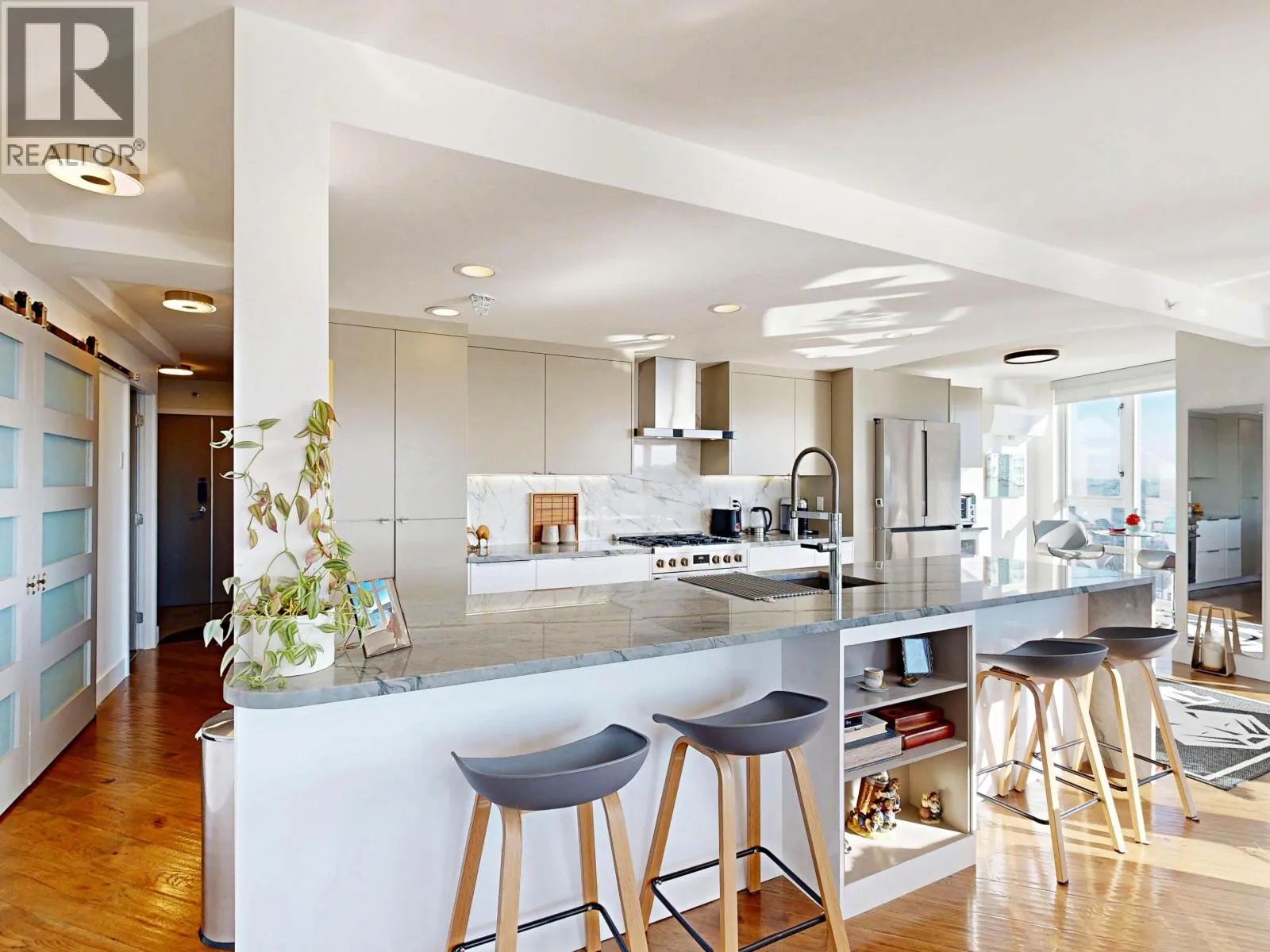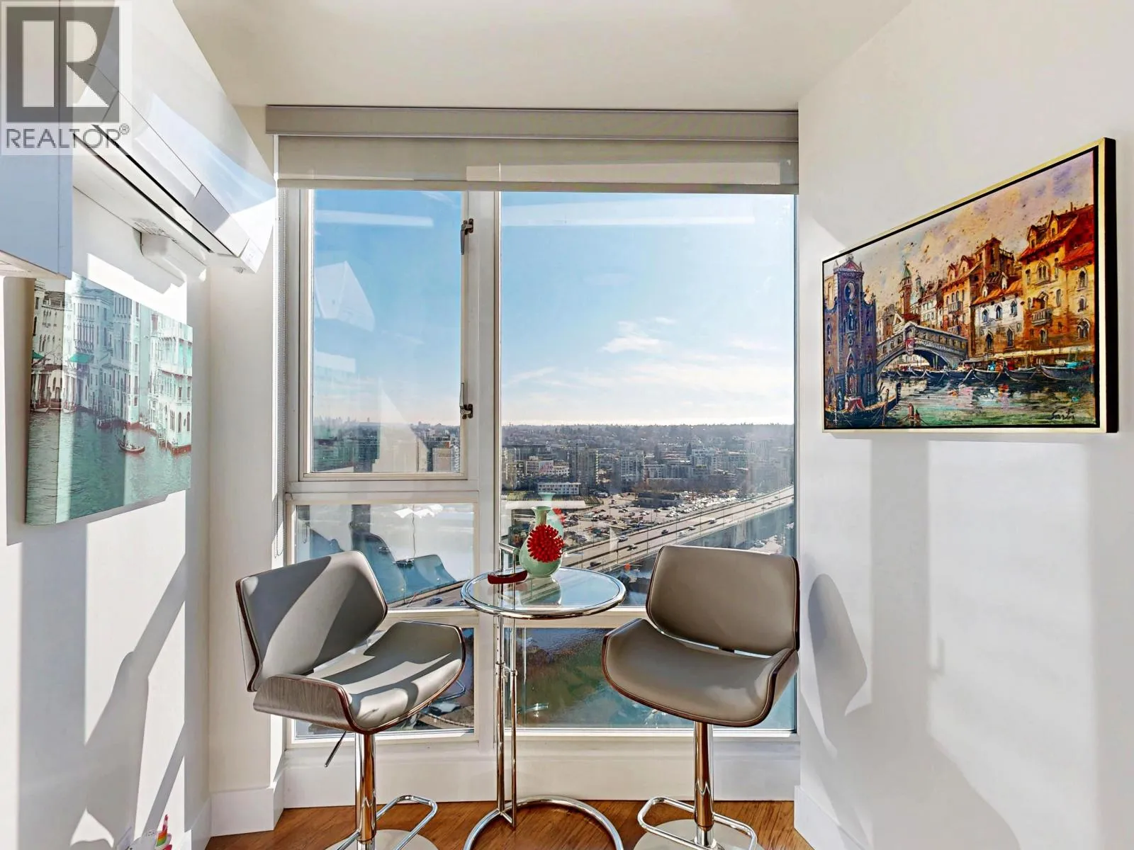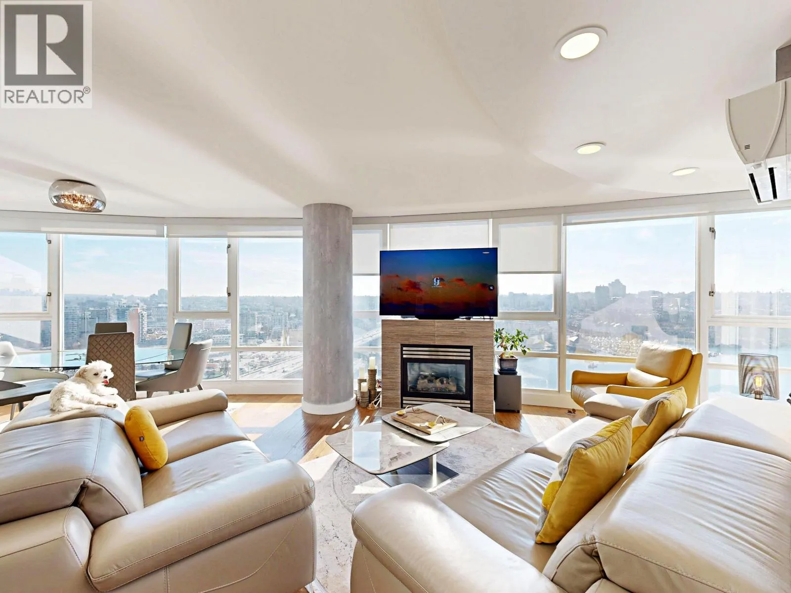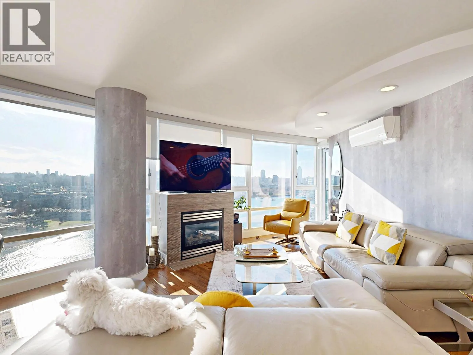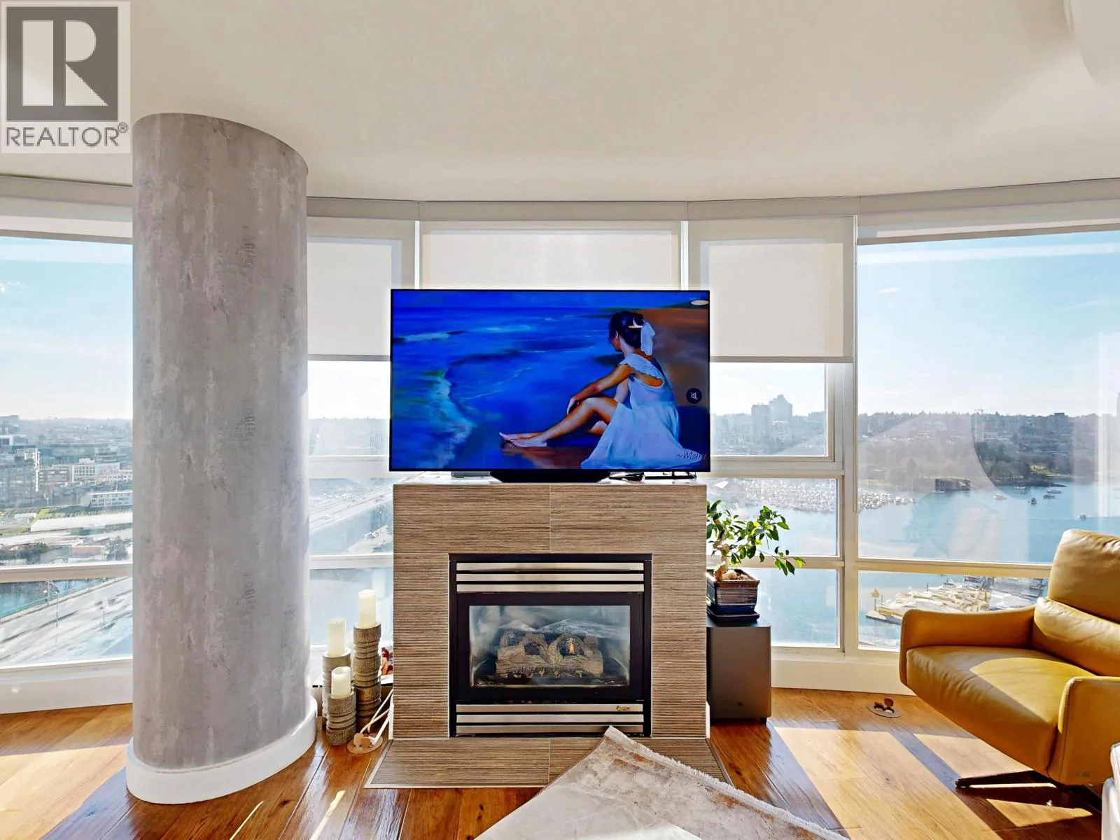 Marinaside Crescent is an address to be proud of. This executive unit is one of the few in the building to feature a gas fireplace and a double entry door. The stunning home showcases high-end renovations, a modern aesthetic, and an abundance of natural light throughout. Enjoy breathtaking 270-degree views spanning from the primary bedroom through the living and dining areas and curving toward the second bedroom. Additional upgrades include Mitsubishi air conditioning, a heat pump, blackout blinds in the bedroom, and sunscreen blinds in the living room. Quaywest Resort offers an excellent concierge team and resort-style amenities, including a fully equipped gym, pool, spa, party room, meeting and board rooms, and a theatre. Luxury waterfront living awaits!Open House, Sat & Sun 2pm-4pm. (id:27476)