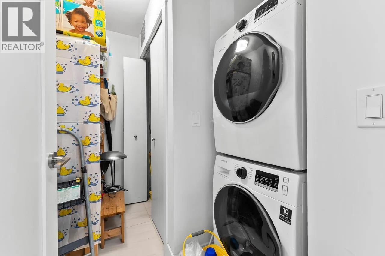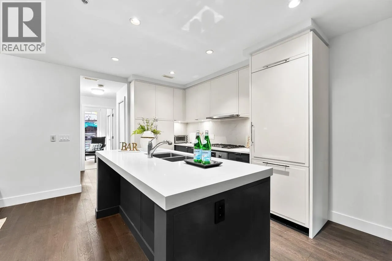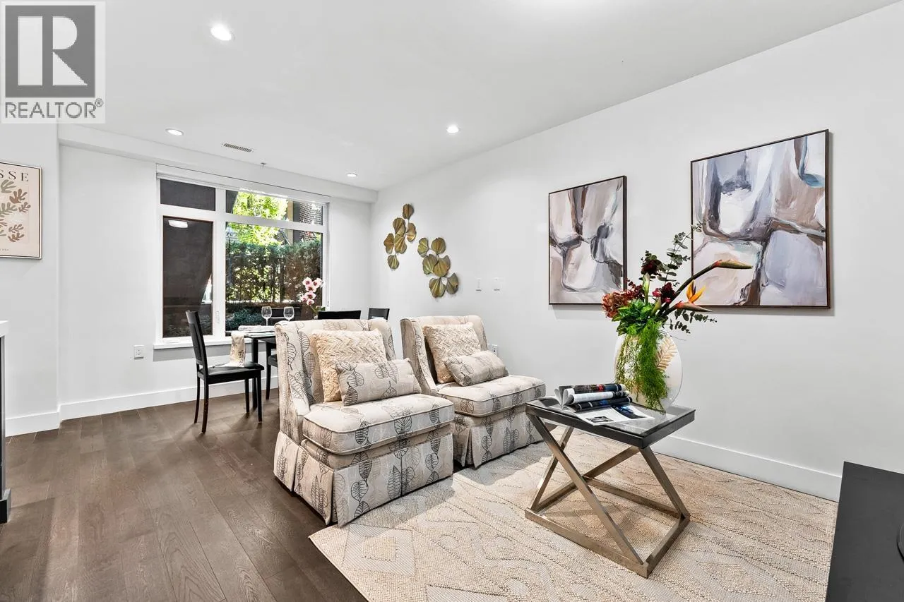 Welcome to Perron, a boutique collection of modern homes on Yukon Street and West 59th Avenue. This bright 1-bedroom corner suite offers an exceptional open layout with full-size Bosch appliances, elegant finishes, and a private landscaped patio with its own entry. Enjoy the perfect balance of nature and city living-steps from Winona Park, close to top Westside schools, SkyTrain, shopping, dining, and recreation. A rare opportunity to own a spacious, well-designed home in one of Vancouver's most desirable neighbourhoods. Please come for your private viewing. (id:27476)