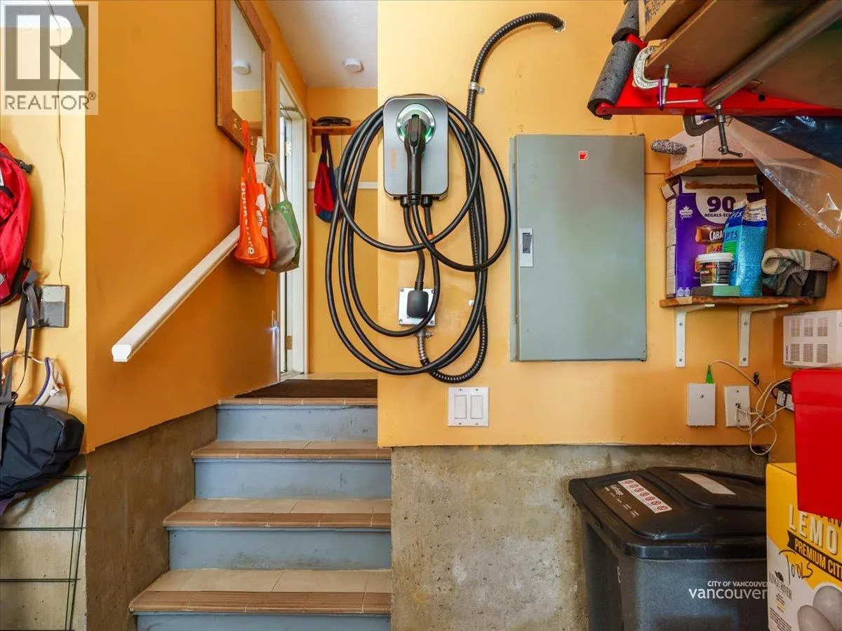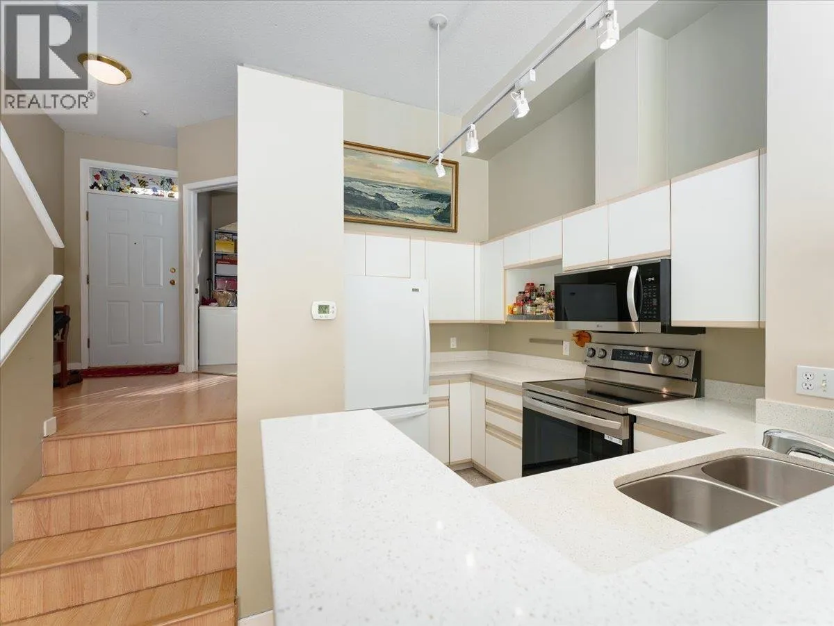 SPACE TO GROW! If you´re feeling a little tight for space this 3 bedroom 2.5-bathroom townhome offers room for the growing family. The floor plan is unique and BRIGHT with its 11 ft. clerestory ceilings in the living room, dining area and kitchen and a bedroom on the main level with a custom-built murphy bed and 2-piece bathroom. The upper floor offers a very large primary bedroom with his/her closets and 3-piece ensuite bath. The 3rd bedroom is spacious as well and is serviced by a full 4 piece renovated bathroom. Have an EV car? There is a level 2 charger in the garage and loads of storage in the crawl space. Minutes´ walk to transit and parks and an easy drive to great shopping. (id:27476)
