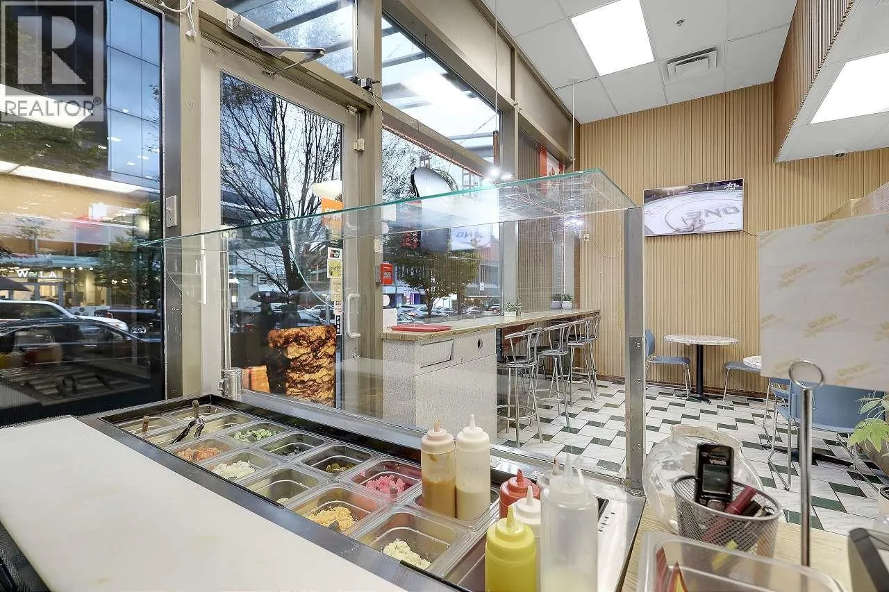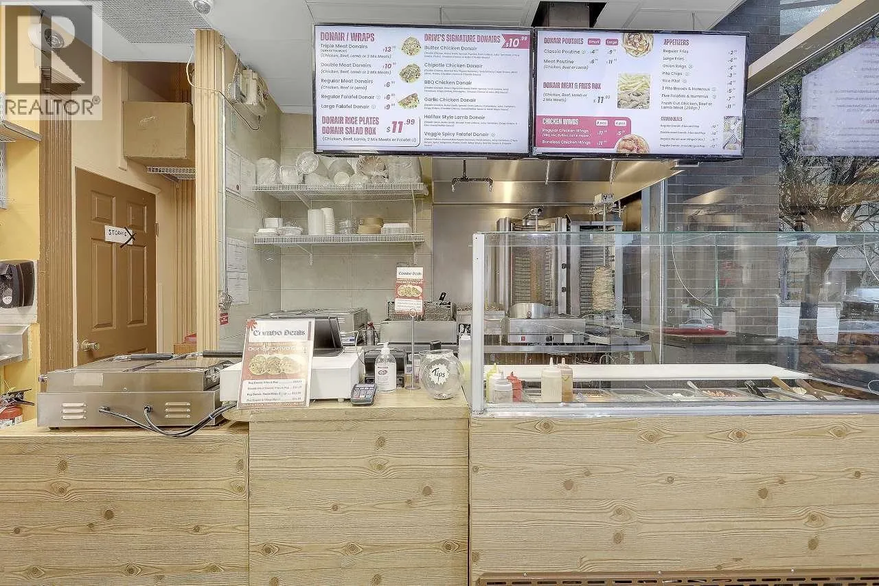 DONAIR DRIVE is located on Nelson St. next to sought out high traffic Granville St Entertainment District !! 10 year term lease with no demo. Profitable Donair/ Shawarma restaurant in the heart of downtown Vancouver. This Mediterranean restaurant is A Great family business with steady cash flow, with exceptional Google reviews. Price includes all equipment. Training available, Showing by appointment only. Please contact the listing realtor for info and showing. (id:27476)