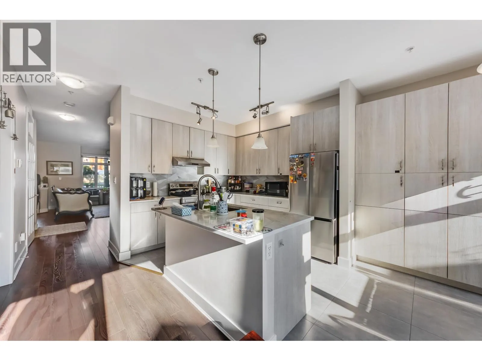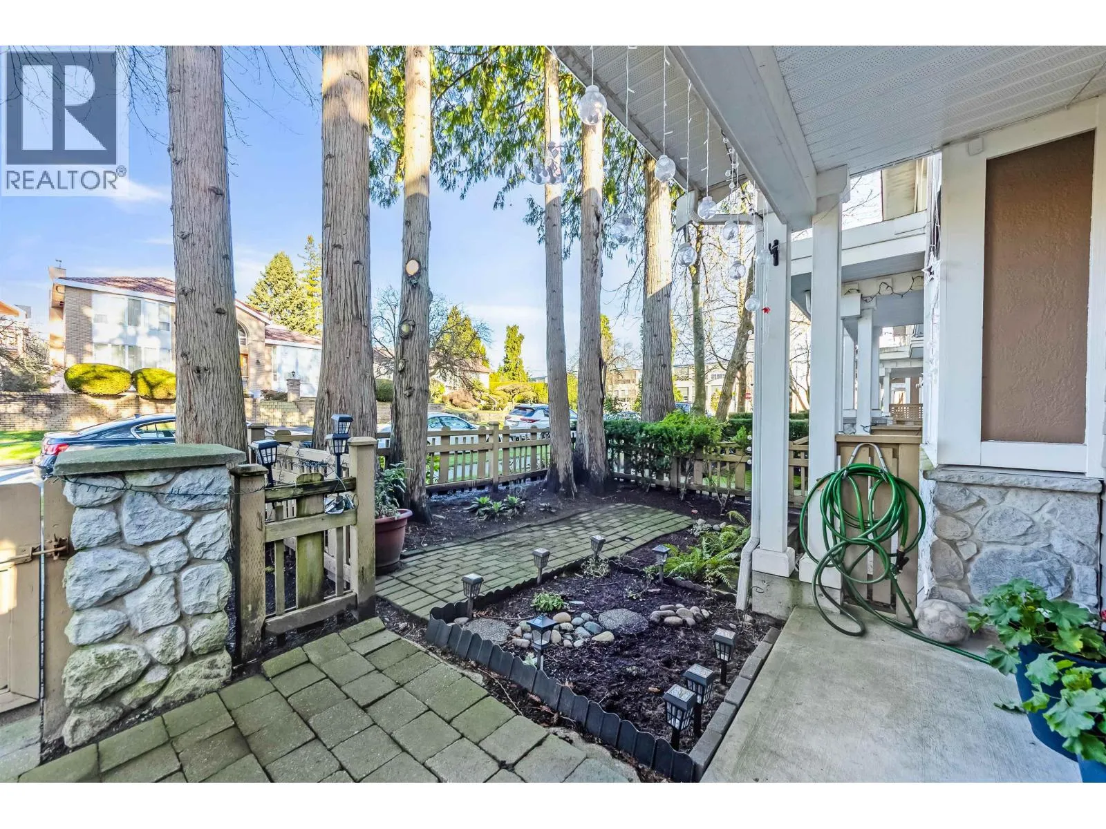 Welcome to Churchill Gardens by Polygon. Set in a quiet, park-like community next to Oak Park, Marpole Oakridge Community Centre and Sir Wilfrid Laurier Elementary and one of the best IB school Sir Winston Churchill Secondary School. Orignal owner home. This bright end unit offers south exposure and windows on three sides. Street-level main floor entry gives a true single-family home feel. Spacious 2303 sqft with room for the whole family. Main level features over-height ceilings, updated kitchen (2022), and powder room. Upstairs includes a huge primary suite with walk in Closet, plus 2 additional bedrooms sharing 1 bath. Lower level offers an oversized double garage, a 4th bedroom with its own bath & more. Den has a window and easy to make a 5th bedroom. Rare opportunity, must see! (id:27476)