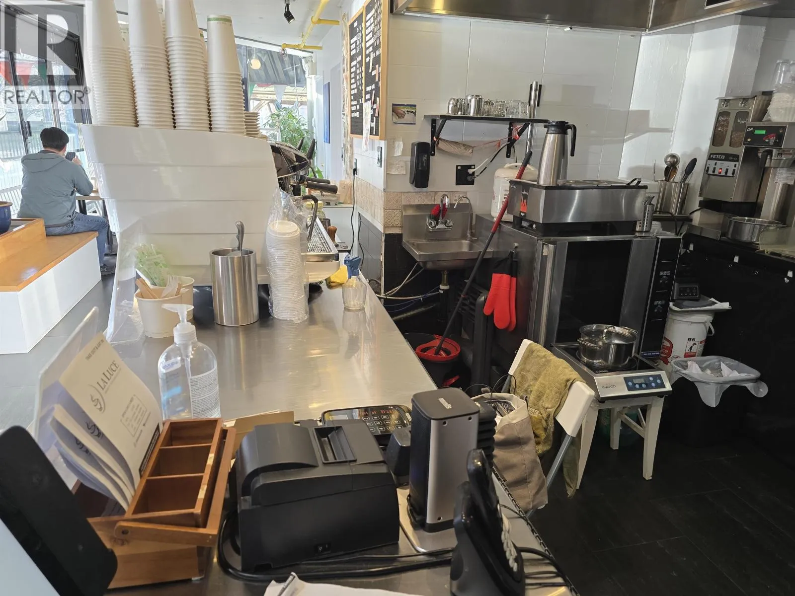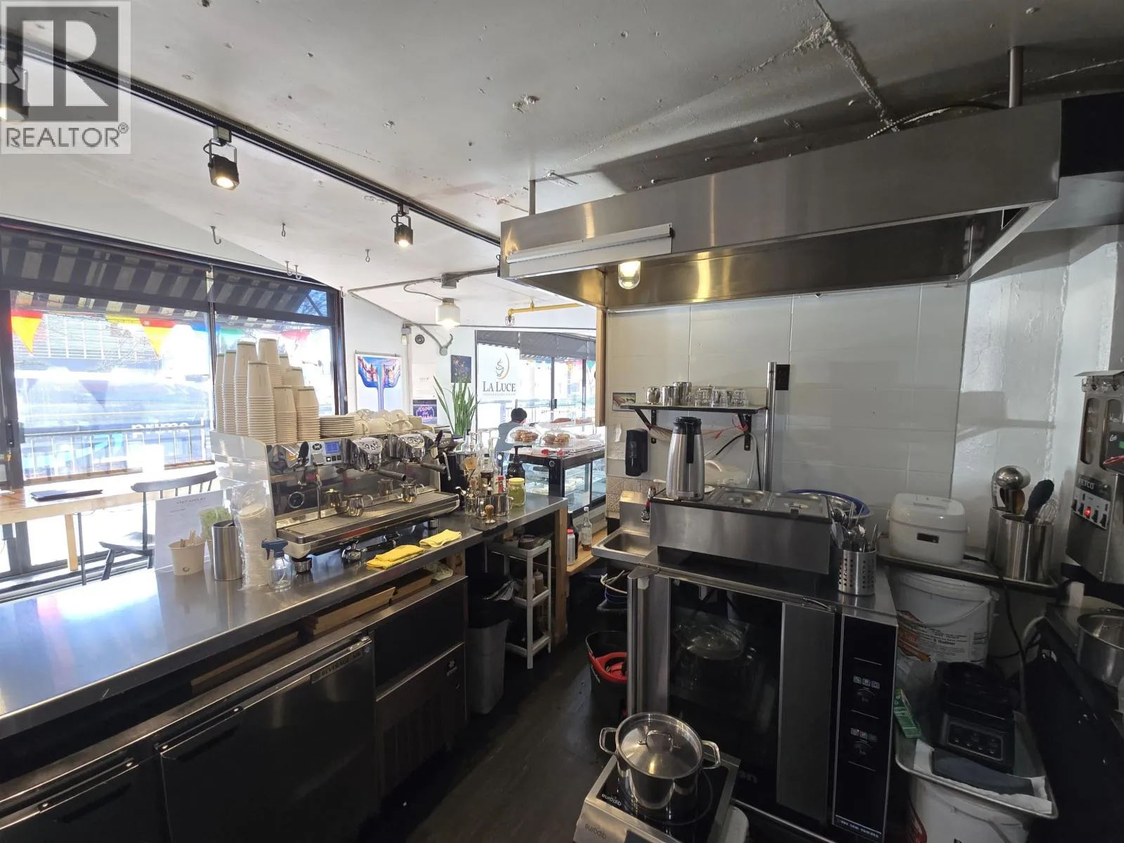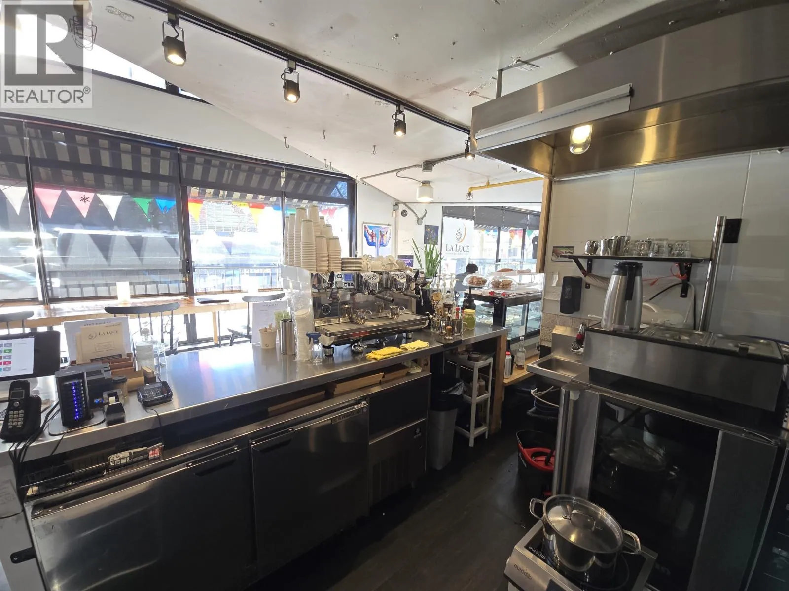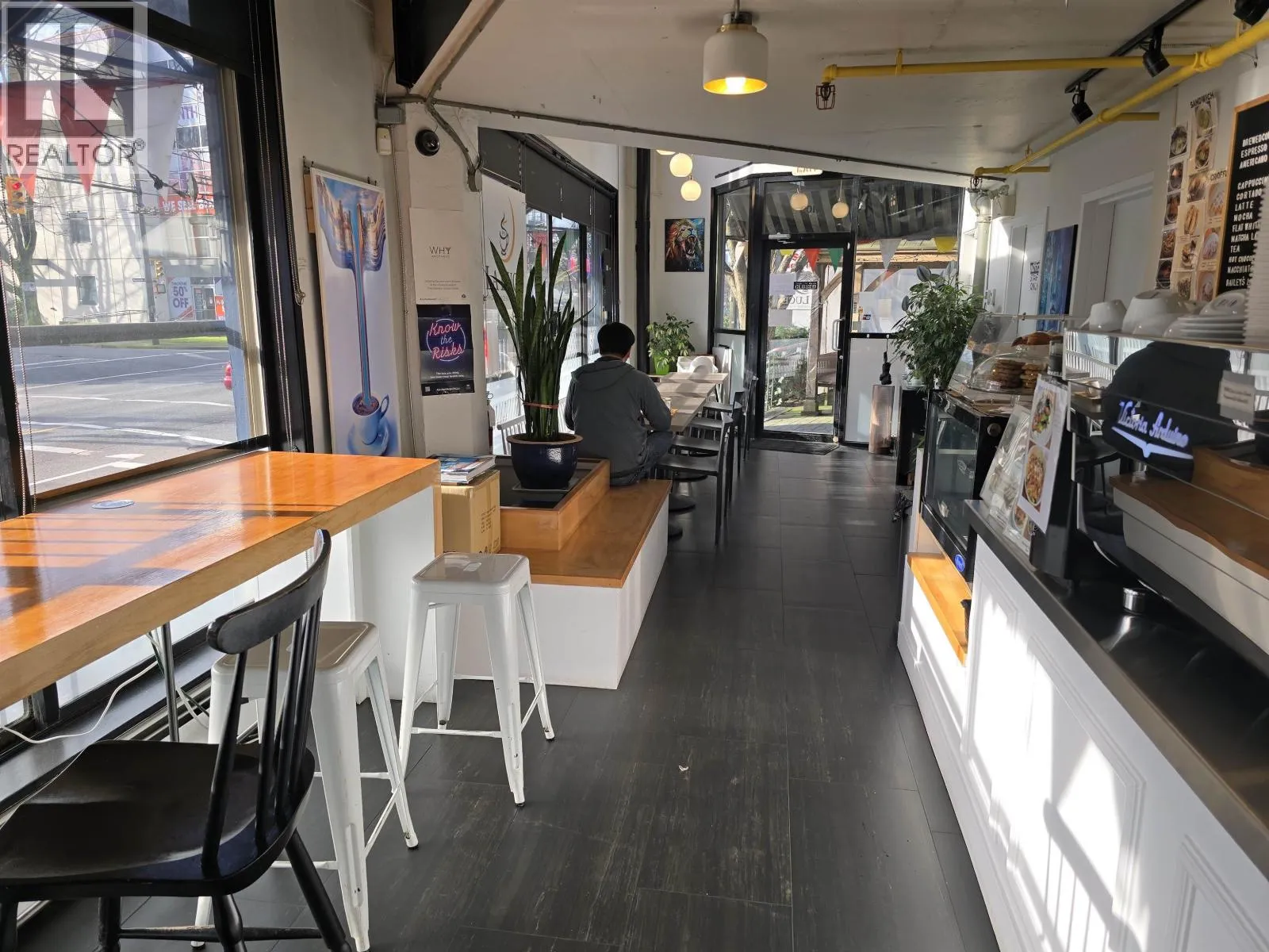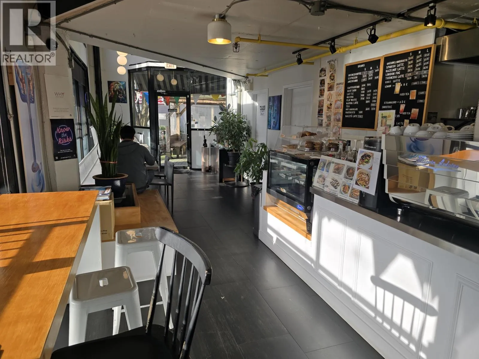 Café located at 1701 Powell Street in Vancouver's vibrant Hastings-Sunrise / East Village district, benefiting from strong local traffic. Modern two-level interior with abundant natural light, comfortable seating, and an inviting patio area ideal for seasonal service. Business includes Liquor License (excellent summer festival season sales), newly installed Type 2 commercial exhaust hood, two (2) free designated parking stalls, and No Demolition Clause providing long-term stability. Turn-key opportunity perfect for owner-operators or investors seeking a well-positioned café with strong neighborhood presence and growth potential. Unbelievably Low Rent: Just $1,405 + GST (Yes, Really!) Includes Property Tax, Maintenance, Building Insurance, Water, Garbage, Heating & A/C (id:27476)