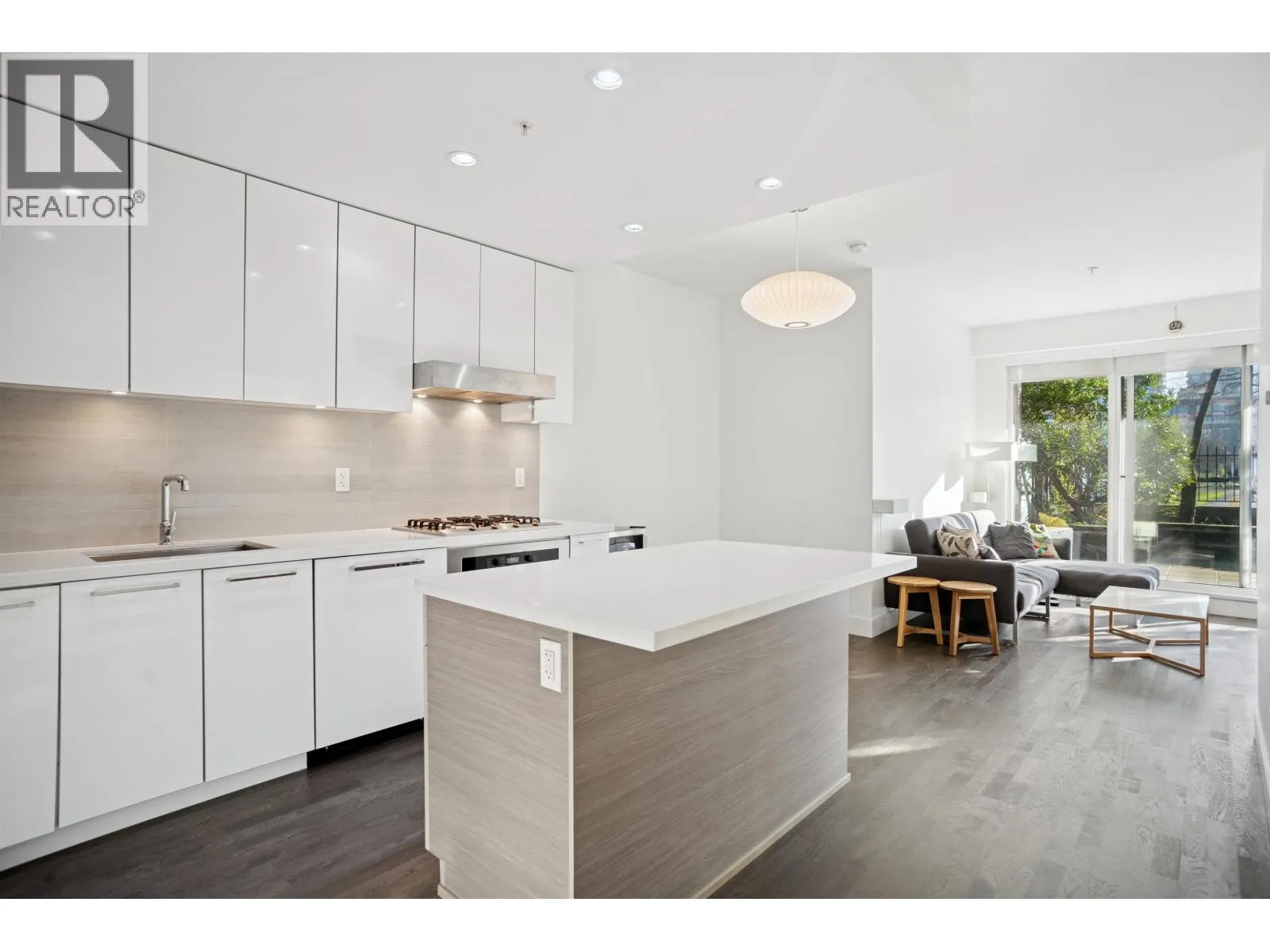 Rarely available PATIO unit in "Radius!" Built by award-winning developer LedMac, this beautiful boutique residence 1 bed + den home offers a private, BRIGHT south-facing EXTRA LARGE 257sf partially covered patio surrounded by lush landscaping and greenery. Features include hardwood flooring throughout the main living area, a large den ideal for a home office or in-suite storage, custom closet built-ins, and a gourmet kitchen with Miele stainless steel appliances, gloss white cabinetry, and a spacious island. Comes with 1 EV parking stall, 1 storage locker and 1 bike locker. Centrally located in the desirable Fairview neighbourhood, with West 4th Avenue´s vibrant shops and restaurants right outside your door, and just a short walk to Granville Island, Kitsilano, and the Seawall. **OPEN HOUSE FEB 15 SUNDAY 2:00-4:00PM** (id:27476)
