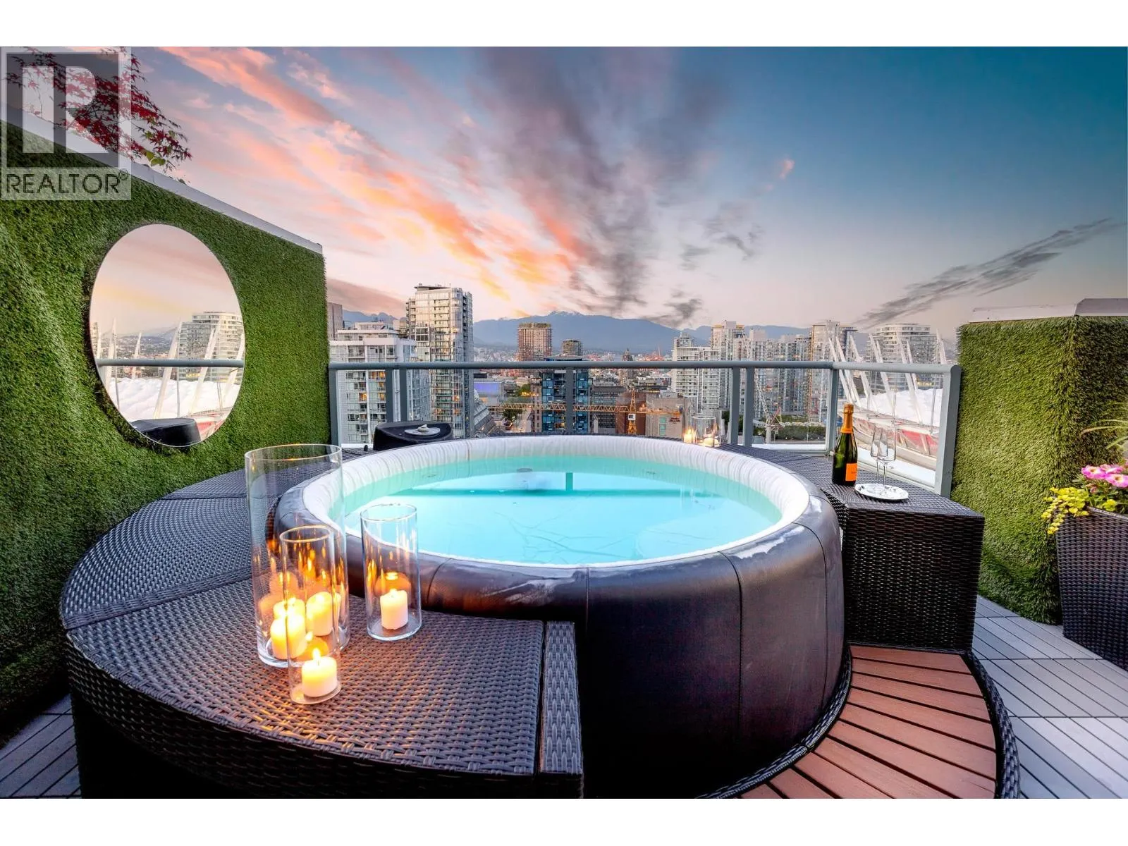 A truly rare offering, this stunning 2-level Penthouse occupies half of the entire 30th floor & boasts over 1000 sq/ft of panoramic wrap-around patios with breathtaking ocean, city & mountain views. With more than 2000 sq/ft of fully renovated luxury interior, this residence is designed for elevated living. Step into a bright, open-concept floor plan featuring soaring 16-ft ceilings, expansive floor-to-ceiling windows, & sprawling art gallery-style wall space ideal for collectors. The custom chef's kitchen is equipped with top-of-the-line appliances & flows seamlessly to the indoor-outdoor serving bar & private hot tub patio-perfect for summer gatherings. Located in the vibrant Yaletown District, just steps from world-class dinning, all level of amenities the Seawall & Granville Island. (id:27476)