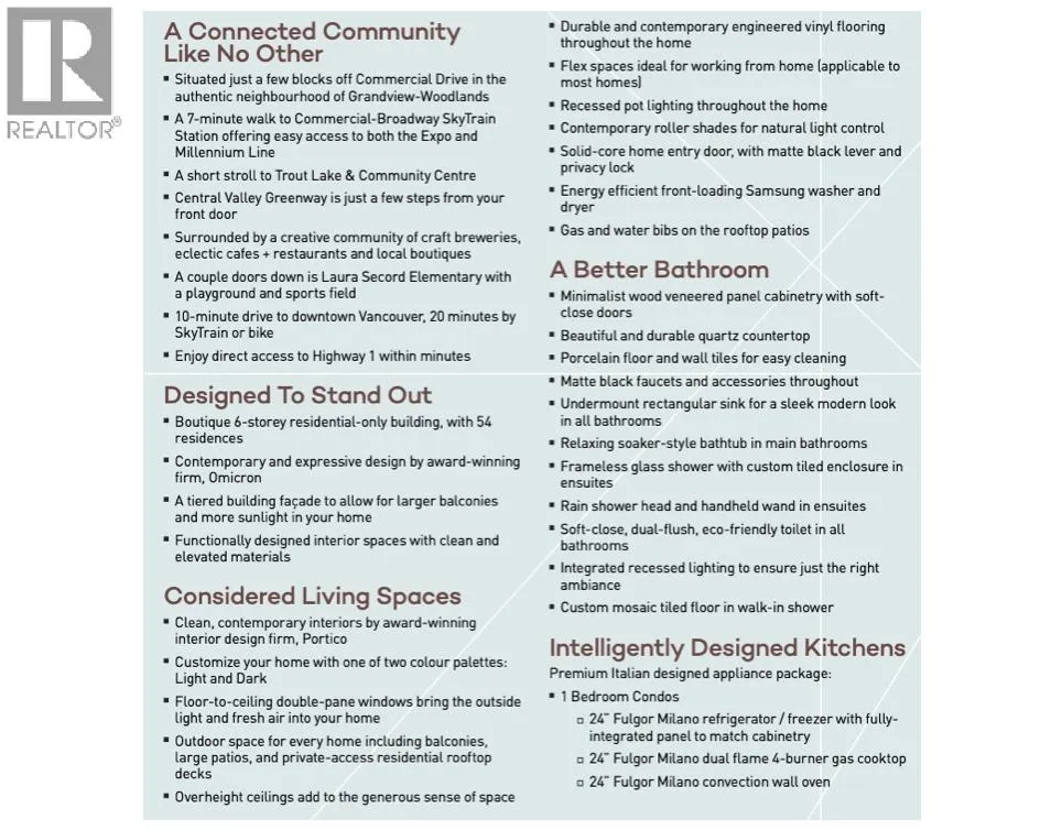Brand new 2 bedroom+ den penthouse at LINX, with an exceptional 595 sq. ft. rooftop patio. Great location that combines the vibrant East Van lifestyle with access to the world class North Shore mountains in one direction, and Downtown Vancouver in the other. High ceilings & expansive windows. Scandinavian style kitchen with high end appliances (Milano, Blomberg, Blanco). Spa-like bathroom with soaker tub. Tucked away from street noise yet steps to cafes, breweries, parks, and the SkyTrain. Pet friendly. 1 parking stall & 2 bike lockers. Amenities: Co-working lounge, play area & garden. Built by reputable Omicron Developments. Enjoy the peace-of-mind that comes with a brand new building (warranties, green building standards). Simply put, units like this don't come along often. Easy to show. (id:27476)