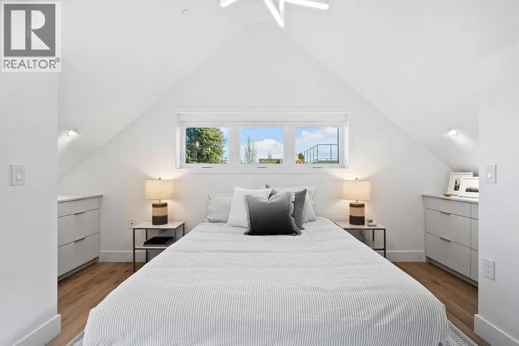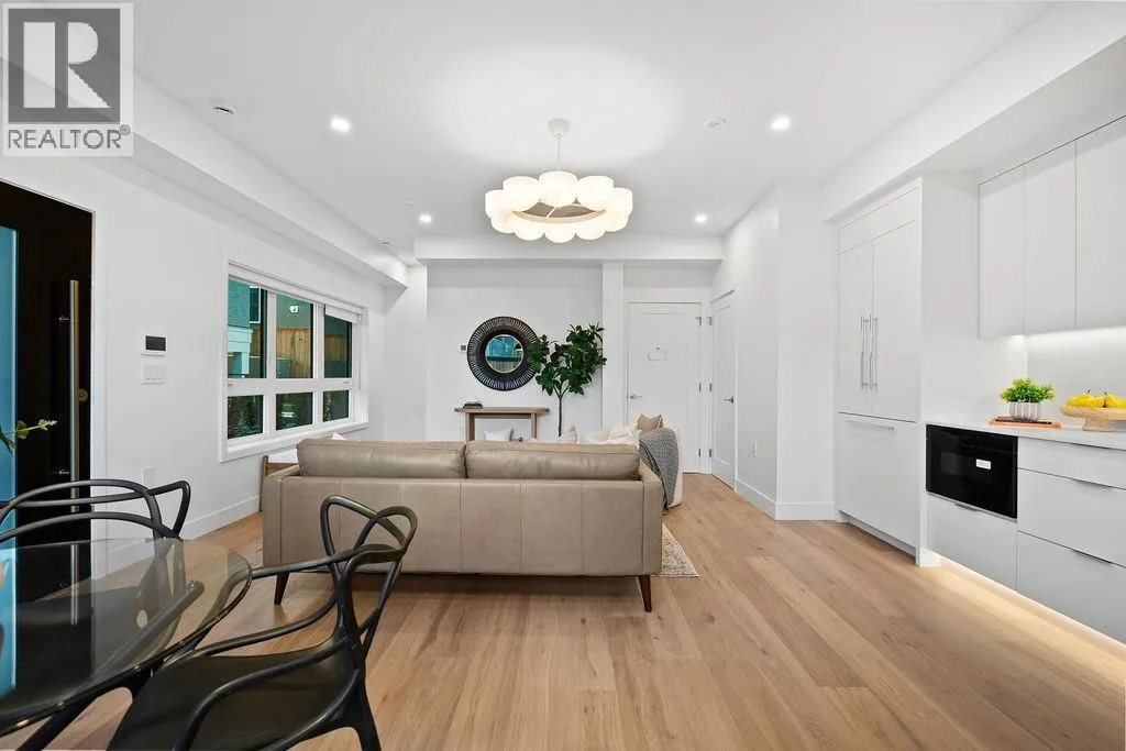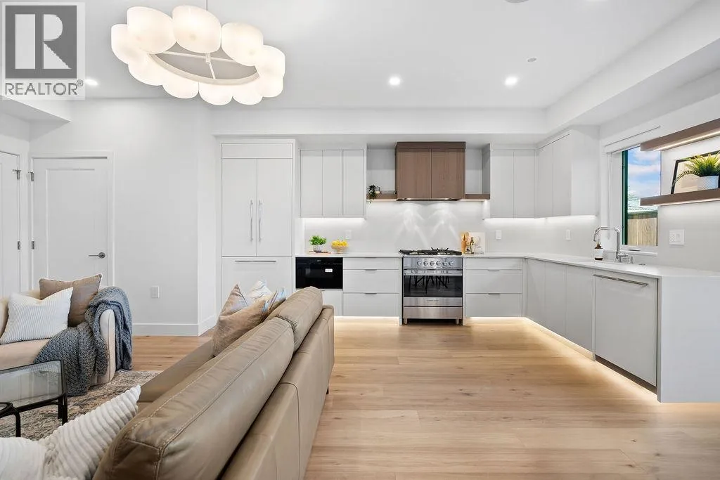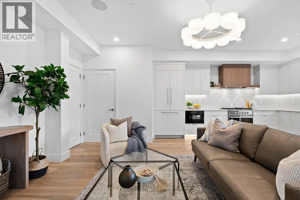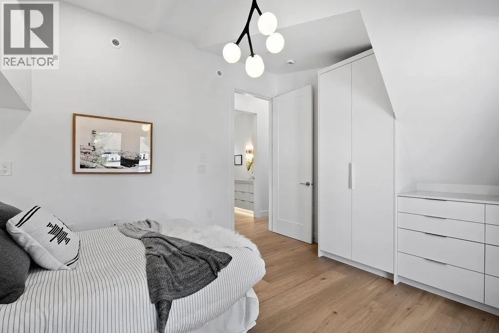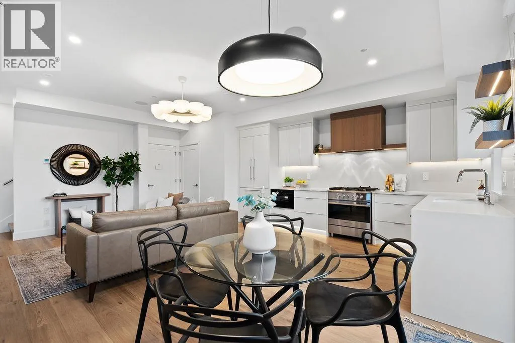 An exceptional 2-bedroom back residence offering over 1,000 square ft of refined living across two thoughtfully designed levels in prestigious Shaughnessy. Curated by Mullo Interiors, this home showcases elevated finishes throughout, including custom millwork, quartz countertops, wide-plank hardwood flooring & premium Fisher & Paykel appliances. The main level features a bright, open-concept living and kitchen space that flows seamlessly to a private patio-perfect for entertaining. Upstairs, retreat to the tranquil bedroom level, complete with balcony, spa-inspired bathroom, and generous built-in storage. Air conditioning ensures year-round comfort, while the 2-5-10 New Home Warranty provides added peace of mind. Built with exceptional quality and attention to detail by the renowned Four Corners Homes, this beautifully finished residence is ready to welcome you home. (id:27476)