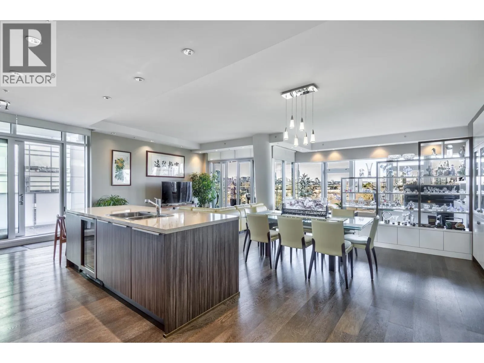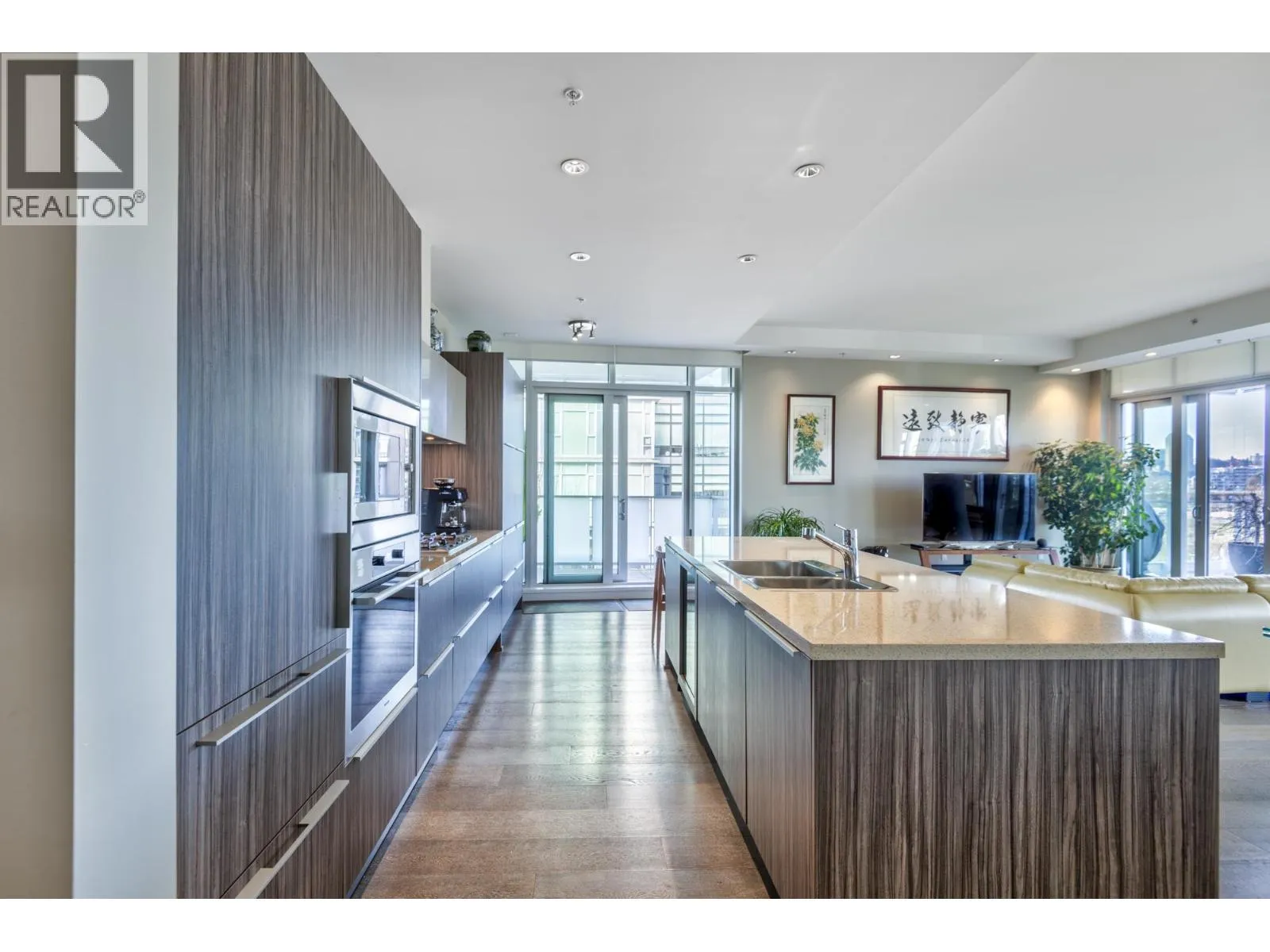Experience refined waterfront living at the prestigious Canada House in Olympic Village. This exceptional residence showcases unobstructed views of False Creek, the city skyline, and mountains beyond. Spanning 2153 sqft, the home features over-height ceilings, hardwood floors, air conditioning, custom cabinetry, and motorized blinds. The designer kitchen is equipped with Sub-Zero refrigeration, a Miele gas range, wall oven, dishwasher, wine fridge, and a dedicated laundry room with sink provides ample storage options. Included are a private two-car garage and external storage locker. Enjoy concierge service, gym, meeting rooms, and full access to Olympic Village amenities-pool, hot tub, and fitness centre. Steps to the seawall, dining, shopping, and transit. Showings by appointment. (id:27476)