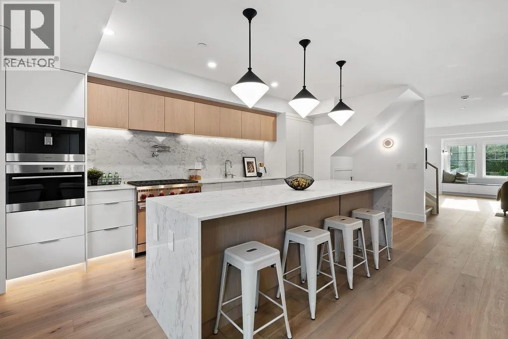 Set in prestigious Shaughnessy, this stunning 4-bedroom townhome offers an exceptional blend of style, comfort, and functionality. Beautifully curated by Mullo Interiors and thoughtfully designed across two spacious levels, the light-filled open-concept main floor showcases wide-plank hardwood floors, over height ceilings, custom millwork, and built-in bench seating. The chef´s kitchen impresses with quartz countertops, a large island, premium Wolf appliances, and a built-in coffee maker for daily indulgence. Seamlessly connected living and dining areas are ideal for everyday living and entertaining. Upstairs, the serene primary retreat includes a spa-inspired ensuite, plus three additional bedrooms. Enjoy year-round comfort with air conditioning, a private fenced yard and patio & the convenience of a private one-car garage. Built with exceptional quality and attention to detail, this beautifully finished residence is ready to welcome you. (id:27476)