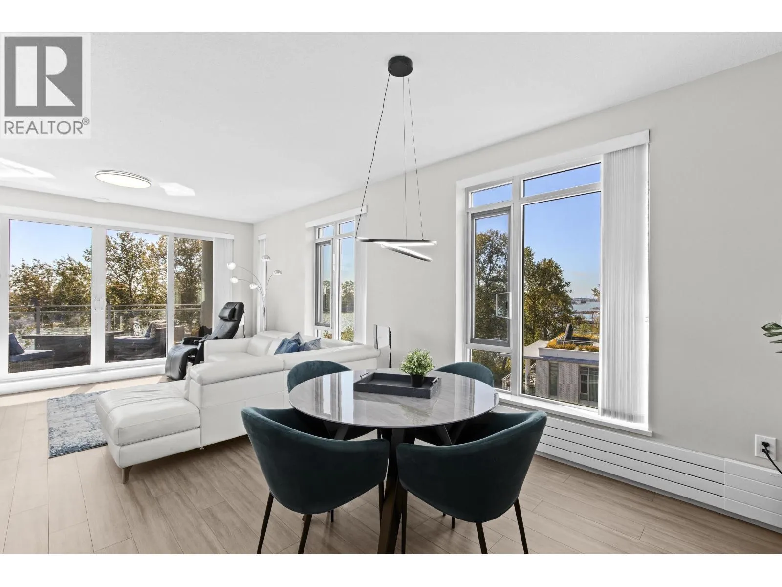 Indulge in breathtaking 180° water views from this pristine corner home, with a perfect vantage to revel in the outlook of the Fraser River from every room. Spanning a generous 1,138 sqft, discover 2 bedrooms, 2 full baths, & a dedicated office. Relish in the chef-inspired kitchen showcasing a gas stove, high-end Bosch appliances, & a vast island - perfect for entertaining. The primary suite promises relaxation with its walk-in closet & resort-style ensuite. Admire the architectural beauty of over-height ceilings & an open, airy design. Embrace outdoor living with a 200 sqft South-facing balcony. Enjoy unmatched conveniences: an exclusive storage room on your floor & 2 parking spaces (1 EV). Walk the waterfront trails & enjoy the nearby shops & restaurants. Open House - Saturday, Feb 14th 2:30-4 (id:27476)