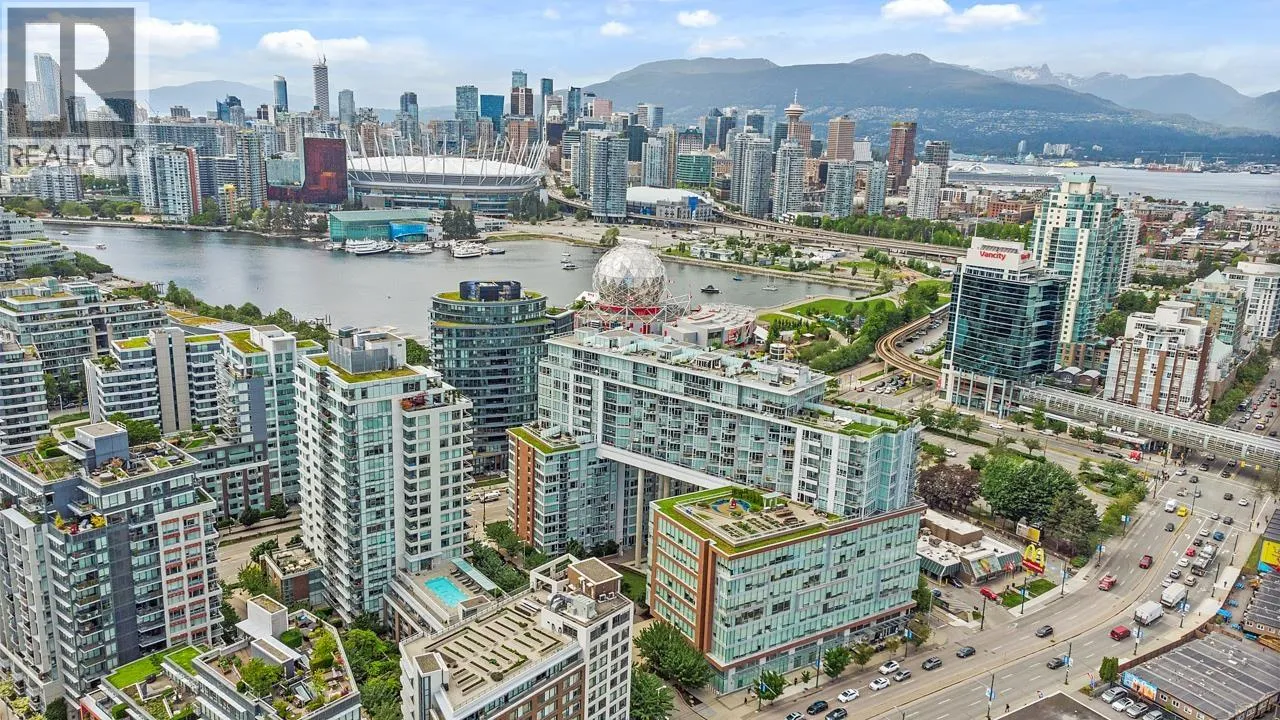 This 1 BED + DEN in the CENTRAL by Onni has it all! AIR CONDITIONING, Gourmet Kitchen ft full-size S/S Jenn-Air appliances, GAS STOVE, quartz counters & breakfast bar. Floor to ceiling windows, spacious living & dining plus LARGE DEN perfect for nursery or home office. Enjoy the cityscape, Science World, & False Creek views from your COVERED BALCONY. PREMIUM AMENITIES inc 24hr CONCIERGE, FULLY EQUIPPED GYM, games room, MOVIE LOUNGE, dining lounge & ROOFTOP TERRACE feat BBQ, gardens & playground. Situated along the bike path, everything you need is at your doorstep. Walk to breweries, enjoy artisan cafes, gourmet restaurants, dog parks & the SEAWALL. Just 1 block from Science World SKYTRAIN STATION & a 4 minute ride to the Downtown core. Large storage locker & 1 parking included. Open House Sat, Feb 14th & Sun, Feb 15th 2-4PM | (id:27476)