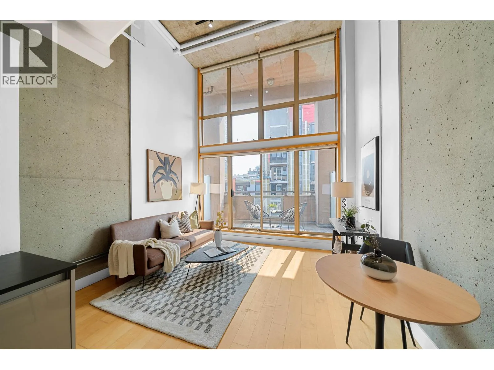 Experience iconic LIVE/WORK living at WSIX, an Arthur Erickson-designed concrete and copper landmark in Vancouver´s vibrant Westside. Steps from Granville Island, Kitsilano, South Granville, SkyTrain, and Greenway; this residence offers a lifestyle second to none, complete with Michelin-star dining and dog-friendly community. Soaring 16´ ceilings and south-facing windows fill the space with light, opening to a 100 sqft balcony. Industrial-chic design in the kitchen features AEG and Fisher & Paykel appliances. A floating staircase leads to a loft bedroom retreat complete with walk-in closet and in-suite laundry. Marble floors and a deep soaker tub define the spa-like bath. Flexible main-level space suits studio or office-an architectural statement of modern West Coast living. Open Houses - Sneak Peek on Thursday, February 12th, 6-7pm, as well as Saturday & Sunday, February 14 & 15, 2-4pm. (id:27476)