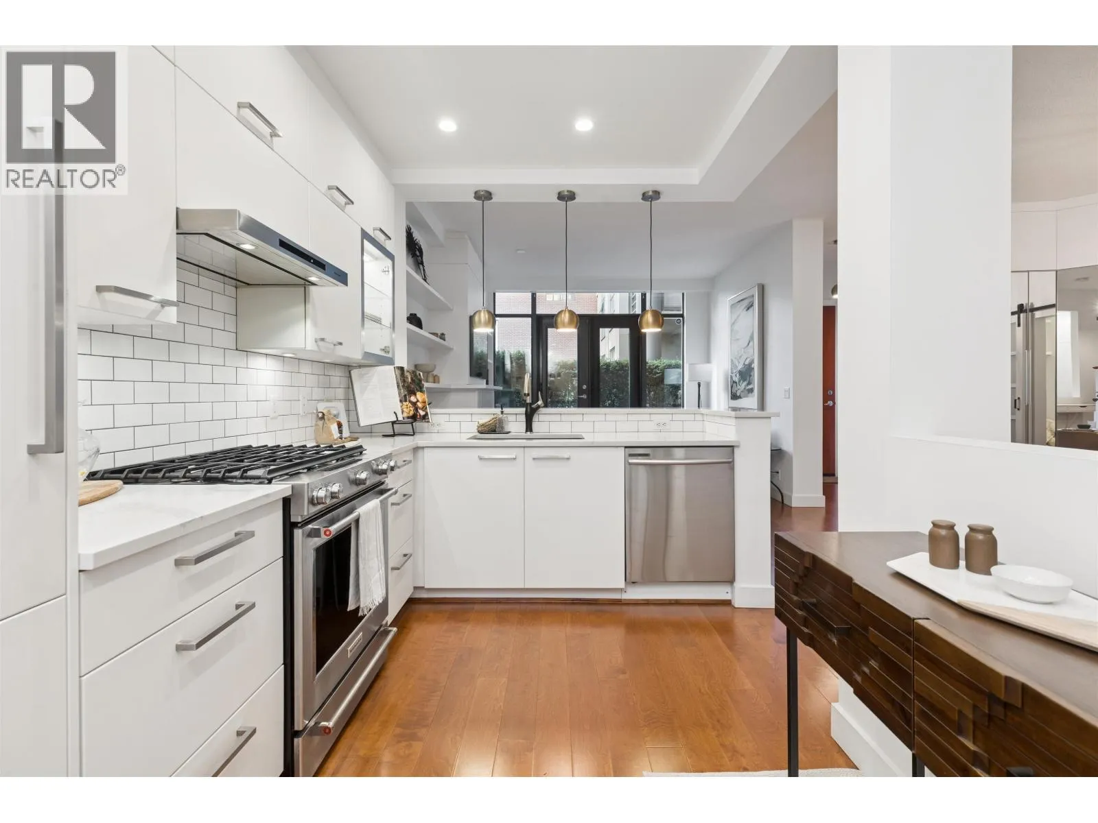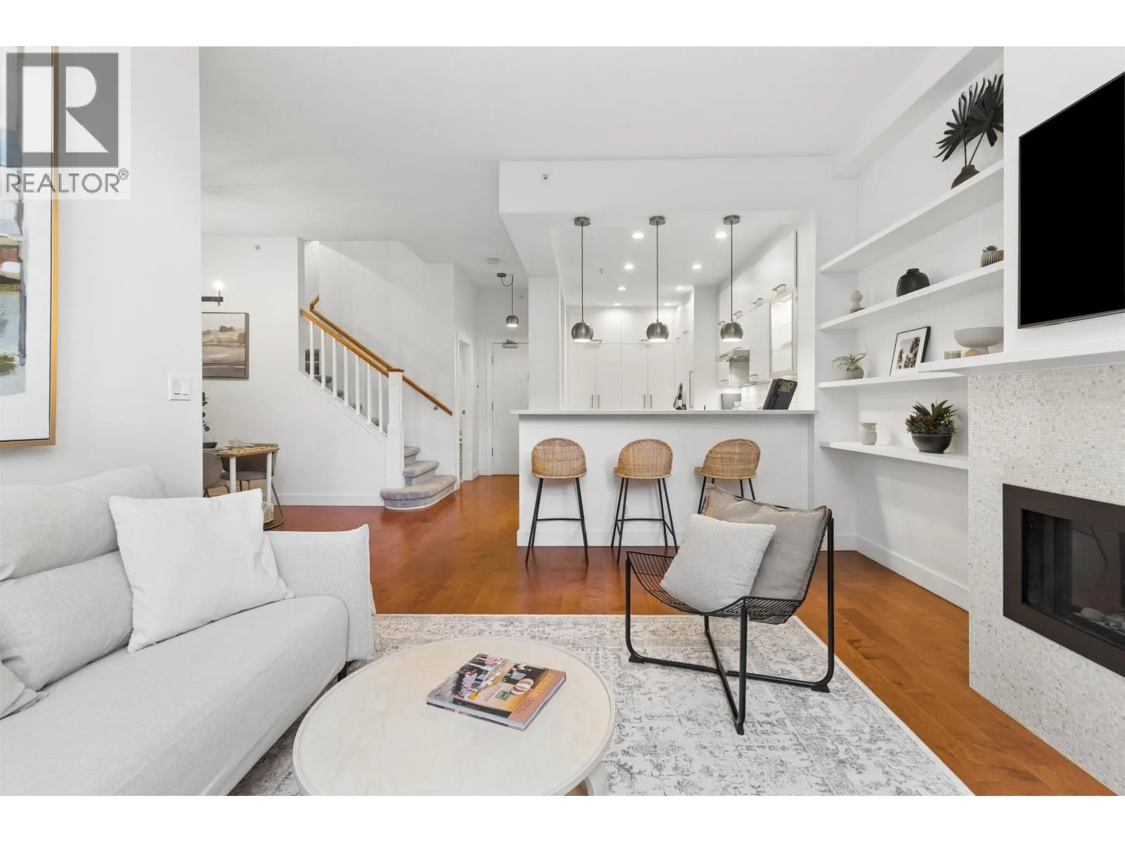 Located in the heart of Arbutus Walk, this Mozaiek townhome blends classic redbrick charm with modern design. The main level features an open layout with a redesigned kitchen, integrated appliances, quartz countertops, and gas cooking, plus a thoughtful office. Upstairs, the bright, well-proportioned bedrooms offer smart storage and a flexible bonus space-ideal for a home gym or additional WFH setup. Enjoy spa-inspired renovated baths with a steam shower, a private front patio entry, and access to a shared rooftop deck perfect for entertaining. Complete with two parking stalls, a storage locker, bike room, and workshop-just steps from parks, schools, cafés, and the best of Kitsilano living. PRK STL 21/22 STRG LRK 103. Open House Sat Feb 14 2-4PM and Sun Feb 15 2-4PM (id:27476)