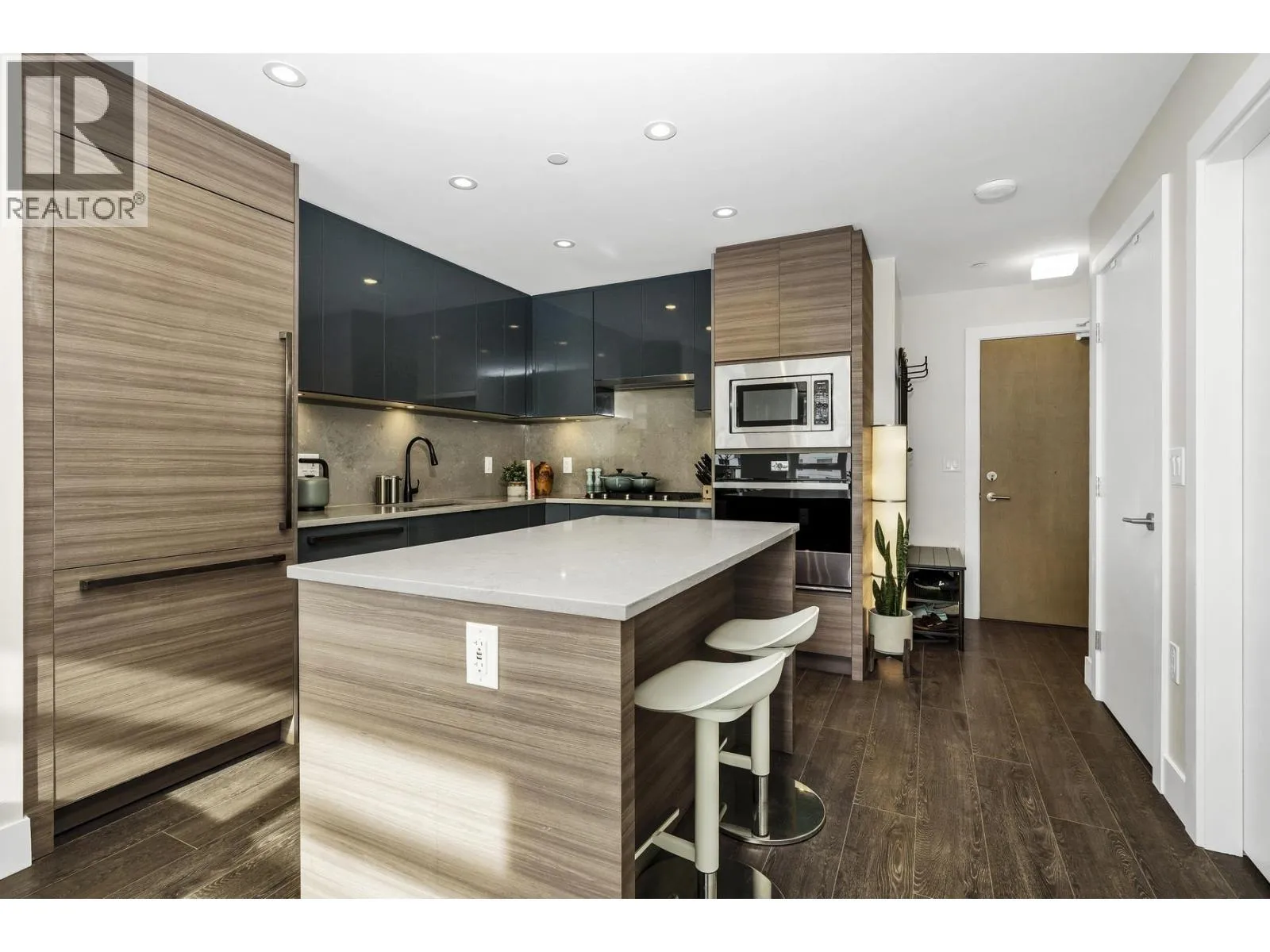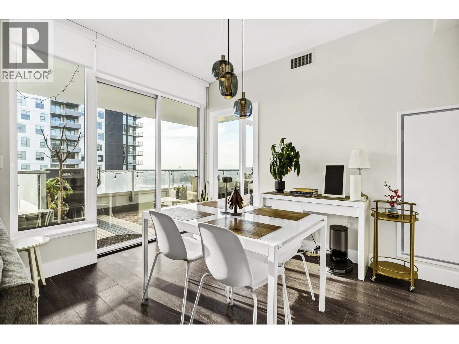 Ultra-convenient, this rare SOUTH facing 2B+DEN/2B residence at Mode, offers ultimate modern waterfront living. Perfectly positioned by serene river paths + everyday conveniences at your doorstep, this home provides a retreat with panoramic views + exceptional natural light. Featuring a functional layout with expansive LVNG, DNG + KITCH spaces that seamlessly extend to a massive covered balcony, for summer evenings + elevated entertaining. The kitchen boasts a large island, quartz countertops, s/s appliances + warm cabinetry. Enjoy resort-style lifestyle with 9,000 sqft of amenities, incl. concierge, workhub space, screening room, event lounge, fitness center, bike repair, dog wash and guest suites. One locker + BONUS TWO EV parking stalls. First owner, never rented, this unit is truly a GEM! (id:27476)