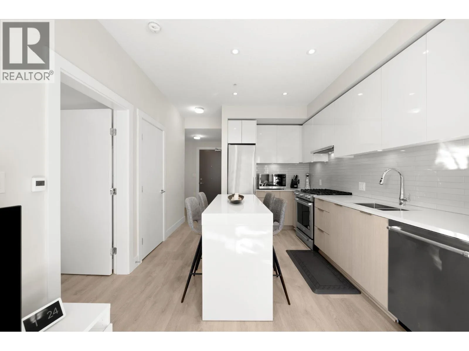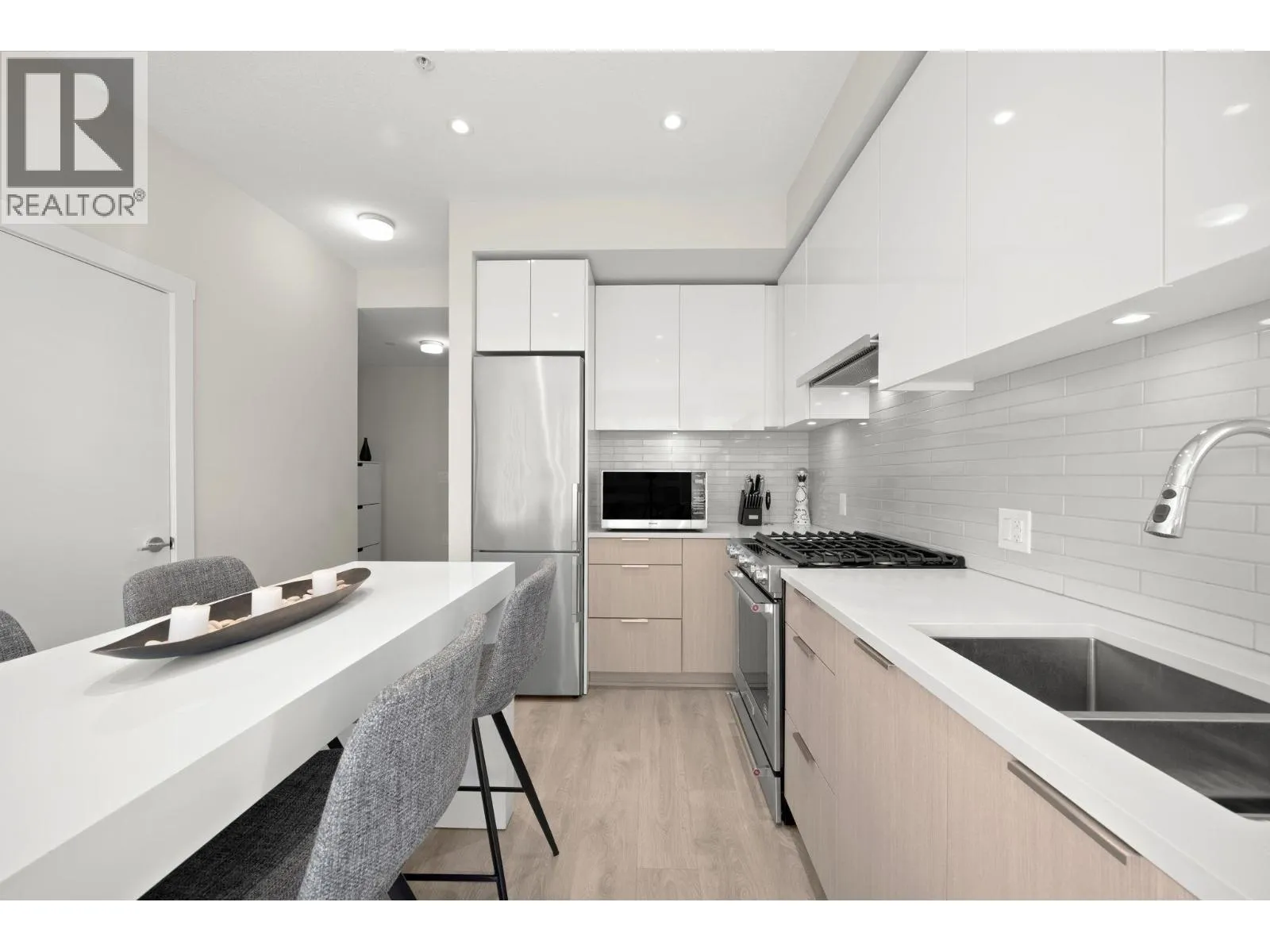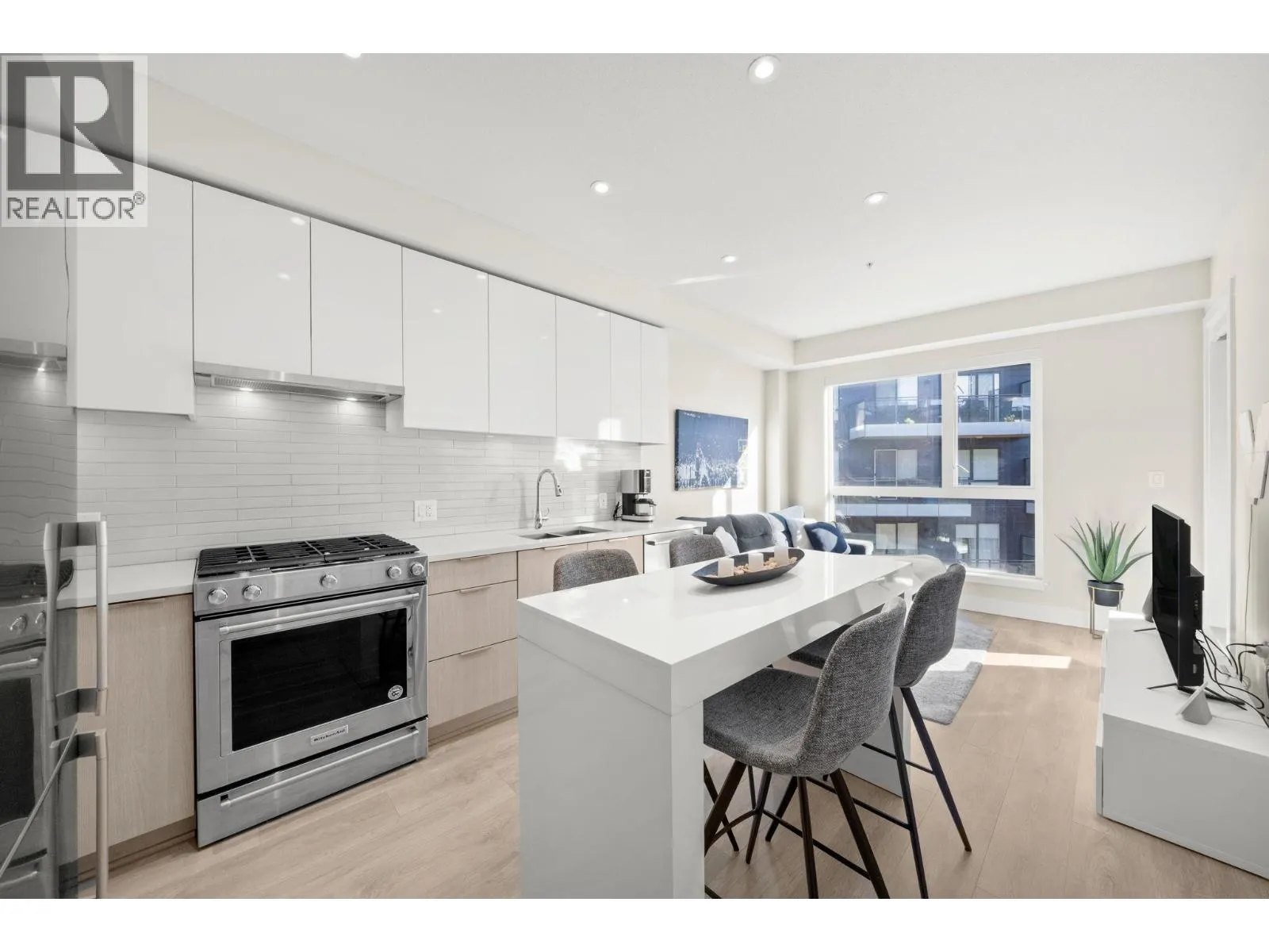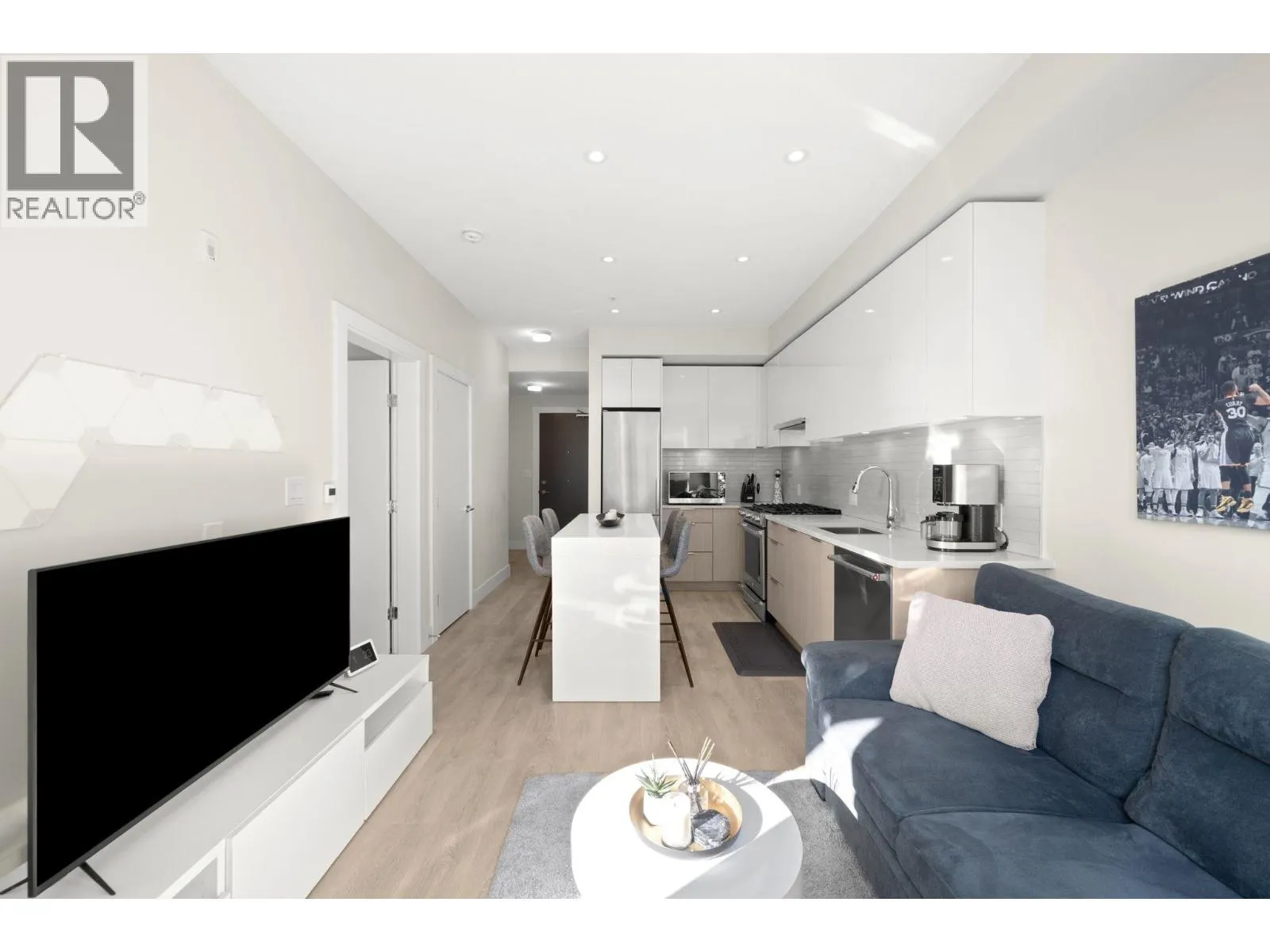Welcome to Unit 411 at 8508 Rivergrass Drive located in the heart of the vibrant River District community. This thoughtfully designed 1 bedroom + flex home offers a functional and spacious layout with a peaceful courtyard view. The open-concept kitchen features stainless steel appliances, quartz countertops, and under-cabinet lighting, flowing seamlessly into the living room area ideal for both everyday comfort and entertaining. The versatile flex room works beautifully as a home office or extra storage. The bathroom is finished with a luxurious soaker tub and in-floor heating for year-round comfort. Enjoy unparalleled convenience with direct access to waterfront walking and hiking trails, and just steps to grocery, pharmacy, banks and restaurants. (id:27476)