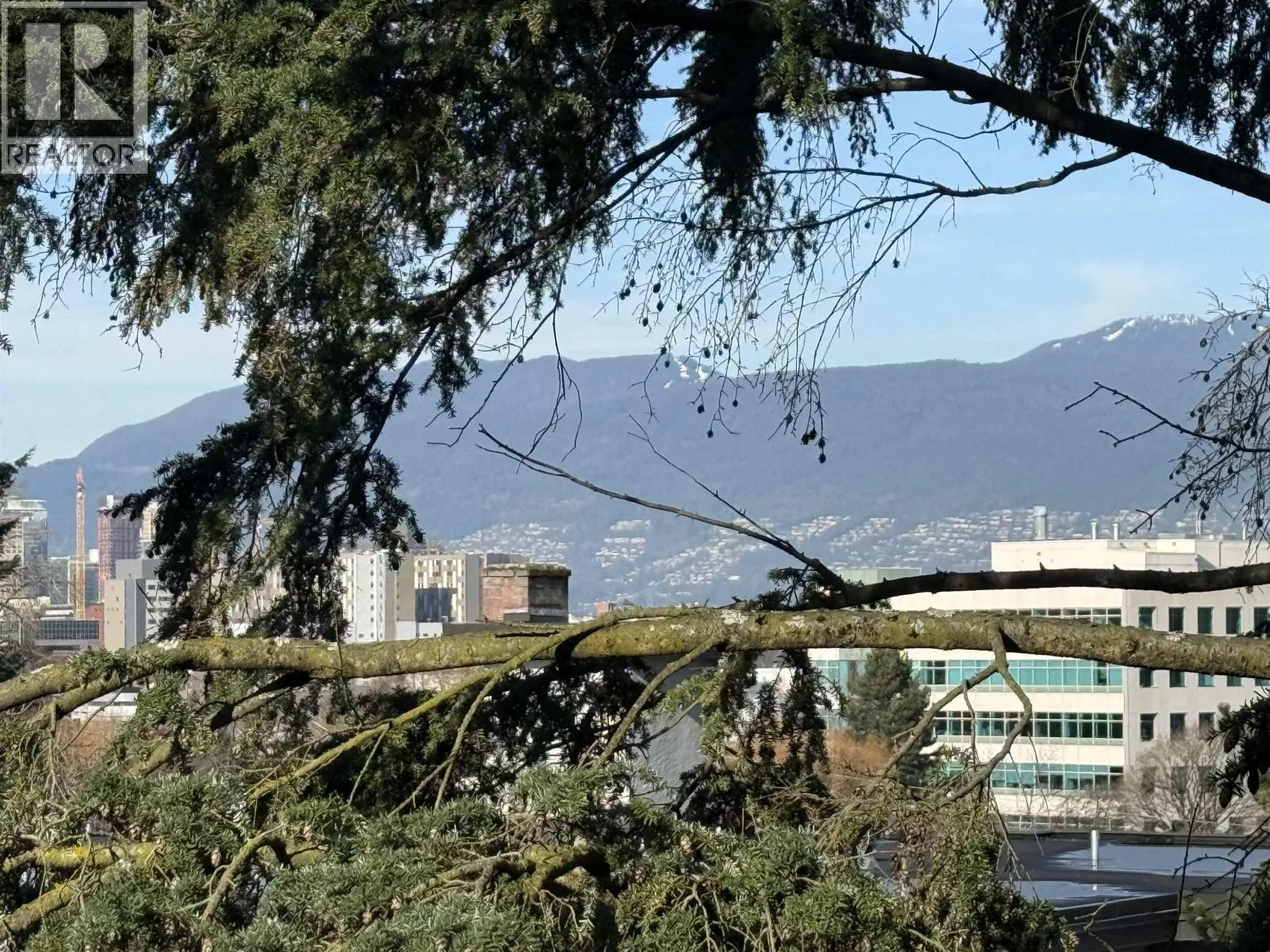 his top floor suite with stunning views to North Shore mountains is ready for your decorating ideas. This classic floorplan maximizes the living space and comes with 66 sq/ft of balcony to savor your views with morning coffee. A proactive strata is up to date with everything including re-piping, rainscreen technology with new siding, windows, patio doors and newer boiler. One convenient parking spot, large locker. Pets ok with restrictions. Steps to the VCC Skytrain station, bus, restaurants, parks and shopping and new Emily Carr & BCIT Digital Campus. Insuite laundry permitted (w/strata approval). PET Friendly: 1 DOG & 2 CATS. OPEN House Sat & Sun 14th & 15th 2-4pm. (id:27476)