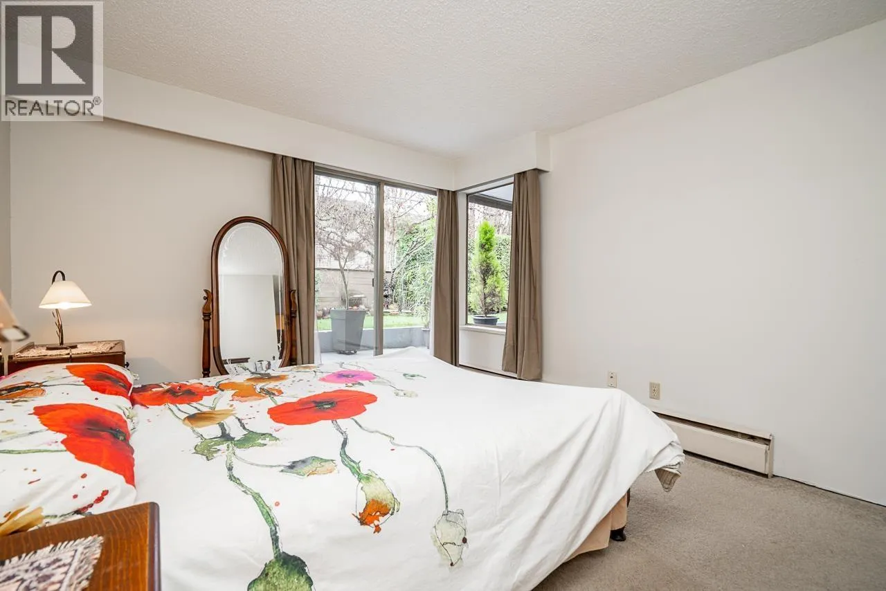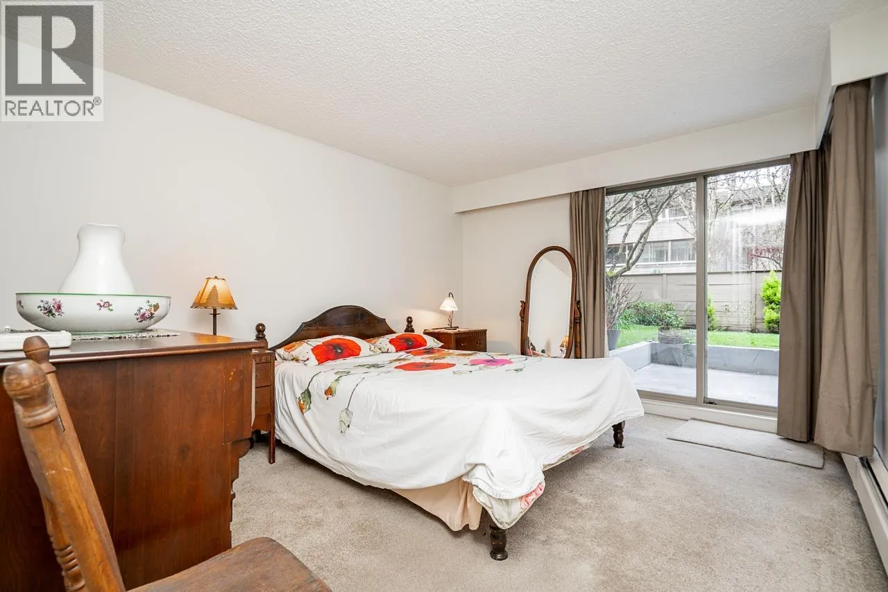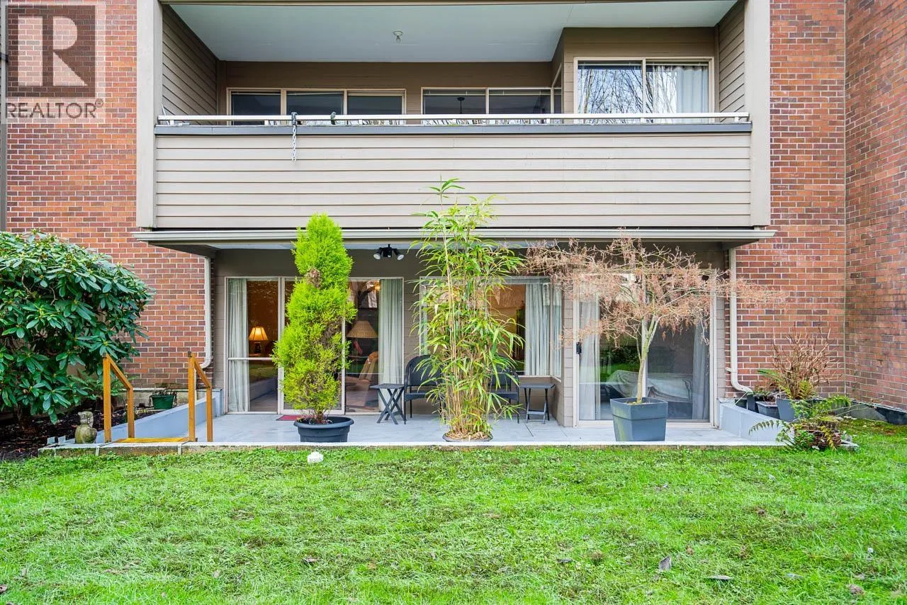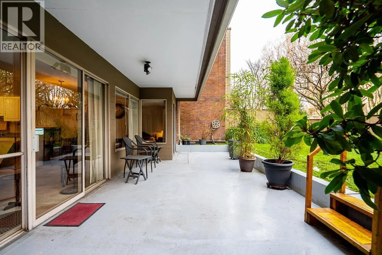 Welcome to this special ground floor 1 bedroom, 1 bathroom home. Set in a well established building, this inviting condo combines classic construction with thoughtful updates to the kitchen which features clean white cabinetry, complemented by easy care vinyl flooring that brings a fresh, modern touch to the space. Sliding doors lead to a large patio and serene private outlook onto a lush lawn and garden - your own peaceful oasis. Plus it's the perfect location, you're just steps away from shopping, restaurants, and all the conveniences you need. A perfect blend of nature and urban living! (id:27476)