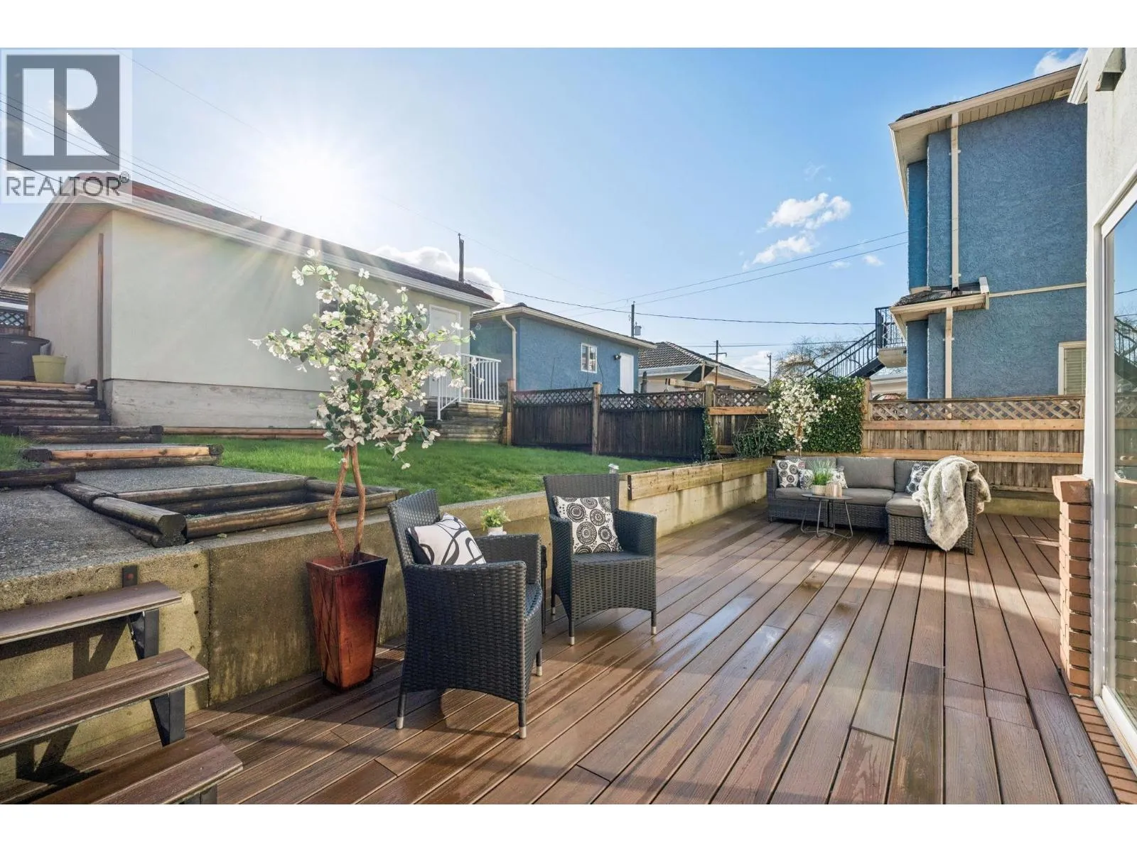 Welcome to this WELL-MAINTAINED Custom built 5 Bed 3.5 Bath family home with over 2200 square ft of UPDATED OPEN-CONCEPT living. SPACIOUS main floor living/family areas, dining with walkout to SOUTH facing patio & terraced yard plus BRIGHT kitchen with 36" 5 burner gas stove, French door fridge, shaker cabinets, stone counters & guest bath - perfect for entertaining! Upstairs are 4 generous sized bedrooms, 2 baths & a TOP FLOOR PRIMARY, open office/flex space, balcony & mountain views. Updates include kitchen, bathrooms, laminate floors, windows/doors, lighting, 2018 Hot Water Tank & 2020 High Efficiency boiler. Lots of parking in 2 car detached garage, open spot in lane & in front on PRETTY tree lined street. Walk to Nootka Elementary, Windermere Secondary, Renfrew Community Centre, Trout Lake, Nanaimo Skytrain & quick drive to Superstore, Walmart, Can Tire, T&T & Hwy 1. OPEN HOUSE SAT/SUN, FEB 14/15, 2PM - 4PM (id:27476)