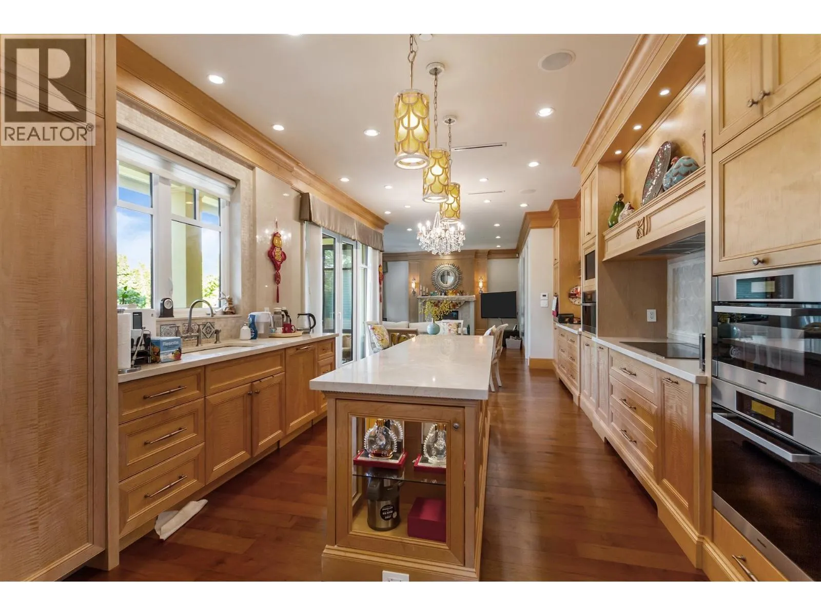 Prime Shaughnessy location on Pine Cr. This stately residence offers approx. 5500sf elegant space on a wide 75ft frontage property. Total 6 Beds 7 Baths. Formal principle rooms + den on the main, gourmet kitchen and wok kitchen featuring top of line appliances, breakfast nook opens onto a large patio. 4 bdrms upstairs all with ensuites. Garden level bright bsmt boasts a home theatre, huge rec rm , gym rm (sauna room) & 2 guest bedrms. Extensive custom millwork & attention to details. Crystal chandeliers, H/W flooring, HRV, A/C. 3 cars garage. School catchment Shaughnessy Elem, and Prince of Wales Secondary, close to York House & Crofton, LFA & VC. (id:27476)