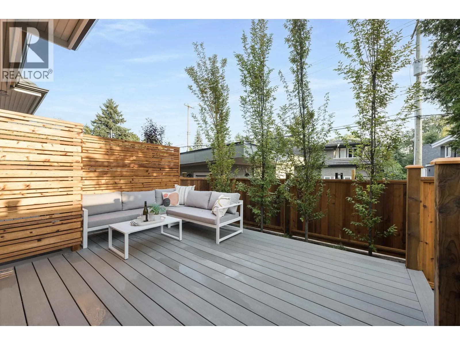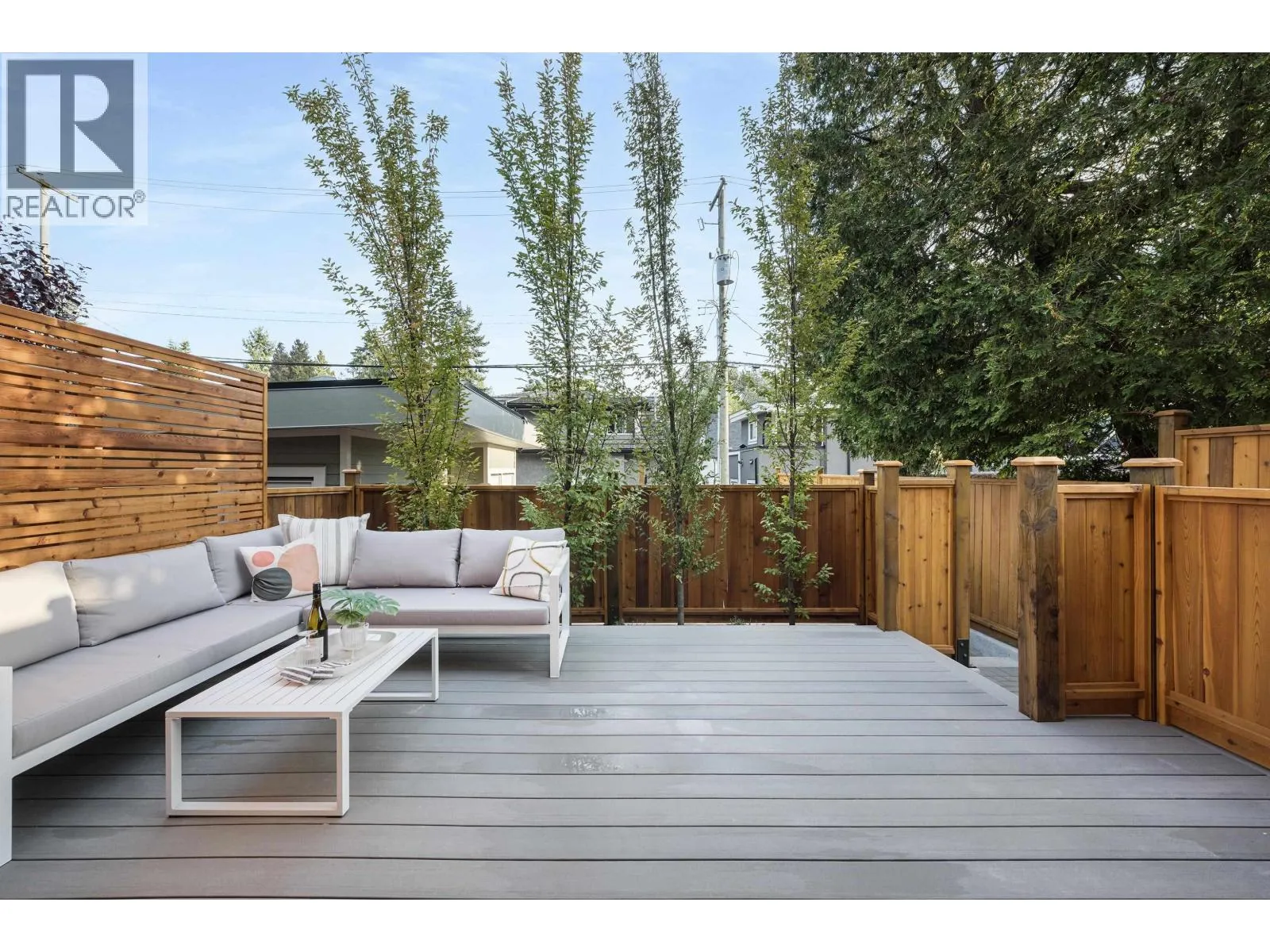 Proudly built by MEDALLION HOMES, this is a triplex like no other with a functional, thoughtful layout and even a special spot for your furry friend! This bright and welcoming back unit features a sunny south-facing yard, perfect for family time and play. High-quality finishes include irrigation, integrated appliances, Blanco sinks, engineered hardwood (with minimal knots), automated sound control, built-in vacuum rough-in, and a shared crawlspace for extra storage. Enjoy a custom patio with BBQ fire pit, gas rough-in, and energy-efficient airtight design. Located across from Ãcole Laura Secord Elementary-one of Vancouver´s top French Immersion schools with on-site childcare and a vibrant parent community-and just minutes to Trout Lake for recreation, this home is your perfect haven. (id:27476)