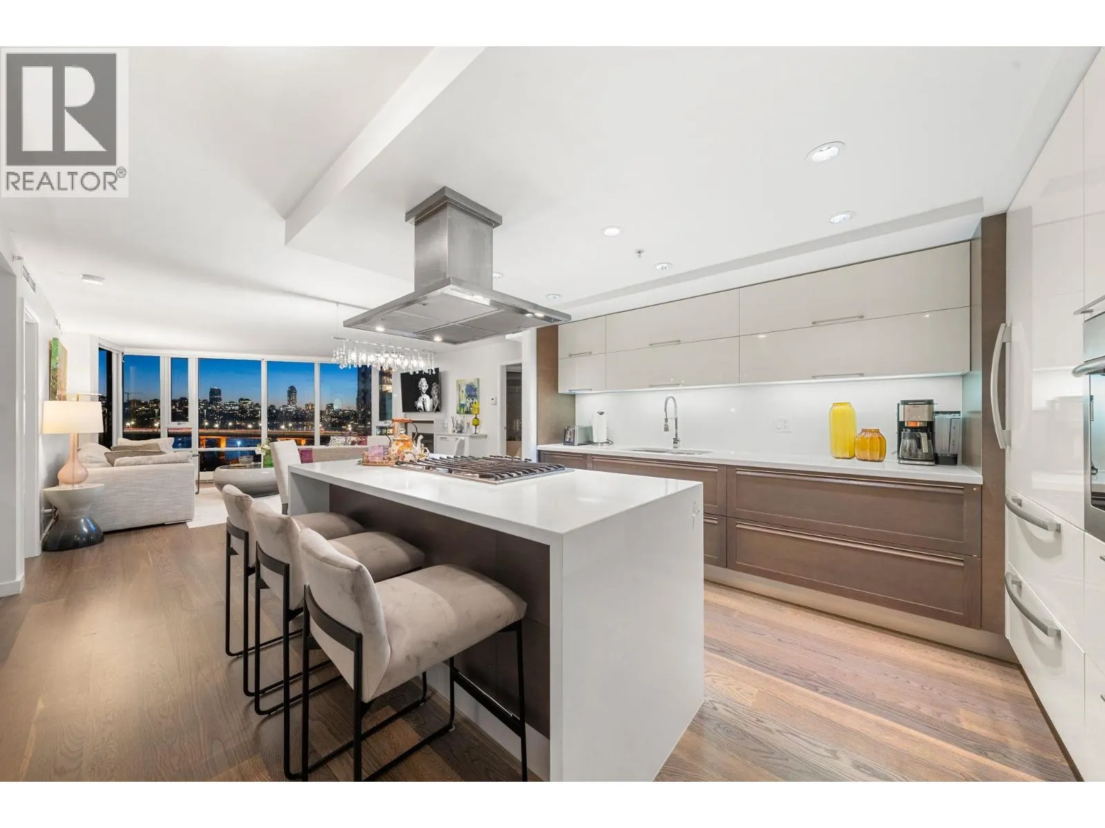 CONCORD´S FLAGSHIP RESIDENCE Immaculate 2 Bed + Den, 2 Bath southwest-facing home with A/C and breathtaking, unobstructed views over Cooper´s Park and the sparkling waters of False Creek. This designer residence showcases a sophisticated neutral palette, engineered hardwood floors, a cozy gas fireplace, and a custom built-in office. The gourmet kitchen is appointed with quartz countertops, sleek cabinetry, premium Sub-Zero and Miele appliances, and a gas cooktop set into an entertainer´s island bar. Spa-inspired bathrooms feature frameless glass showers, while the luxurious primary ensuite offers a deep soaker tub for ultimate relaxation. Enjoy exclusive access to the renowned Esprit Club amenities: indoor pool, fully equipped gym, bowling lanes, private theatre, guest suite, and 24-hour concierge service. Rentals and pets permitted with restrictions. Presented in showroom condition. (id:27476)